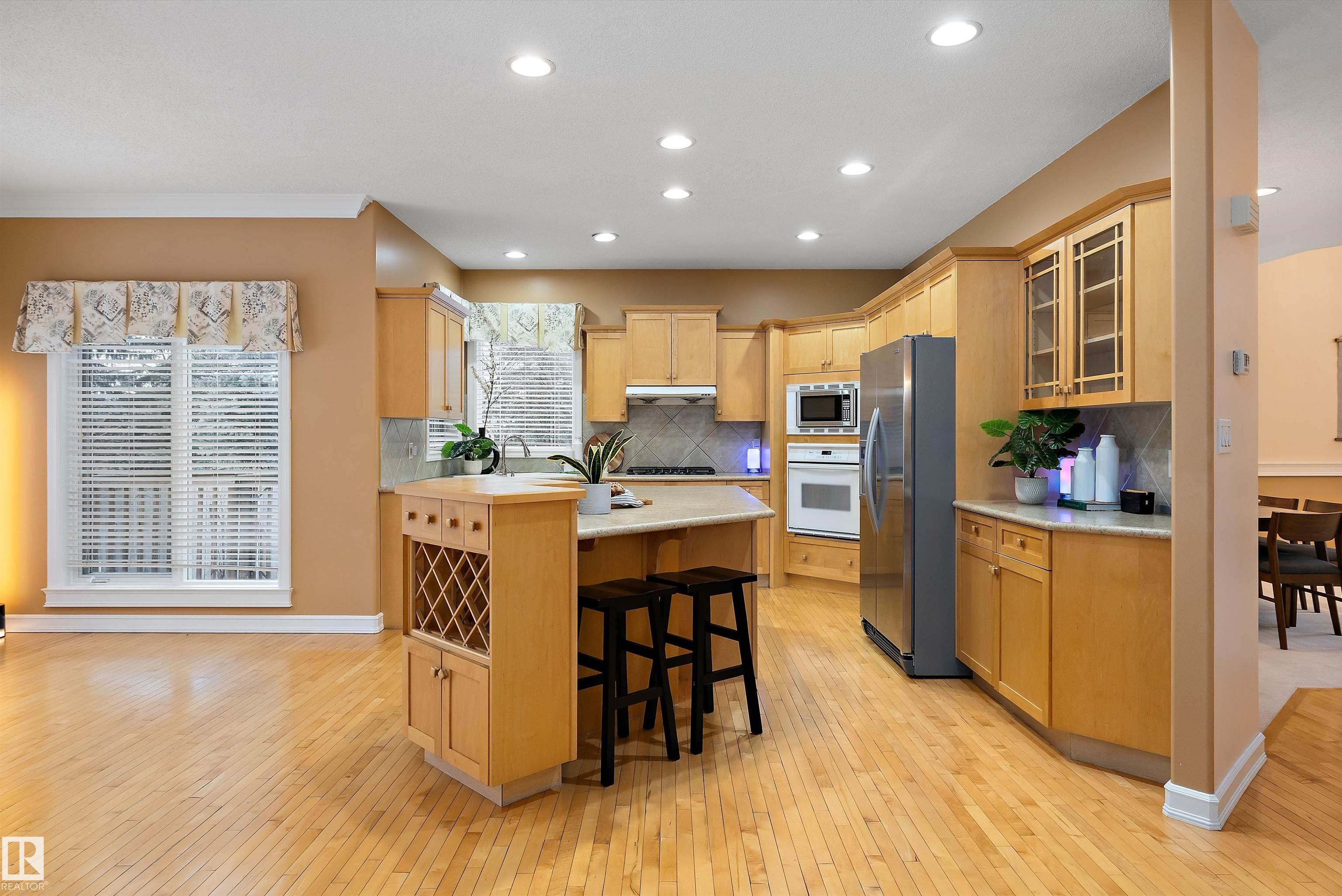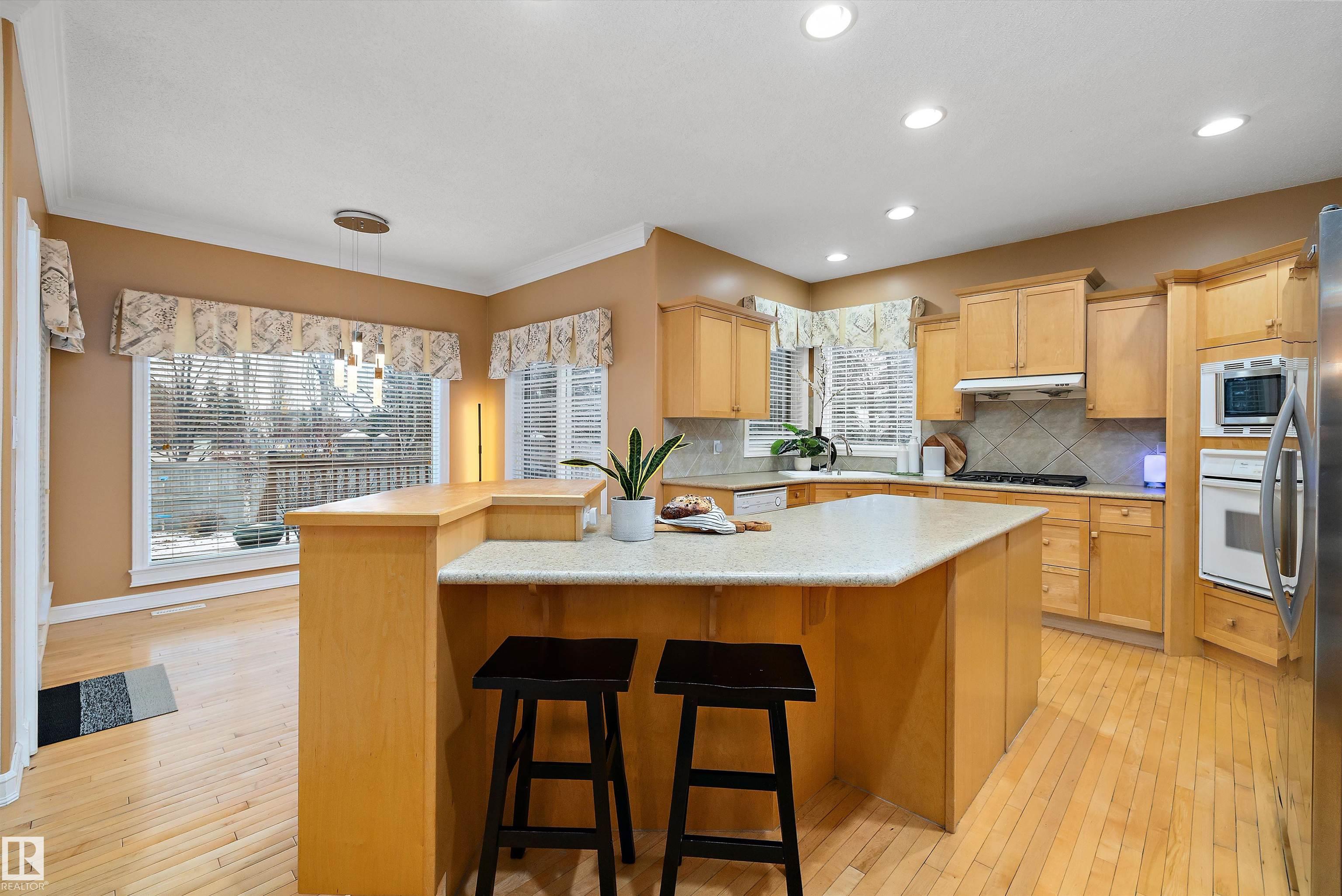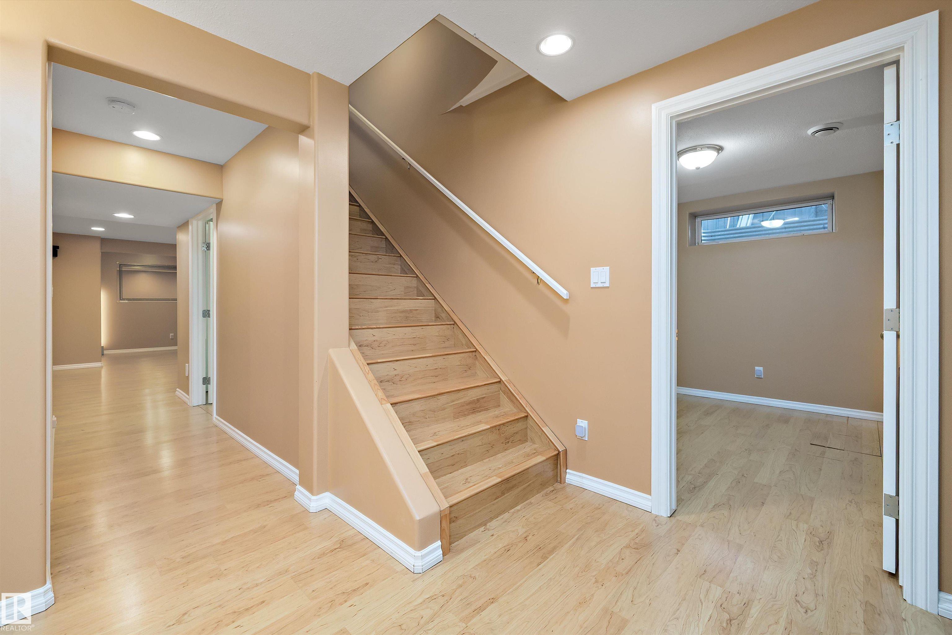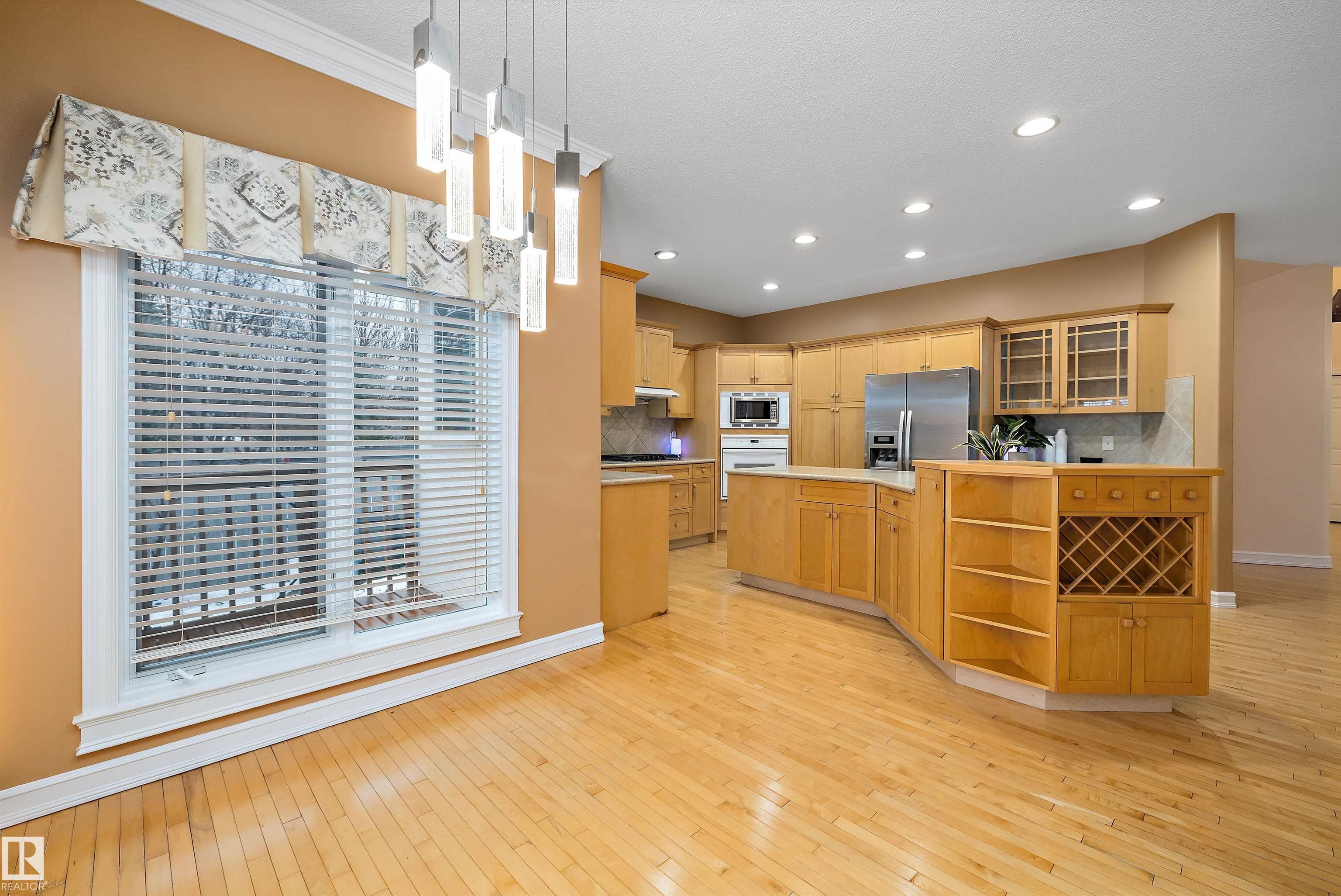 EXECUTIVE HOME IN PRESTIGIOUS DONSDALE ON A RARE MASSIVE PIE LOT STEPS FROM THE RIVER VALLEY TRAILS. A soaring 2-storey foyer with a curved staircase leads to a bright formal living room, an elegant dining room & a spacious family room with views of the expansive yard. The kitchen offers ample cabinetry, an island & a sunny breakfast nook with access to a large multi zone deck ideal for outdoor living & entertaining. The upper level features 3 generous bedrooms including a spacious primary bedroom with a walk in closet & a well appointed bathroom. The finished lower level provides a large recreation area suited for theatre, games, fitness or play, plus a private flex room & a full bathroom. A versatile main floor den ideal for office or study completes this exceptional home in one of the most desirable West Edmonton communities, close to schools, shopping, transit, Anthony Henday, Whitemud Drive, West Edmonton Mall & neighbourhood parks. Opportunities of this calibre are rare. View with confidence. HURRY!
