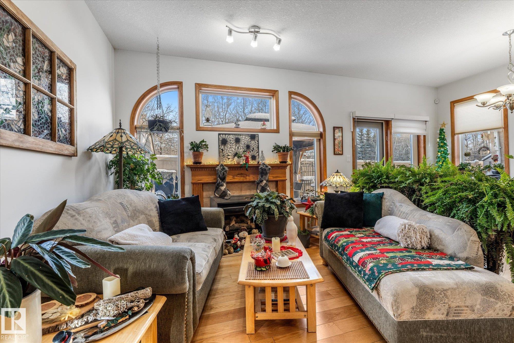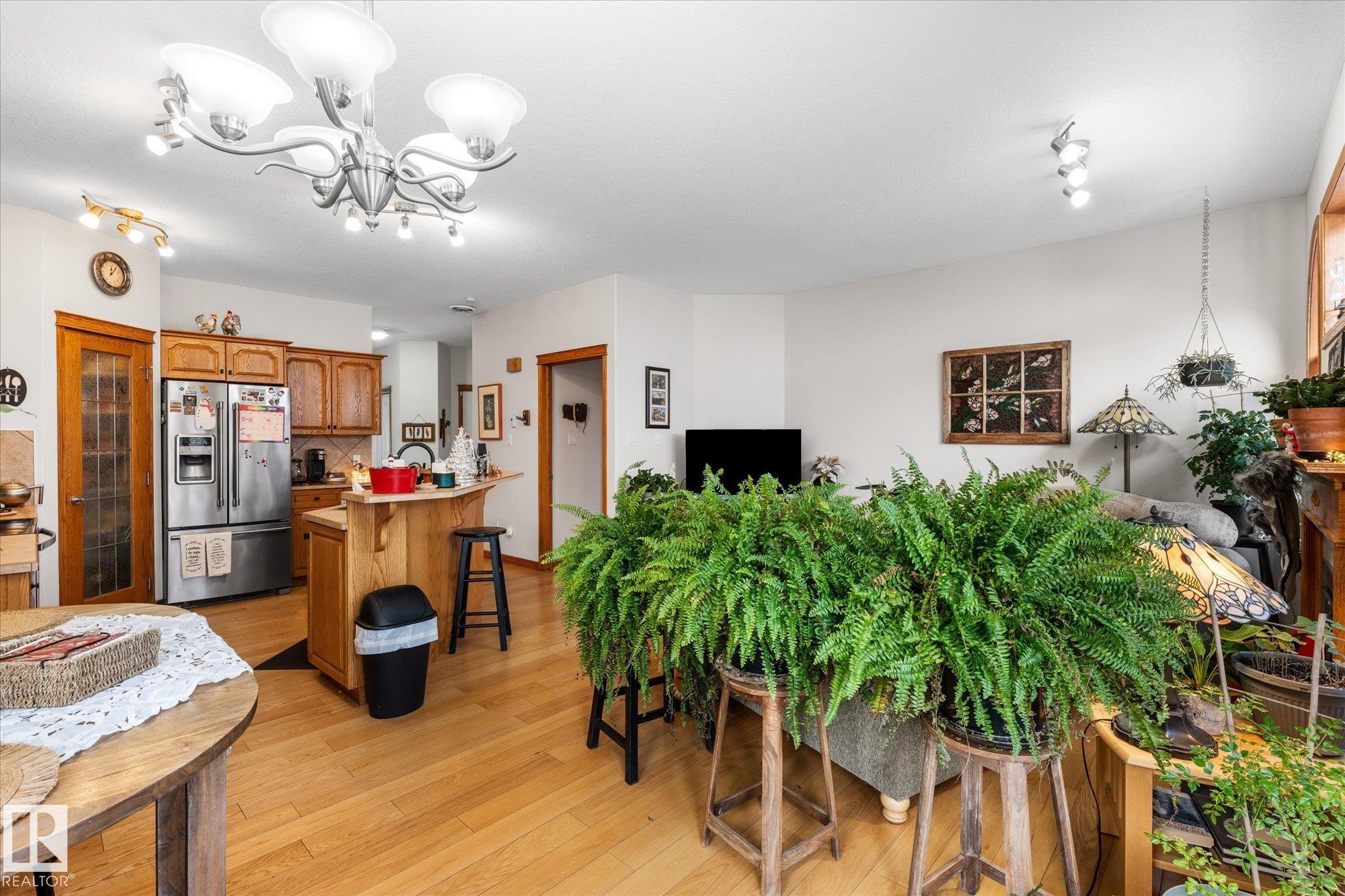 Experience comfortable 40+ living in Calibur Point Villas, a small and private enclave in Onoway. This duplex provides easy one level living with 2 bedrooms, 2 bathrooms, an attached garage, and an unexpectedly spacious yard. The interior feels open and inviting, featuring warm in floor heating that carries into the garage, high ceilings, a gas fireplace, and patio access for relaxing outdoors. The kitchen is practical and well laid out, offering plenty of oak cabinetry, an island for extra prep space, and a pantry for storage. The primary suite includes its own bathroom with a walk in shower and a generous closet. Wide passages and the stair free design enhance accessibility throughout the home. With only six units, the complex offers a quiet atmosphere, stucco exteriors, paved parking, and a fenced perimeter. Close to local amenities, this property offers a low maintenance lifestyle in a friendly, convenient location.