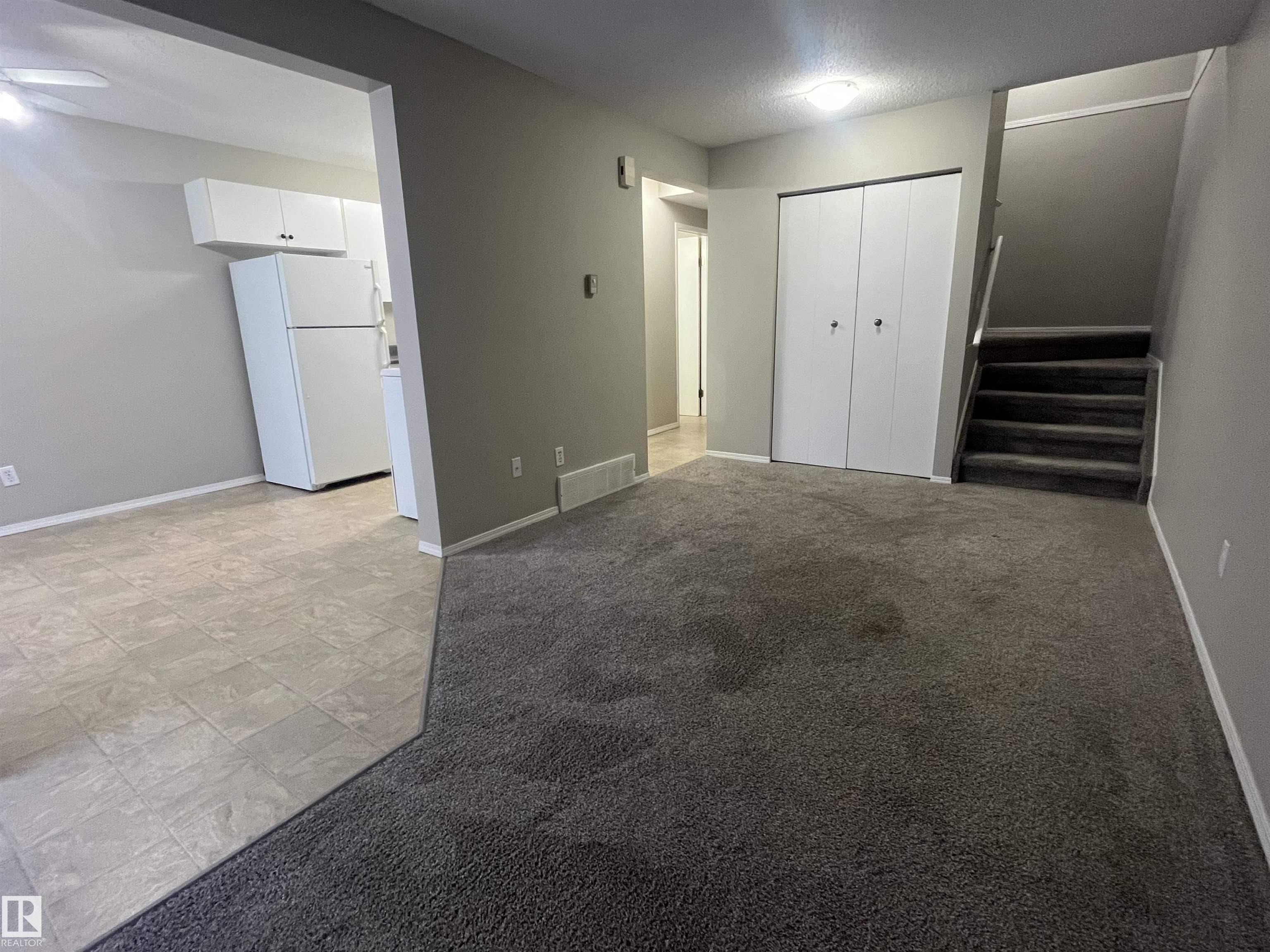 Great 2 storey, 2 bedroom townhouse with one and a half baths in the heart of Devon. Nicely refreshed with newer paint, carpet & light fixtures. This move-in ready North facing unit is in a small, well managed complex (8 units) and offers privacy, a spacious common area, and dedicated parking behind the property. Low condo fees - only $175/month, and conveniently located walking distance to most amenities. Full, unfinished basement offers future development potential. Unbeatable value and ready to call home!