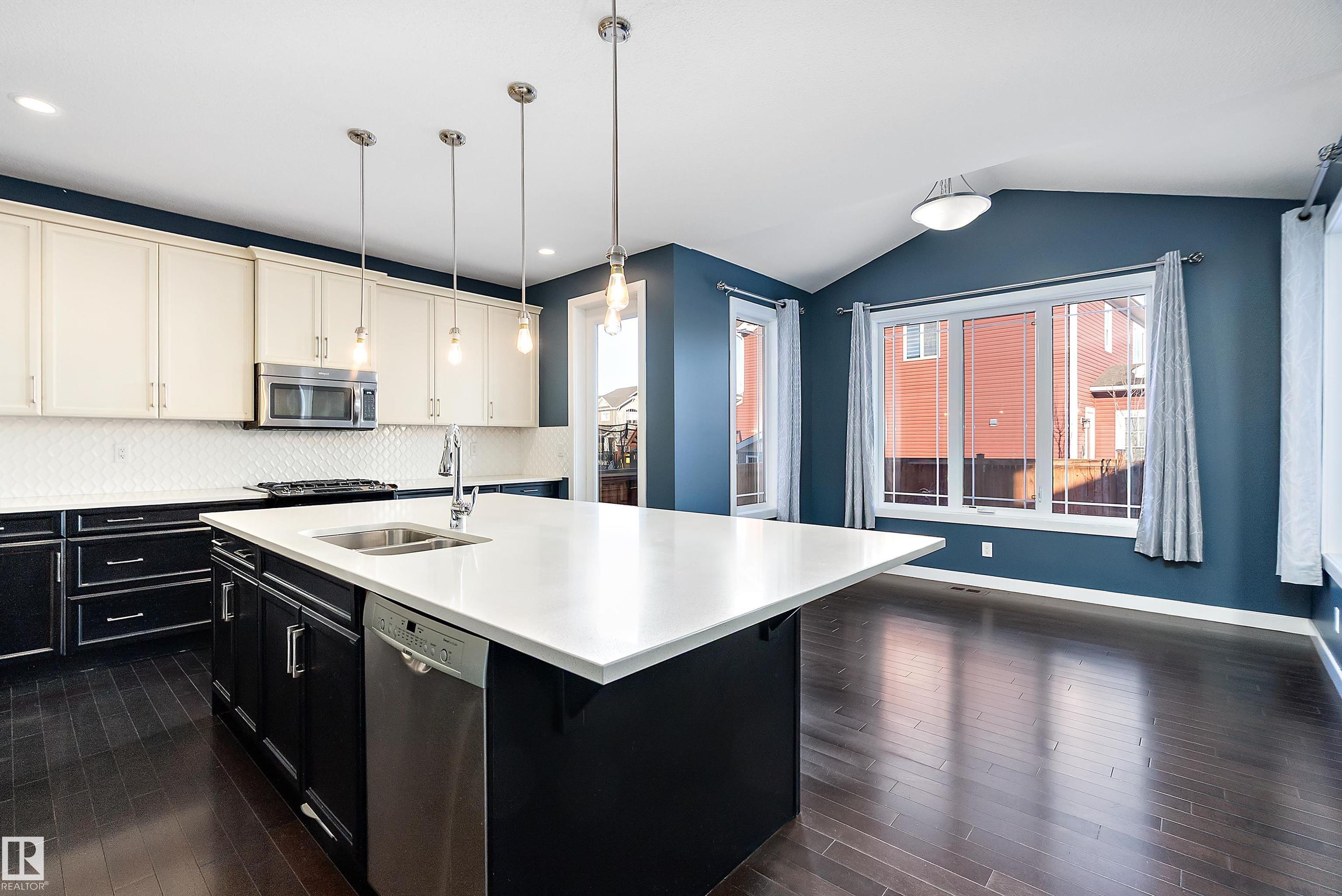 CUL DE SAC location in COLONIALE ESTATES with views of the 18 hole!! Wow, this 2516+ 2 STOREY features a perfect main floor DEN just of the foyer with REAL BRICK FEATURE WALL. The hall opens to a spacious GREAT ROOM with dark MAPLE HARDWOOD & GAS FIREPLACE. The CONTRAST KITCHEN has an AMAZING CENTRAL ISLAND WITH QUARTZ COUNTERS, STAINLESS APPLIANCES, including a GAS STOVE & BRAND NEW REFRIGERATOR! The SUNLIT DINING ROOM overlooks the yard & features ACCESS TO THE PATIO & ARTIFICIAL TURF YARD! A 2 piece bath, large WALK THRU PANTRY plus a MUD ROOM provides access to the garage & extra family STORAGE SPACE. Up to a SUNNY 'OPEN TO BELOW' BONUS ROOM, two generous bedrooms, one with access to the main bath, plus a primary with a COFFERED CEILING & ensuite with double sinks, an OVERSIZED CUSTOM GLASS SHOWER & SOAKER TUB! The handy UPPER LAUNDRY features white SHIPLAP & has plumbing for a future sink! The 9' BASEMENT is undeveloped & open for future development! All this plus CENTRAL AIR, GARAGE & so much more!
