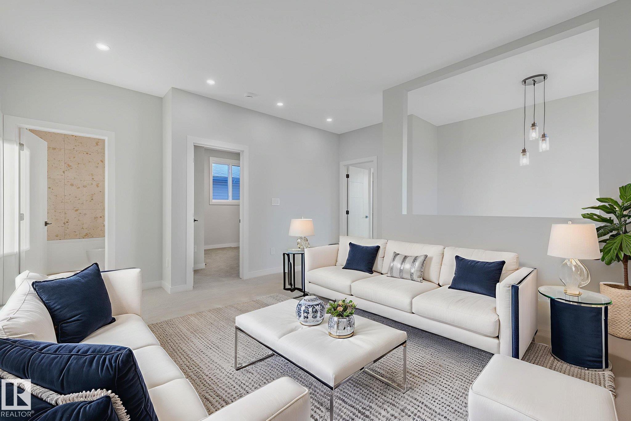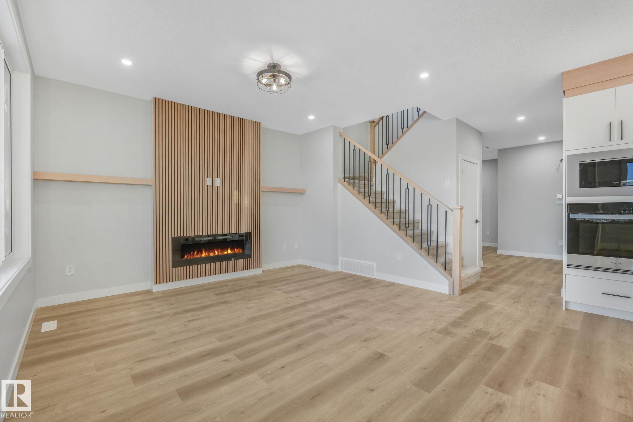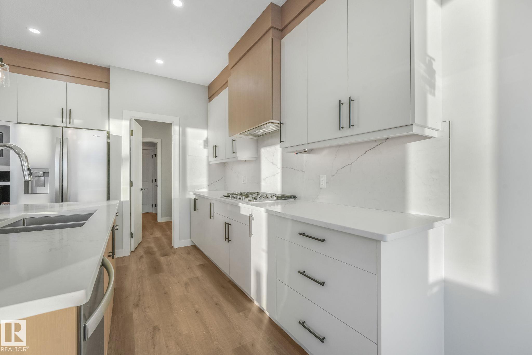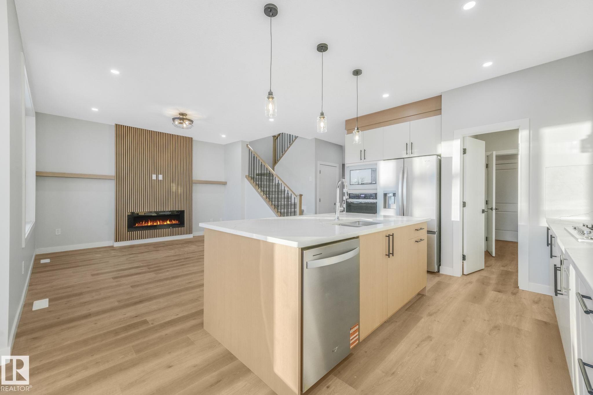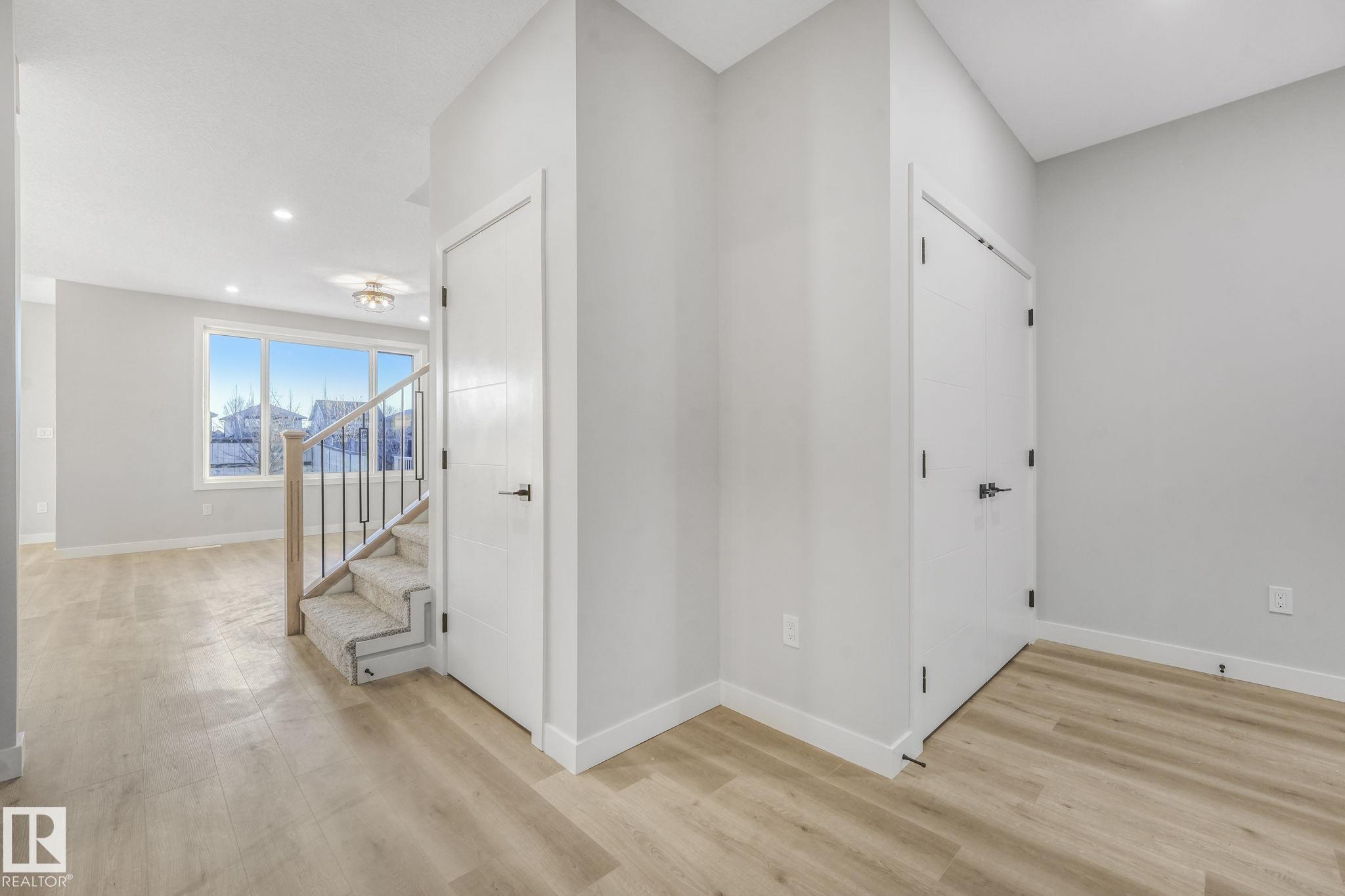 STUNNING! Beautifully designed 2 storey home offers the perfect blend of luxury and functionality. The main floor boasts a bright and inviting atmosphere, with quartz countertops, premium vinyl plank flooring, and chic designer lighting. The modern kitchen is a highlight, with stainless steel built-in appliances, upgraded cabinetry, nice sized island and a walk-through pantry. The elegant living room features a cozy modern fireplace perfect for relaxing with family and friends. A 2-piece bath completes the main floor. Upstairs offers a spacious bonus room, upper floor laundry with sink,3 beds/bath The luxurious primary retreat is a true retreat with a massive walk-in closet, private balcony, and a spa-inspired ensuite with dual vanities, freestanding soaker tub, and separate shower. Enjoy a large backyard with deck, the basement with separate Entrance is ready for future development for multi-generational living with the potential for a 1?2 bedroom legal suite. This is an opportunity not to be missed