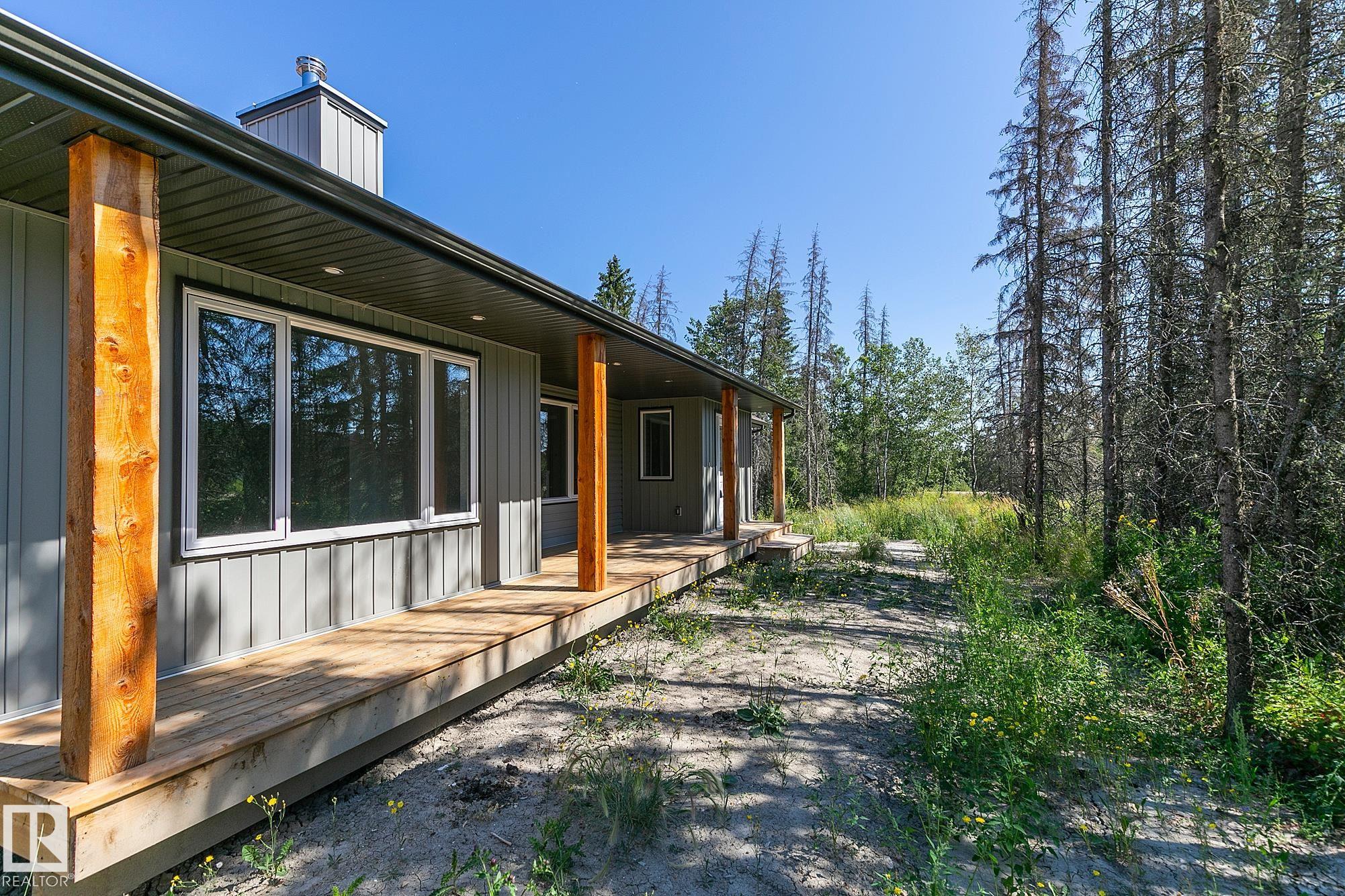 IMMEDIATE POSSESSION! 2.62 ACRES enveloped by a majestic treed paradise! Quality custom built walkout bungalow, just under 1600 sq ft, nestled in nature. Modern country charm, featuring a grand floor to ceiling wood burning stone fireplace. Beautiful vaulted ceilings, an open concept living, kitchen and dining that flow functionally and beautifully. Three bedrooms up, featuring a 5 pc spa-like ensuite, and a full 4 pc main bath. Unspoiled walkout basement is framed in for a 4th bedroom, laundry and a large future family room! The backyard oasis in donned by the massive 12 x 22 deck on a concrete pad overlooking your trees of many varieties! The builder provides Progressive New Home Warranty. GST is included in the purchase price. Enjoy the breathtaking landscape, it?s not as far out as you think! *some photos are taken from a mirrored floorplan to highlight virtual options for placement of furniture*