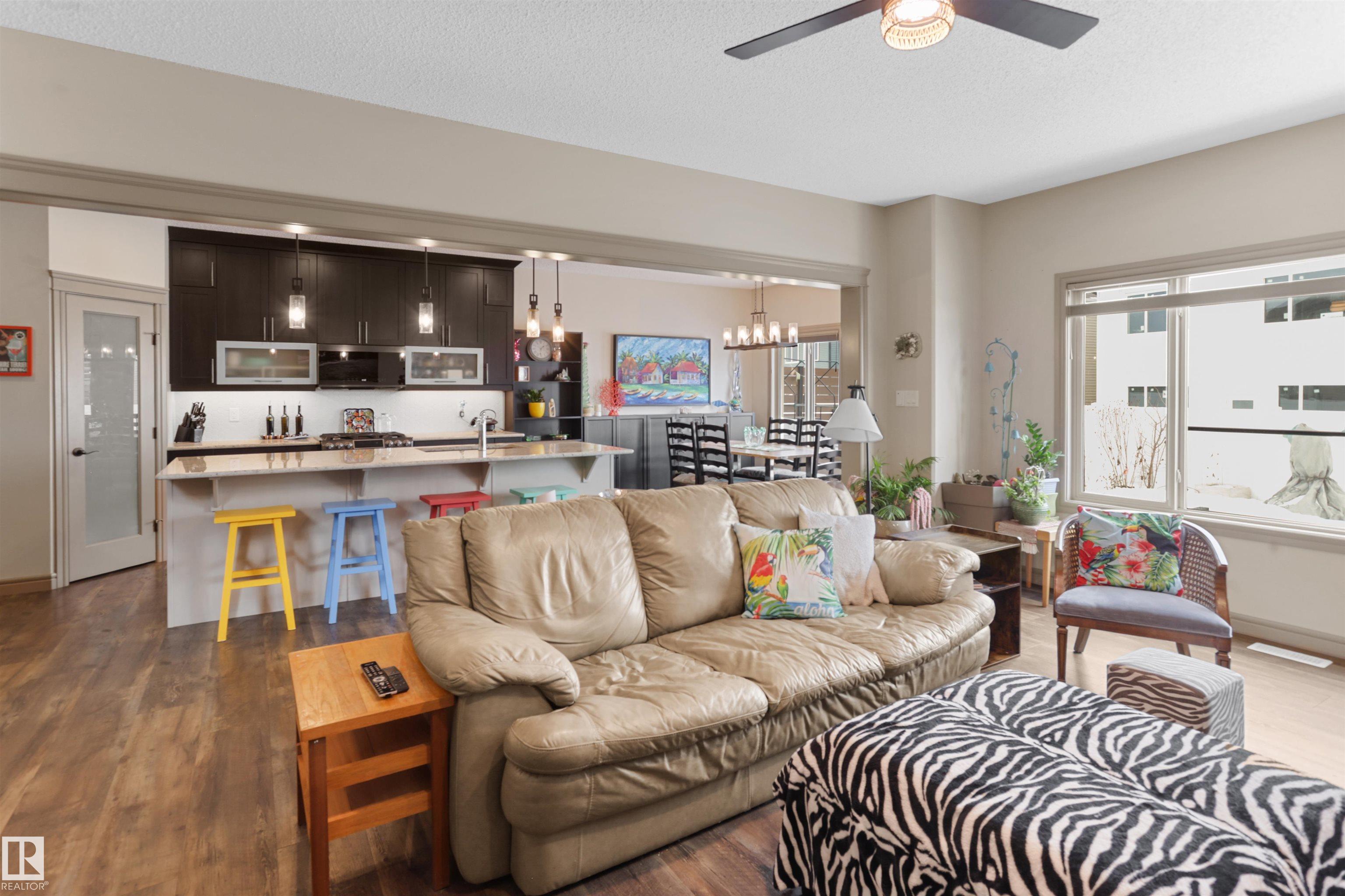 Welcome to this beautifully built Pacesetter home located in the desirable South Ravines of Devon. The main floor features a bright open-concept layout with a spacious living room, dining area, and kitchen?perfect for everyday living and entertaining. The living room offers a cozy gas fireplace, while a front-facing office provides an ideal work-from-home space. The upgraded kitchen includes granite countertops, a large island, pull-out cabinetry, soft-close doors and drawers, smart appliances, and a dedicated coffee area. Upstairs, the primary suite features a spa-style ensuite with dual sinks, a soaker tub, and a tiled shower. The upper level is complete with a vaulted bonus room, two additional bedrooms, a full bathroom, and a convenient laundry room. The basement is partially finished with a bedroom and 3-piece bathroom, offering great flexibility. Additional highlights include 9-foot ceilings on all levels, central air conditioning, and a large composite deck. Many more additional upgrades completed.