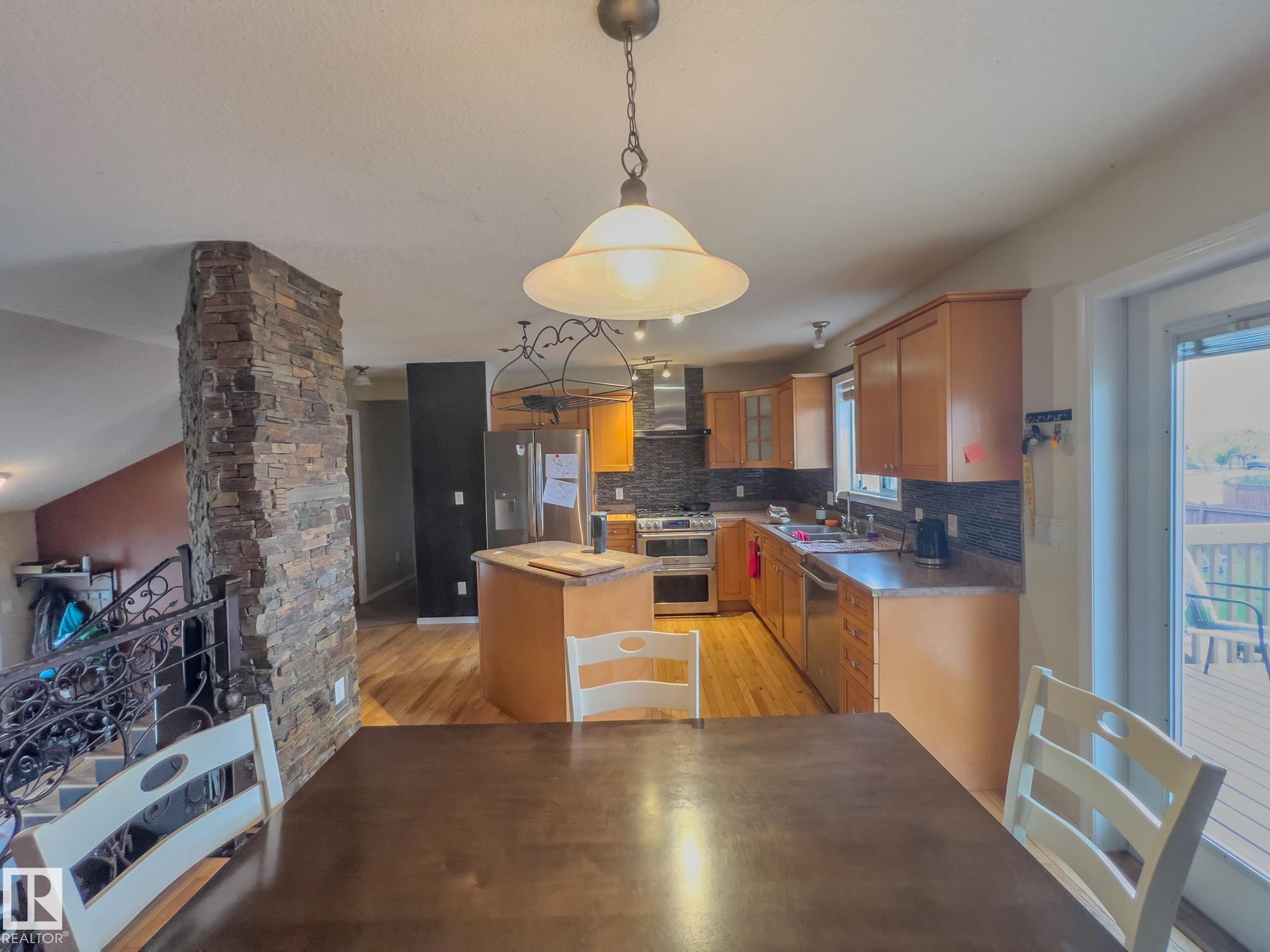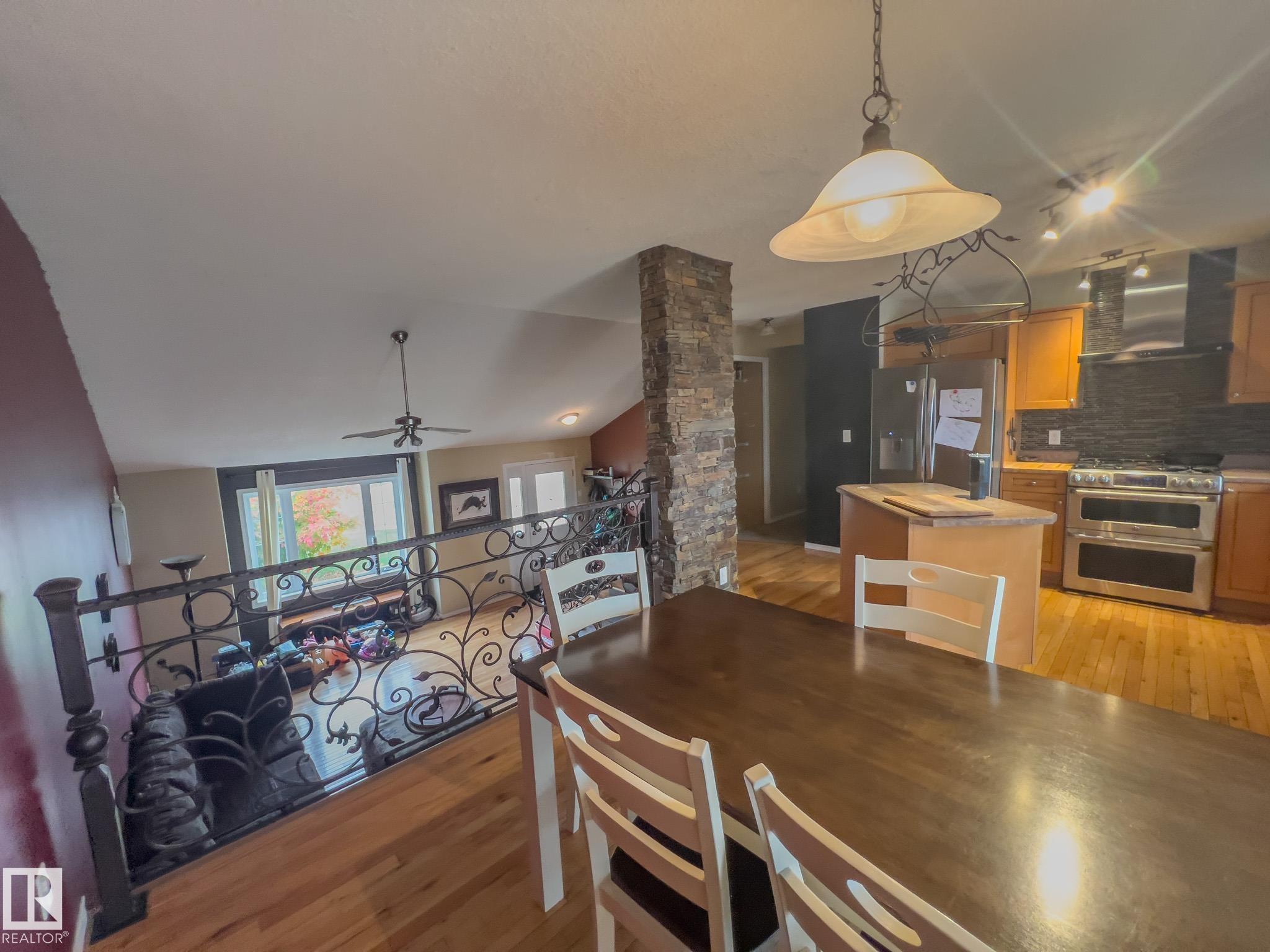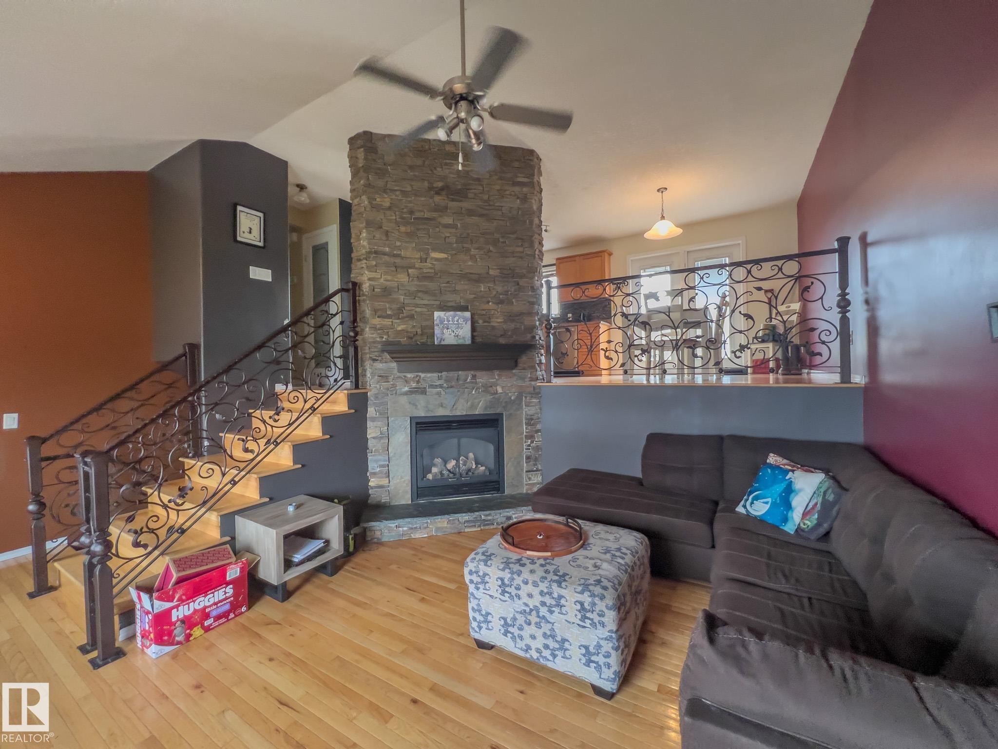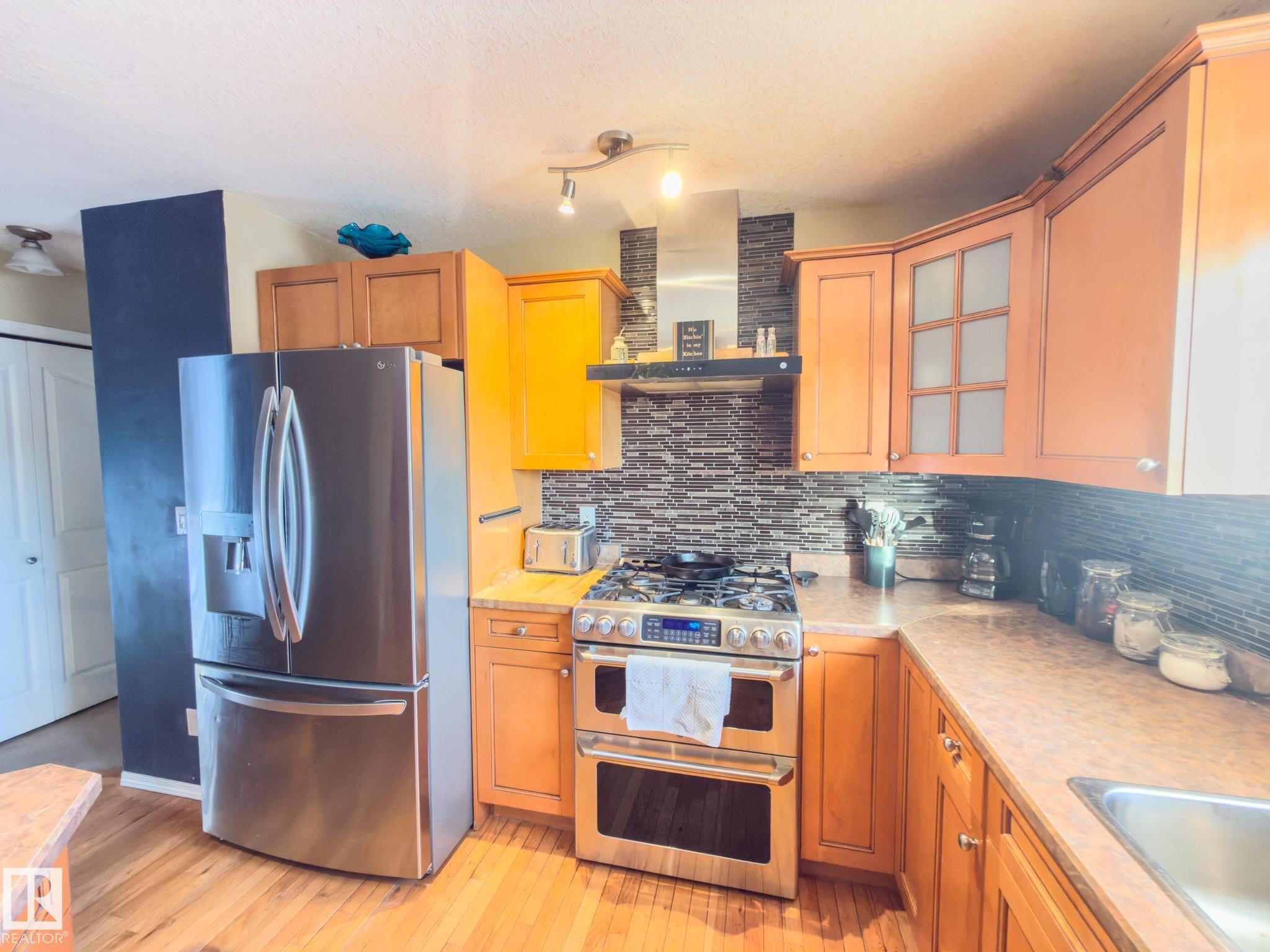 This beautifully upgraded 4-bedroom, 3-bathroom bi-level offers elegance, comfort, and space for the whole family. From the moment you enter, you?re greeted by an imported wrought-iron staircase, warm designer colors, and a stunning regal stone fireplace that sets the tone for the home.The bright, open kitchen is a dream, featuring stainless steel appliances, a gas range, and rich hardwood flooring?perfect for everyday living and entertaining. The cozy primary bedroom includes a walk-in closet and a private 3-piece ensuite for your convenience. Downstairs, the fully finished basement boasts plush carpeting, large windows, and ample space for a workout area, media room, or family hangout. Unwind in the newly upgraded 3-piece bathroom complete with ceramic tile and a luxurious chromatherapy bathtub.Step outside to a large, fenced backyard designed for relaxation and function, offering a personal greenhouse, covered seating area, and extra parking with room for an RV. Located close to two schools and parks.