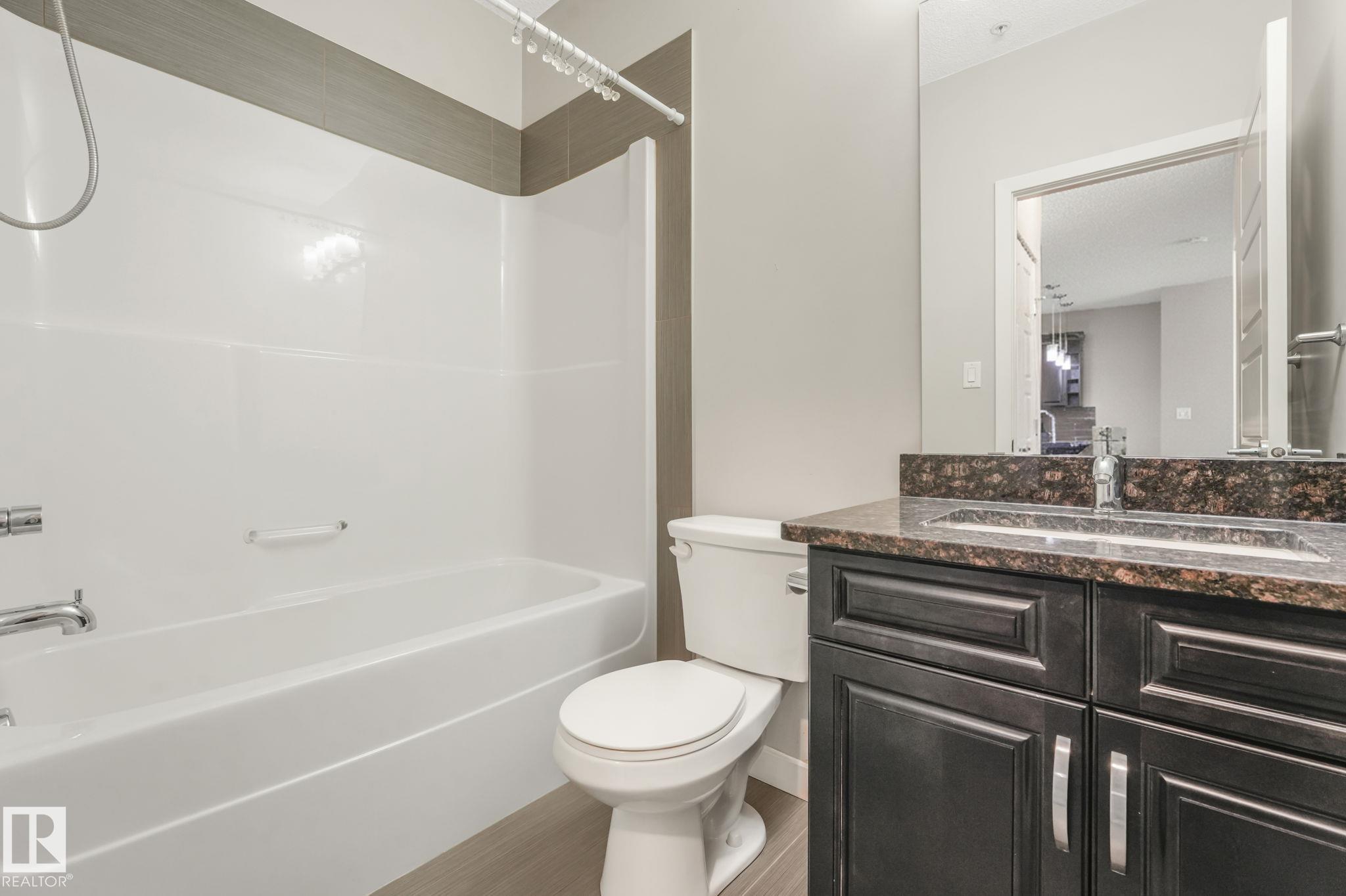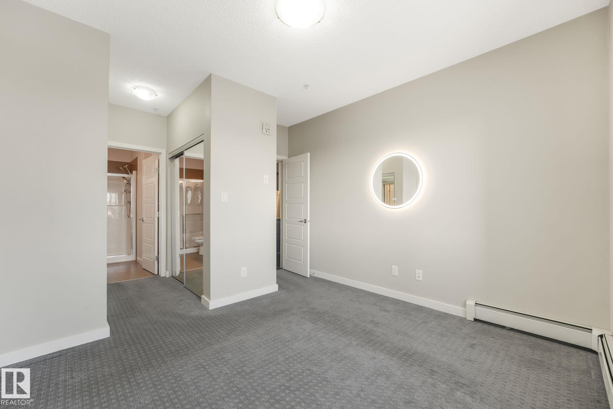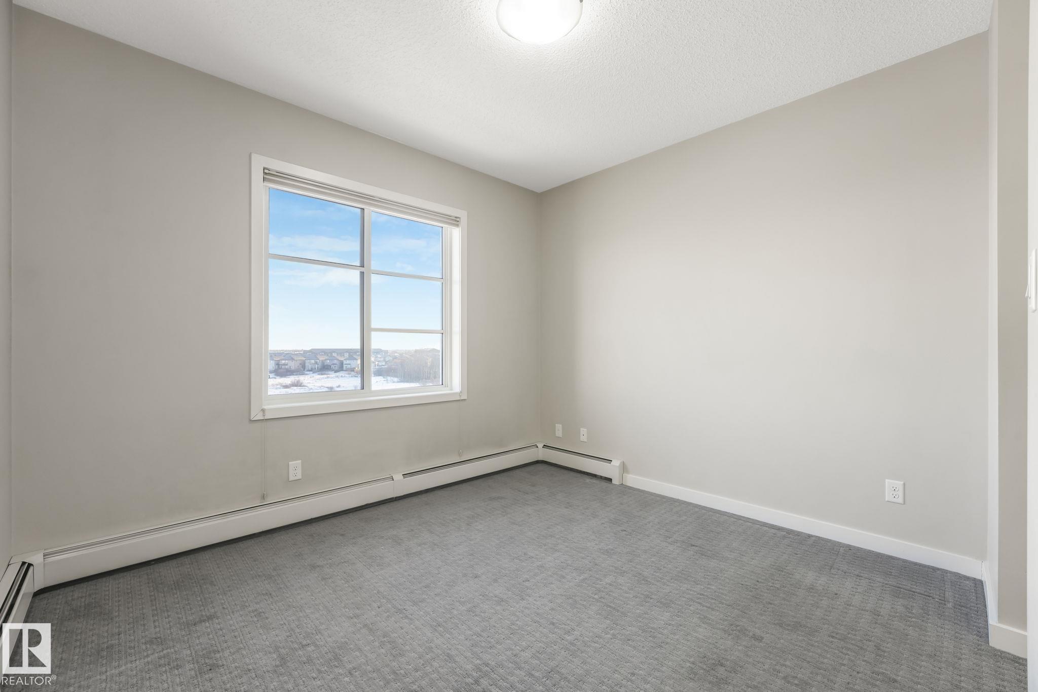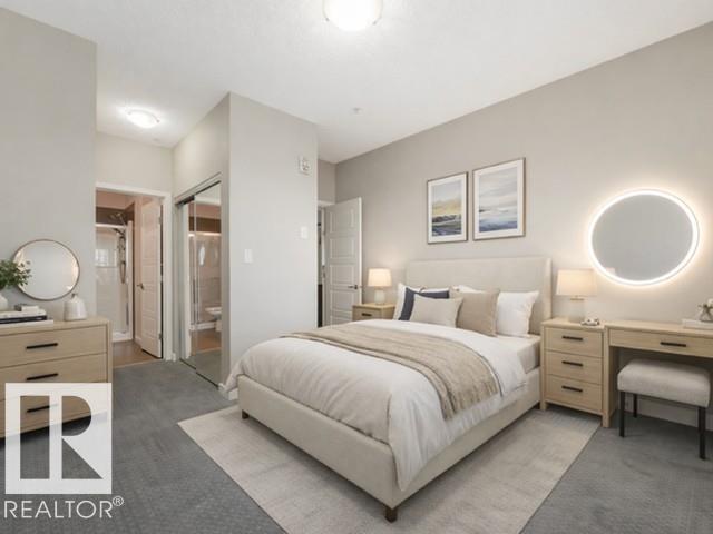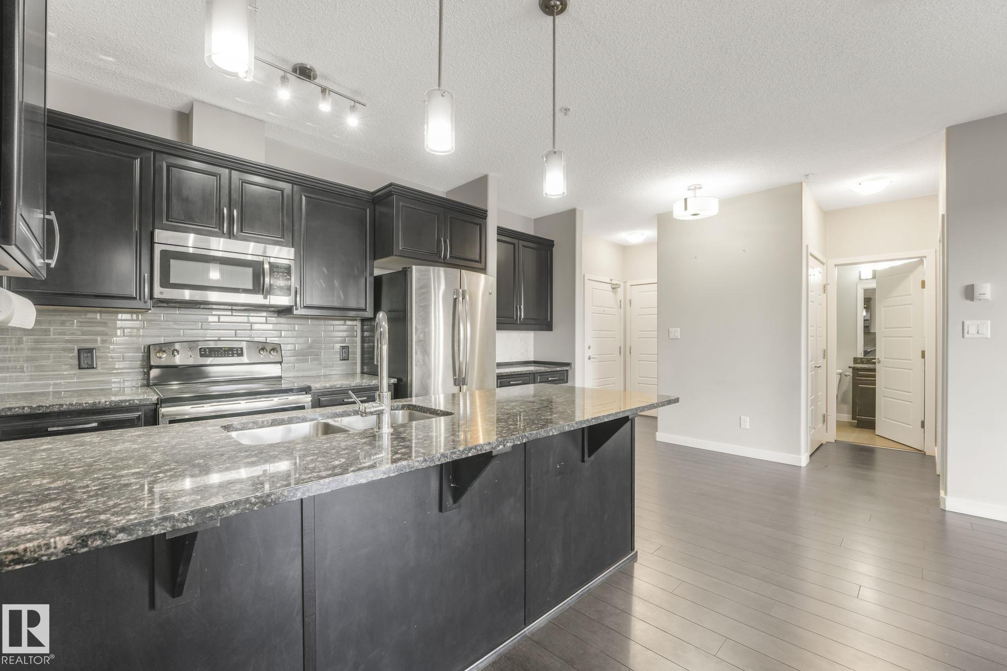 Welcome to this stylish 2 bedroom, 2 bath TOP FLOOR unit at Aviva Condos in Albany. The inviting open concept space features 9? ceilings, laminate flooring, & well-appointed kitchen with espresso-stained cabinetry, granite countertops, sleek stainless steel appliances, eat-up peninsula, walk-in pantry, & an adjacent dining area. The spacious living lets in plenty of natural light from the patio doors, leading to the covered balcony, with views towards the GREENSPACE-no direct rear neighbours. The primary bedroom includes a walk-through closet & a 3pc ensuite, while the second bedroom is thoughtfully located on the opposite side of the unit for privacy, along with a 4pc main bath. You?ll appreciate your own in-suite laundry room & the ability to park with ease with TWO TITLED parking stalls (underground & surface), which also includes a storage cage. Great location with direct access to walking & biking trails, shopping, transit, & a quick connection to the Anthony Henday. Move-in ready & waiting for you!