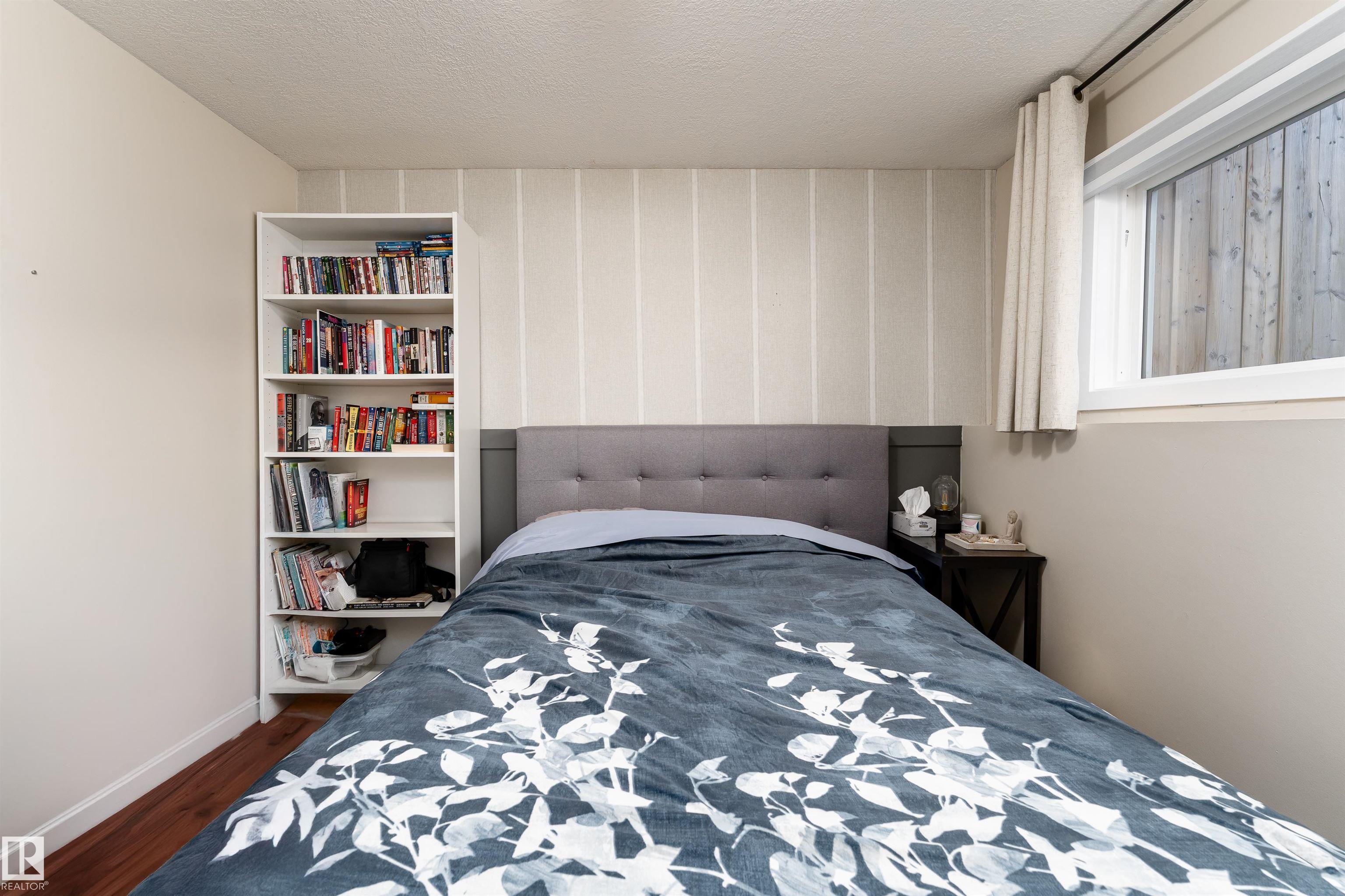 Sun filled and welcoming, this west facing bungalow is tucked away on a quiet street in the desirable community of Garden and offers a layout ideal for both everyday living and entertaining. The main level features a bright living and dining area with an electric fireplace and large windows, flowing into an updated kitchen with white cabinetry and stainless steel appliances, along with a comfortable primary bedroom. The fully finished lower level adds valuable space with a spacious recreation room, a separate family room perfect for movie nights, 2 bedrooms, and a full bathroom. Outside, enjoy an exceptionally large front and backyard ideal for kids, pets, gardening, and summer gatherings, plus a detached single garage. With west facing exposure providing beautiful afternoon and evening sun and a location close to schools, parks, transit, and shopping, this is a home that truly fits family living.
