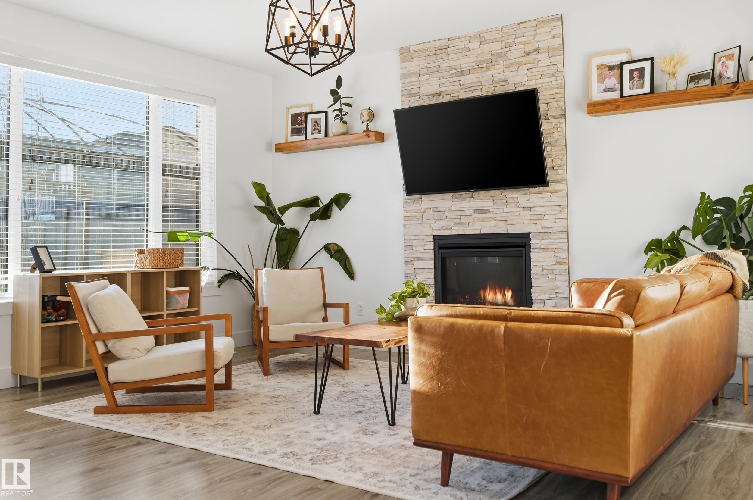 This gorgeous 3+1 2,329 square foot Blue Diamond built home is located in the heart of Windsor of Westpark in Fort Saskatchewan. The main floor boasts a stunning dream kitchen with stainless steel appliances, huge quartz island, walk through pantry and upgraded cabinetry. Large living room with cozy natural gas fireplace and huge dining area overlooking the fully landscaped back yard. Front den/ playroom, ½ bathroom, and large mudroom with custom bench and hooks complete the main floor. Upstairs is where you will find a massive primary bedroom with a large walk in closet and 5 pce en-suite with double glass shower, soaker tub, and double sinks. 2 great sized additional kids bedrooms, 4 pce bathroom highly desired upstairs laundry, and large bonus room that could double as a 4th bedroom! The fully finished basement is completed with a rec room perfect for family fun, the 4th bedroom, another 4 pce bathroom and storage area. Numerous upgrades in this home include A/C, oversized 23x28 garage, c/vac and more!