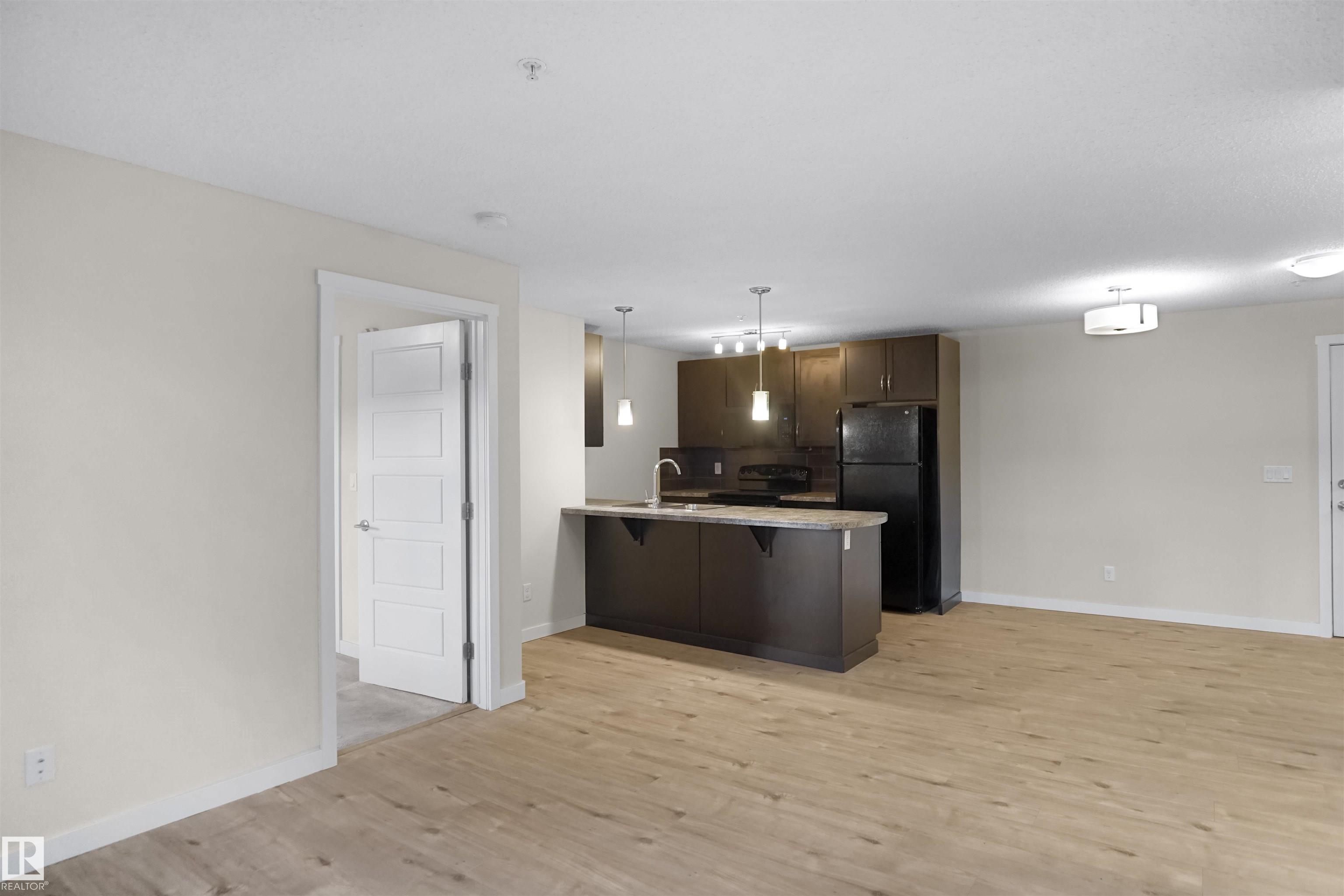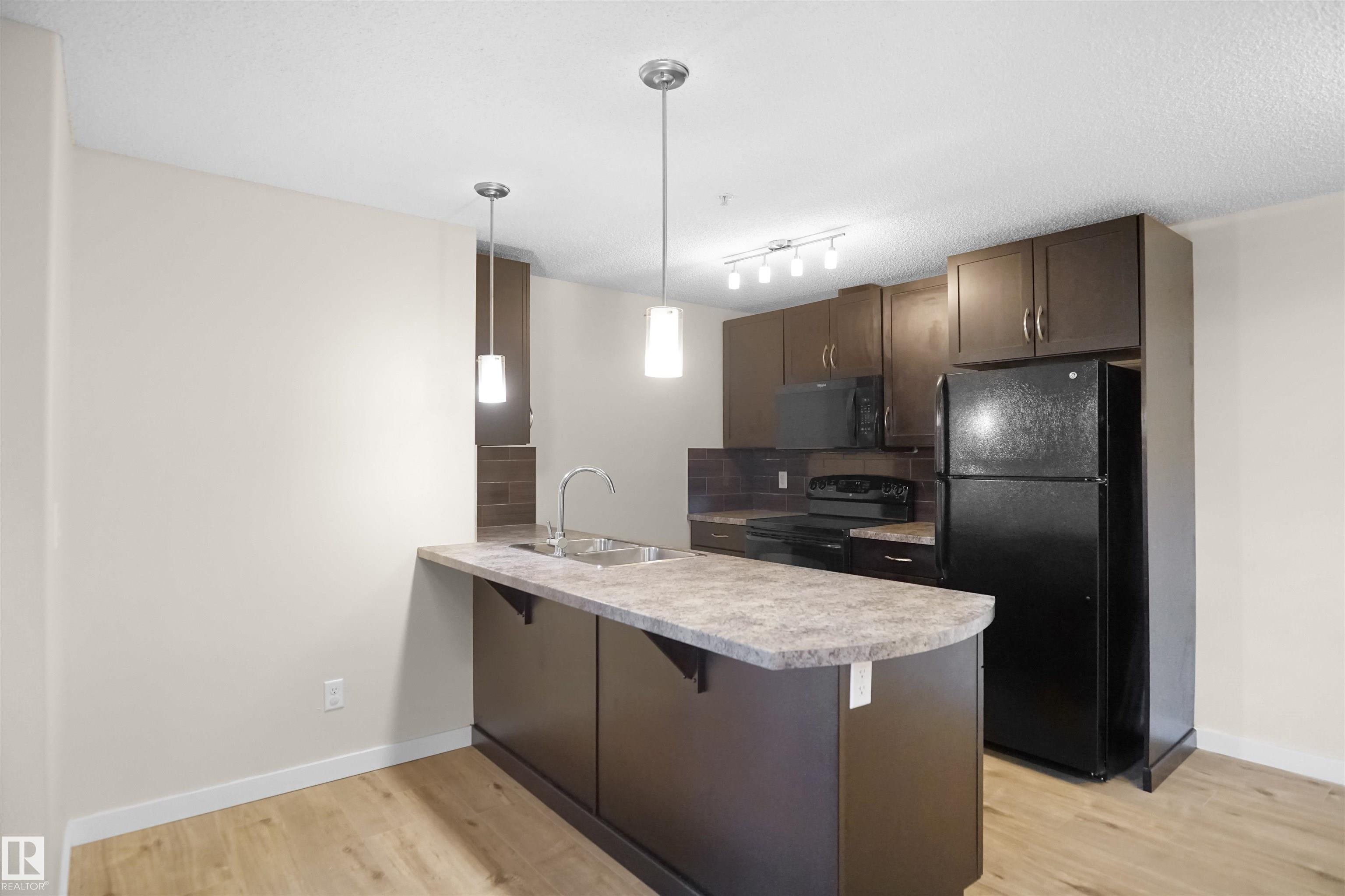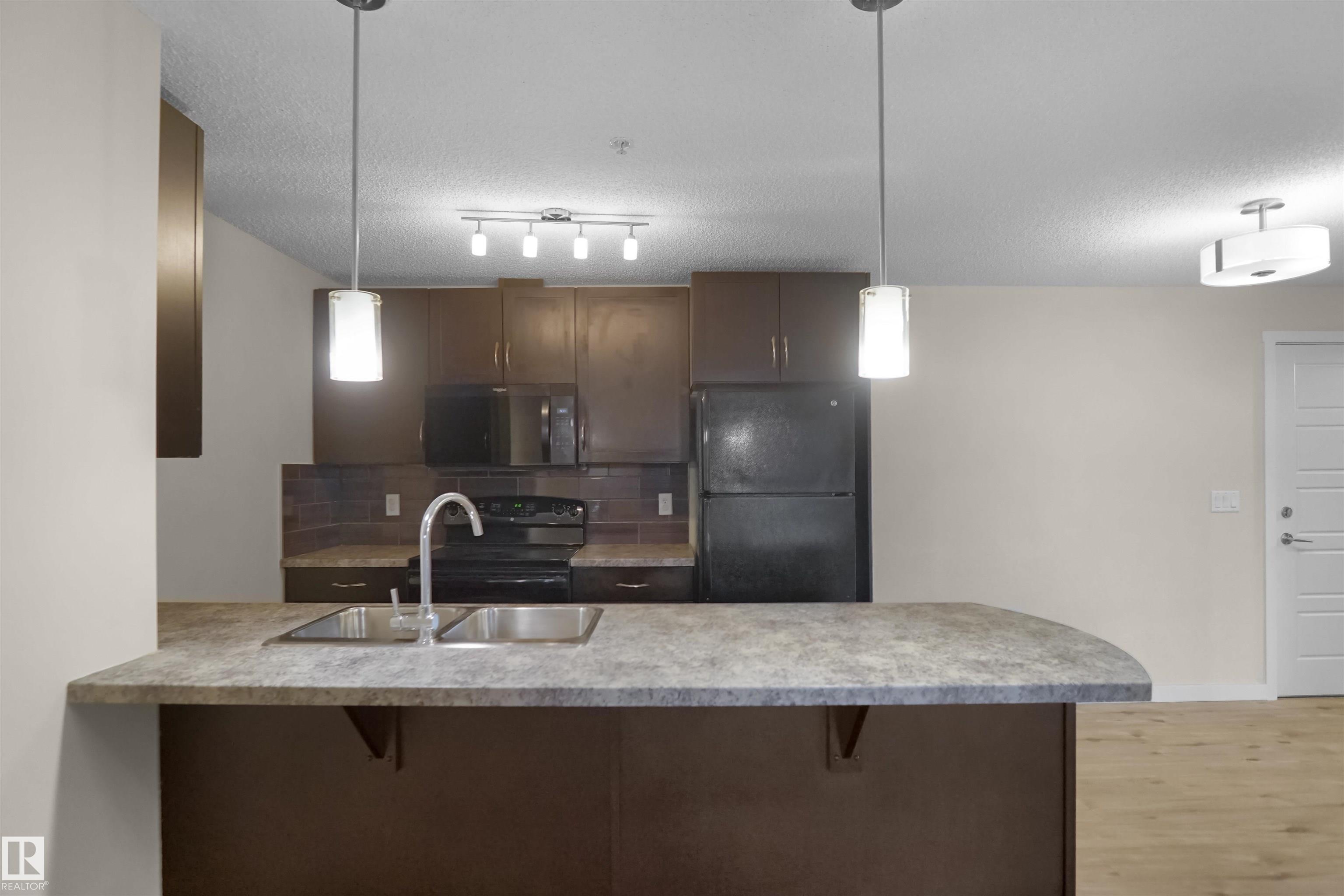 Perfectly located just minutes from the Henday, this prime location makes commuting anywhere in the city an absolute breeze. Love shopping, dining, and coffee dates? You?re only a short drive from premium outlets and popular restaurants. Step inside one of the most spacious suites in the entire complex. This beautifully designed open-concept layout features large windows that flood the space with natural light, creating a warm and inviting atmosphere. The charming kitchen is sure to impress with premium espresso cabinetry, stylish countertops, and sleek black appliances, including an over-the-range microwave. The generous living room flows seamlessly to an oversized patio with a gas hookup perfect for summer BBQs and entertaining guests. Your spacious bedroom offers a walk-in closet and a convenient ensuite bathroom with dual access doors. High-quality paint and superior soundproofing throughout the unit make relaxation effortless.