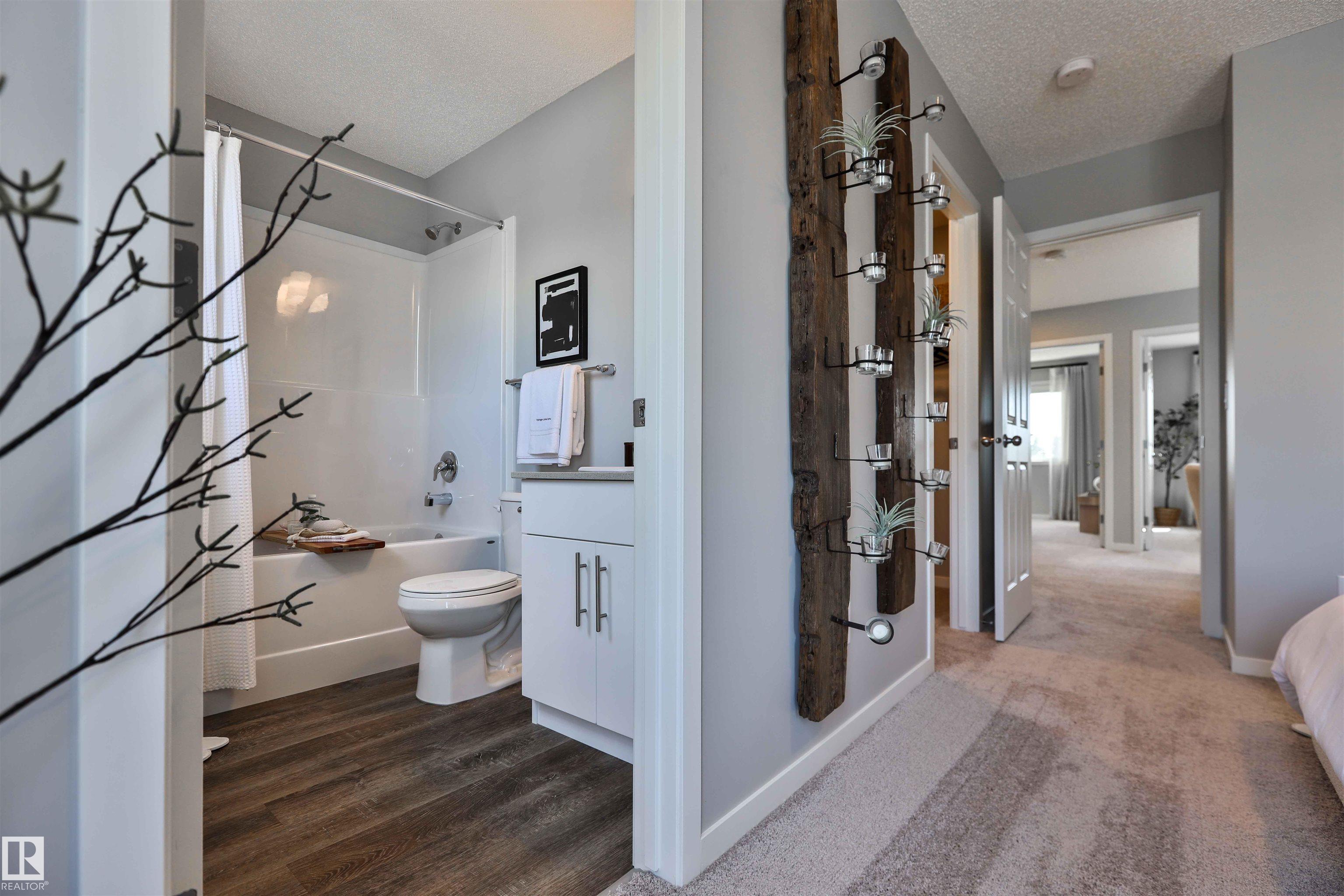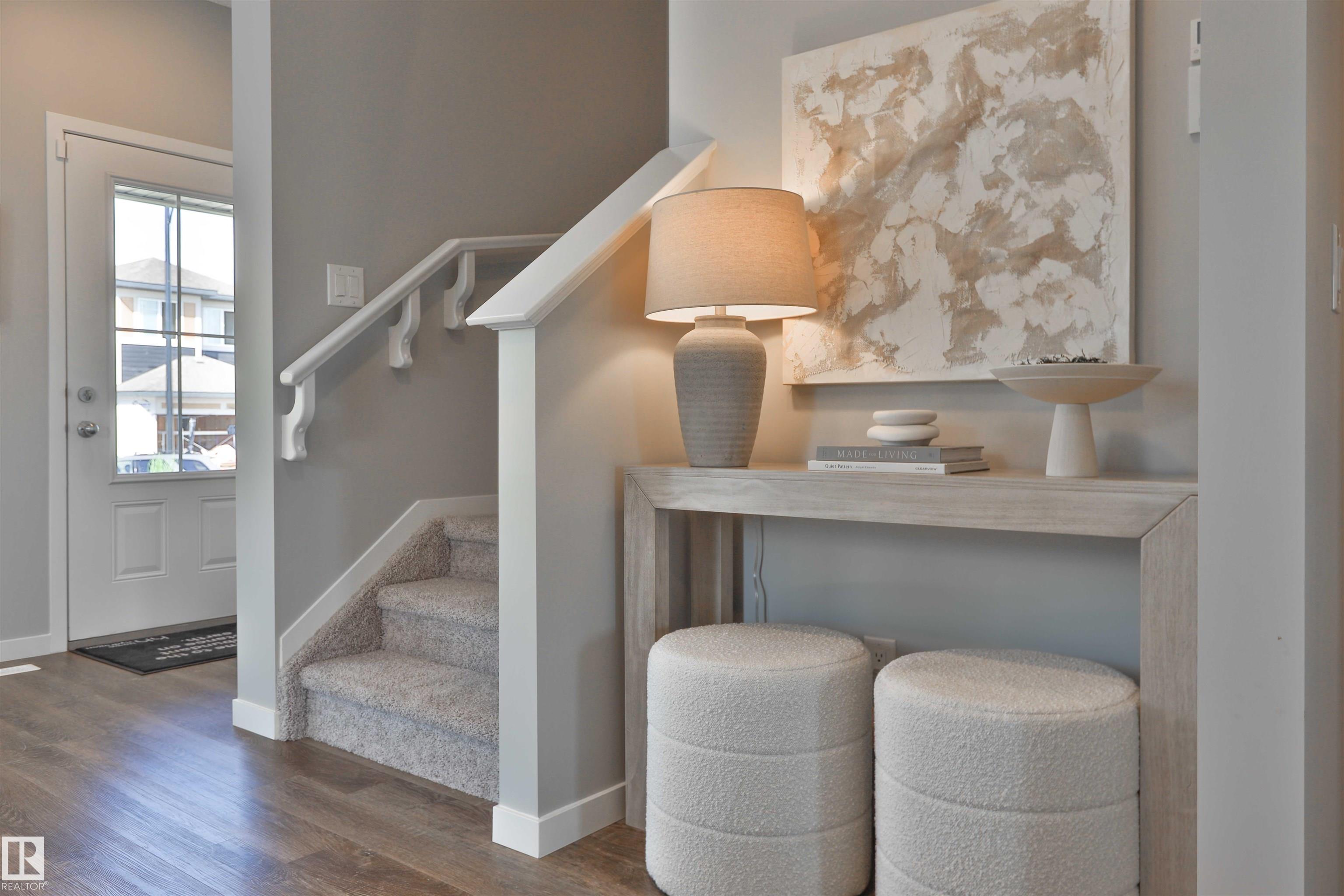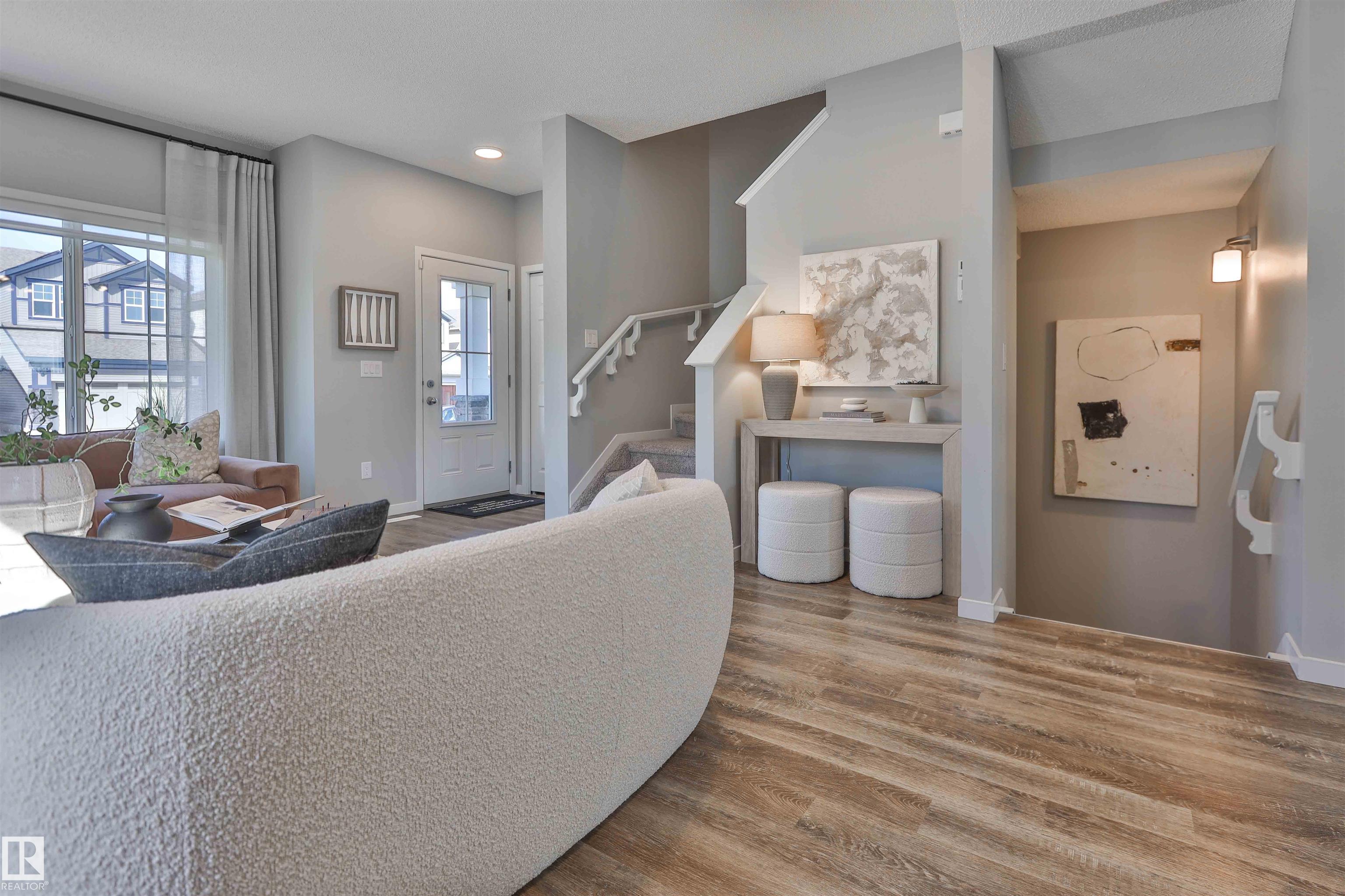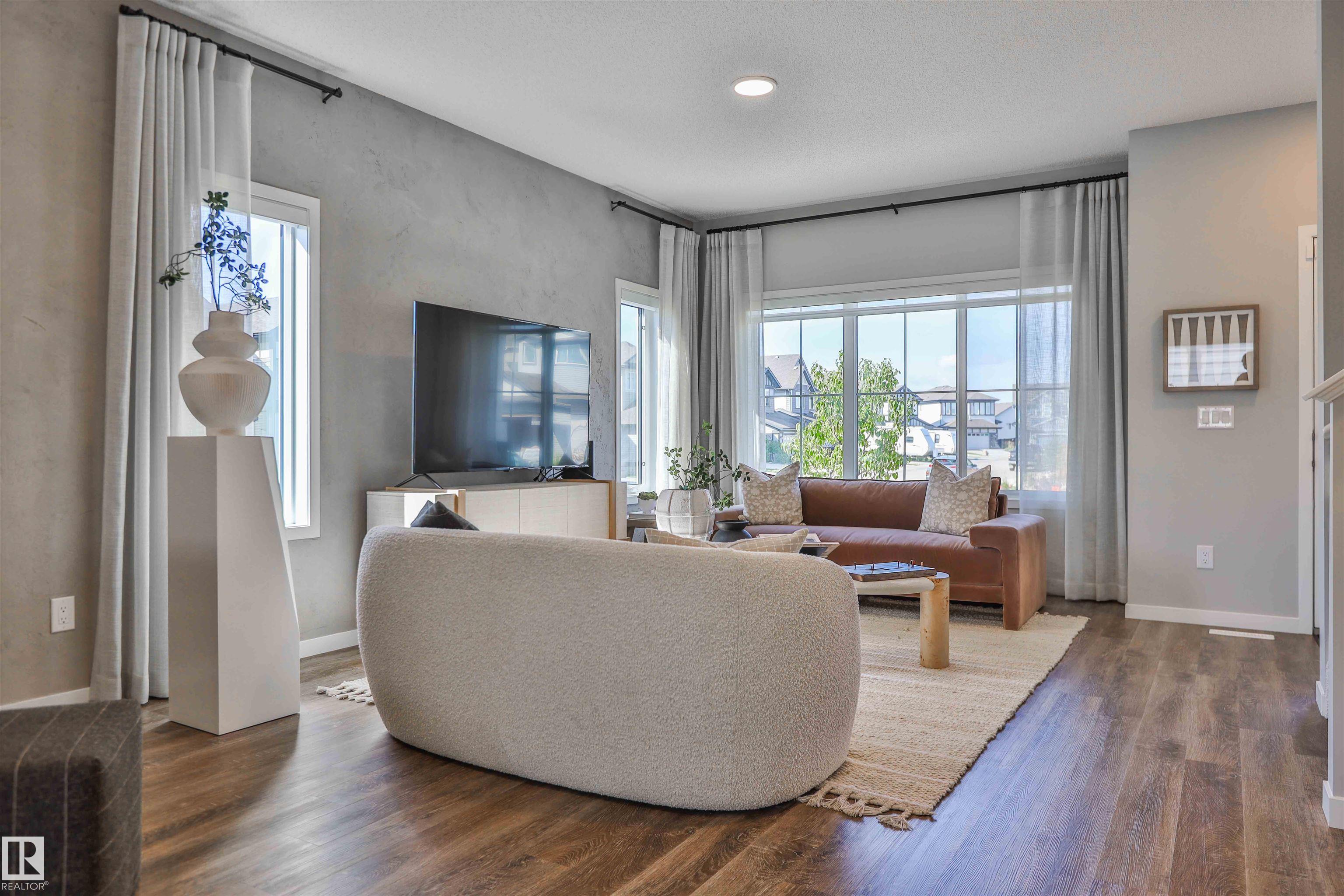 Be the first to own this one-of-a-kind Sansa model featuring innovative hydrogen heating, a rare upgrade in modern home design. Set on a corner lot, this home offers 9? ceilings, luxury vinyl plank flooring, and an airy layout filled with natural light from oversized and side windows. The bright great room flows into the dining space and rear kitchen, finished with quartz counters, an island with seating, soft-close cabinetry, Silgranit sink, and a generous pantry. A discreet half bath sits near the rear entry with access to the yard and parking pad, with option for a detached double garage. Upstairs features a spacious primary retreat with walk-in closet and ensuite, plus two bedrooms, loft, full bath, and upper laundry. Hydrogen heating is backed by forced air and HRV. Extras include A/C, triple-pane windows, blinds and drapes, appliance package, finished basement, and landscaping.