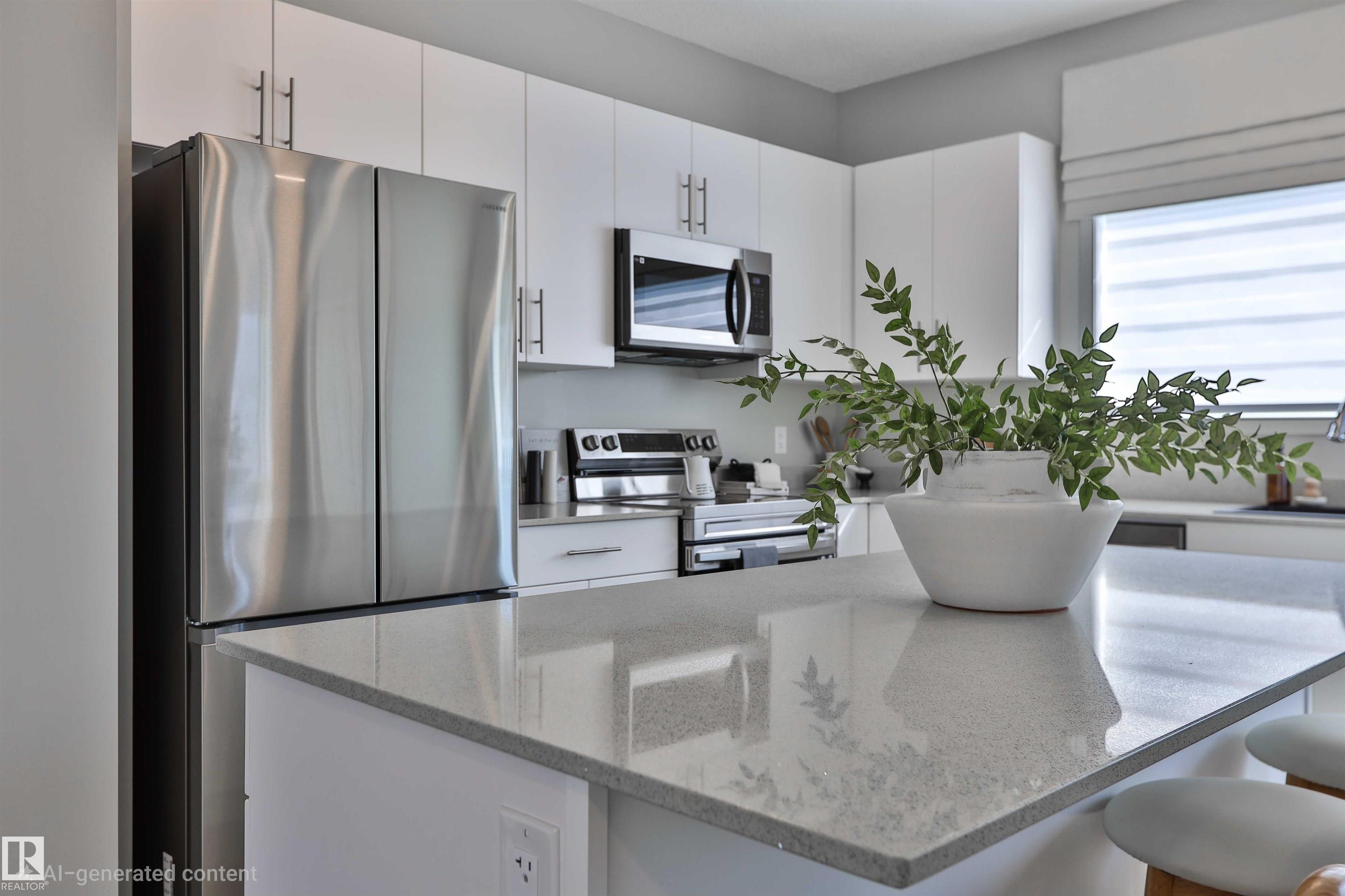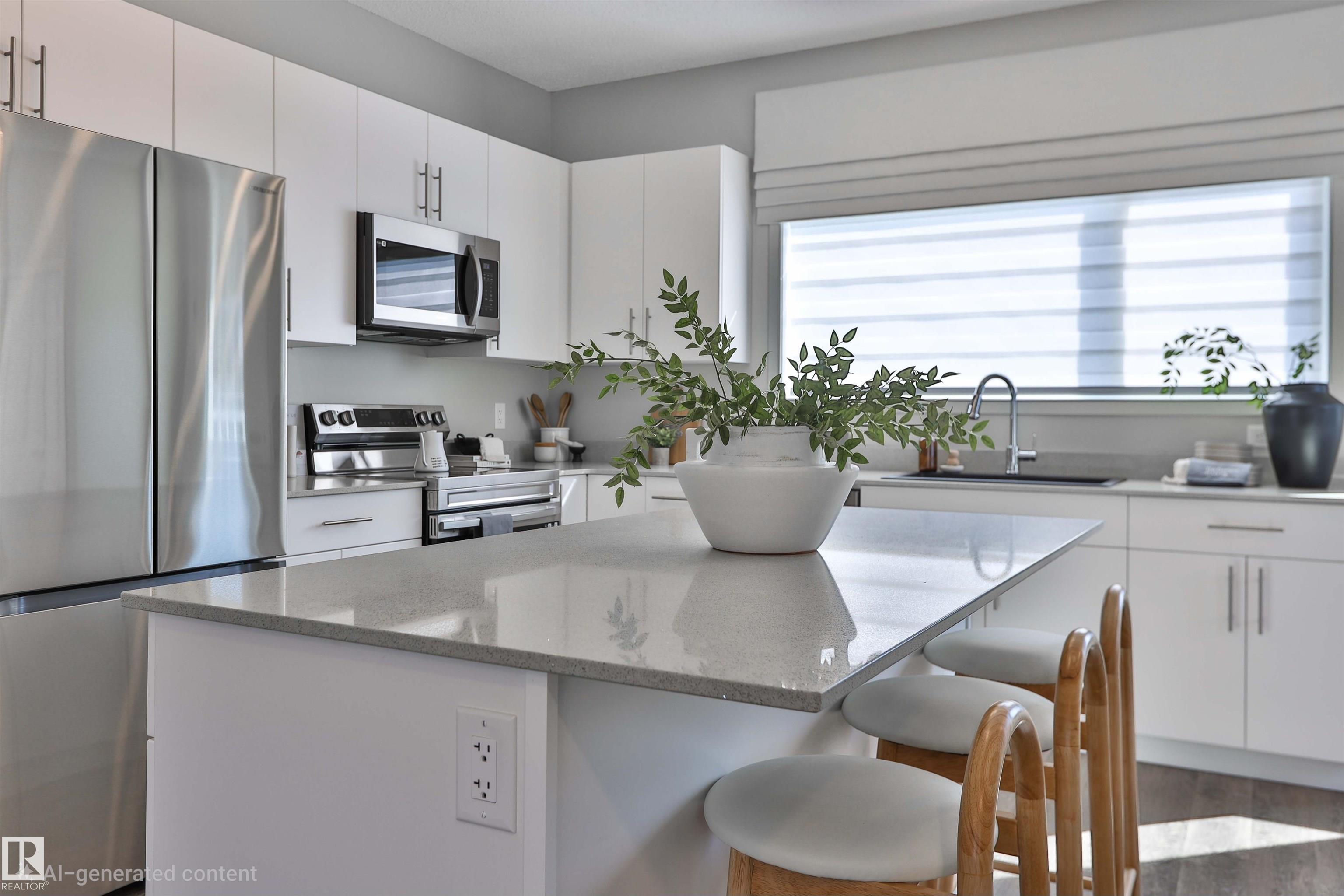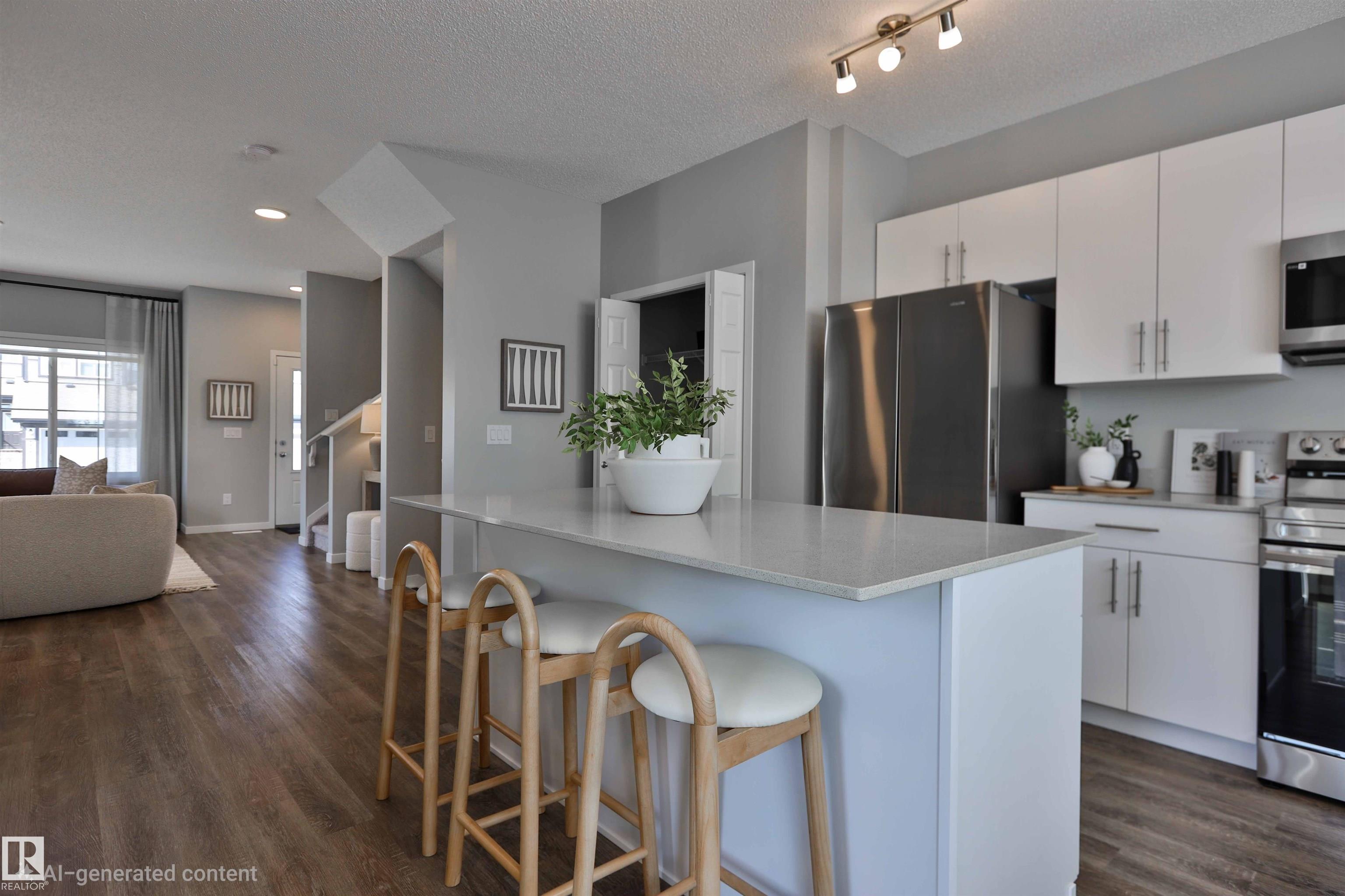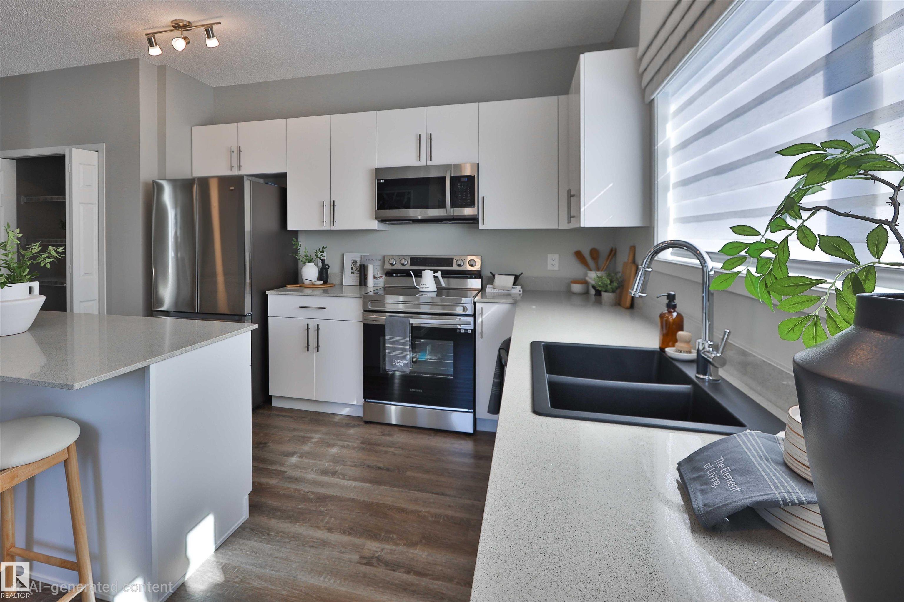 Be the first to own this one-of-a-kind Sansa model featuring innovative hydrogen heating, a rare upgrade in modern home design. Set on a corner lot, this home offers 9? ceilings, luxury vinyl plank flooring, and an airy layout filled with natural light from oversized and side windows. The bright great room flows into the dining space and rear kitchen, finished with quartz counters, an island with seating, soft-close cabinetry, Silgranit sink, and a generous pantry. A discreet half bath sits near the rear entry with access to the yard and parking pad, with option for a detached double garage. Upstairs features a spacious primary retreat with walk-in closet and ensuite, plus two bedrooms, loft, full bath, and upper laundry. Hydrogen heating is backed by forced air and HRV. Extras include A/C, triple-pane windows, blinds and drapes, appliance package, finished basement, and landscaping.
