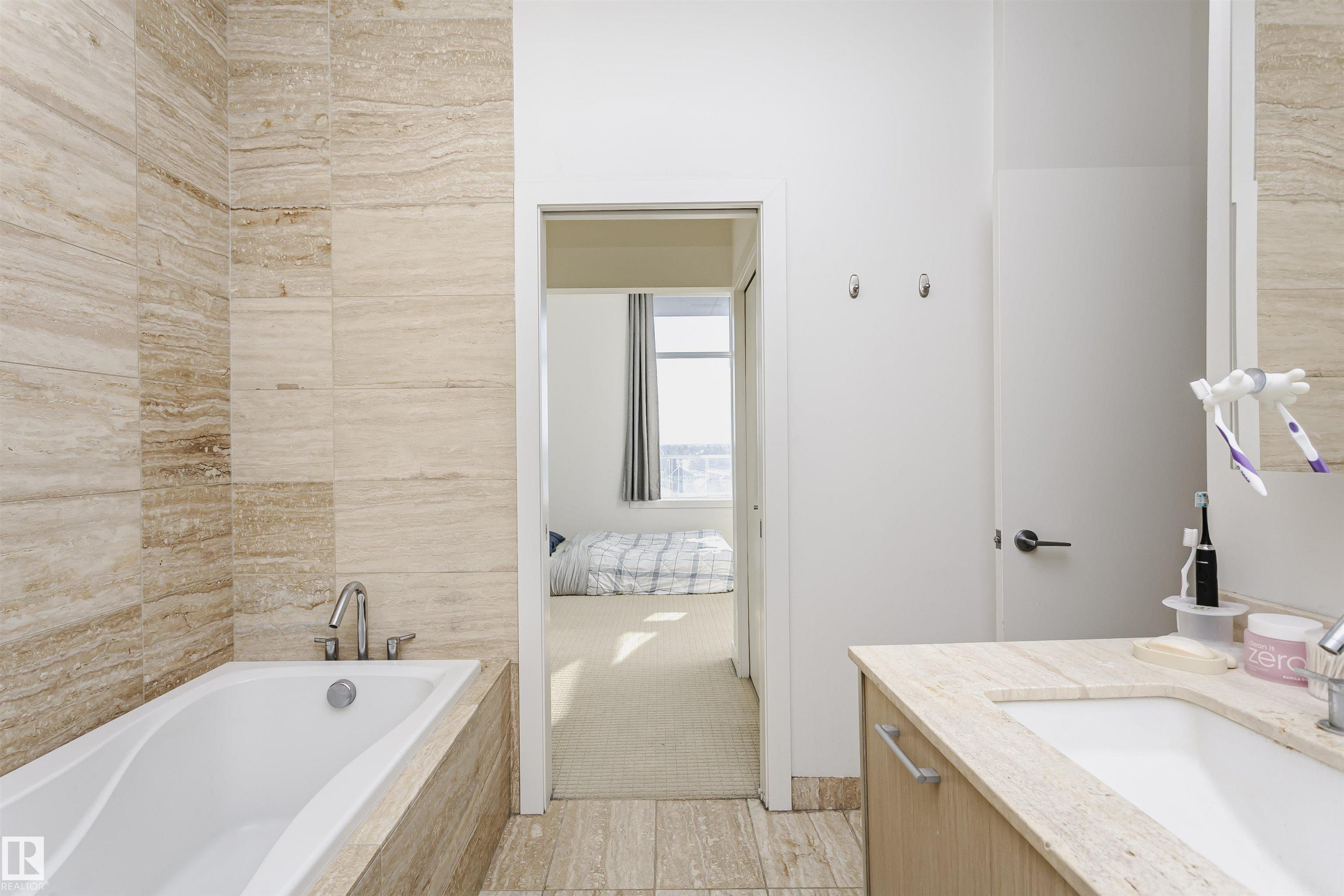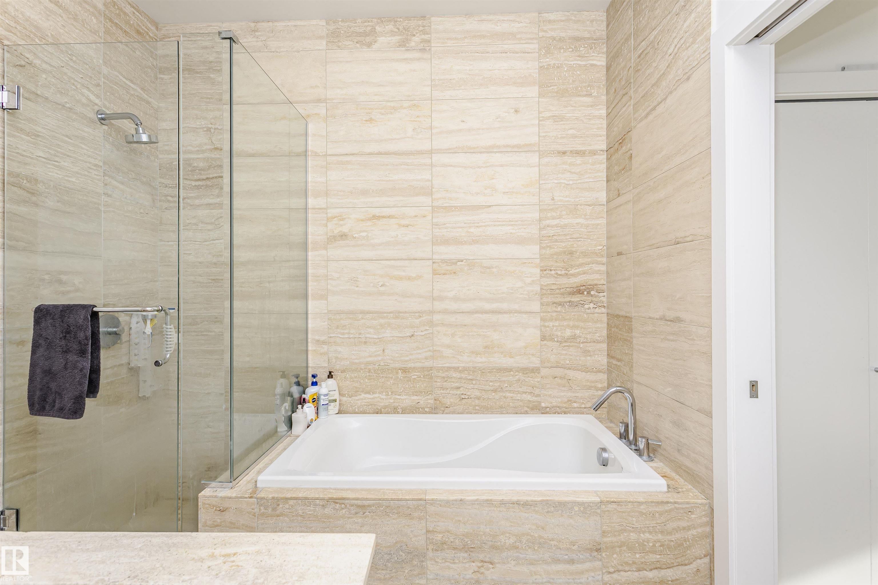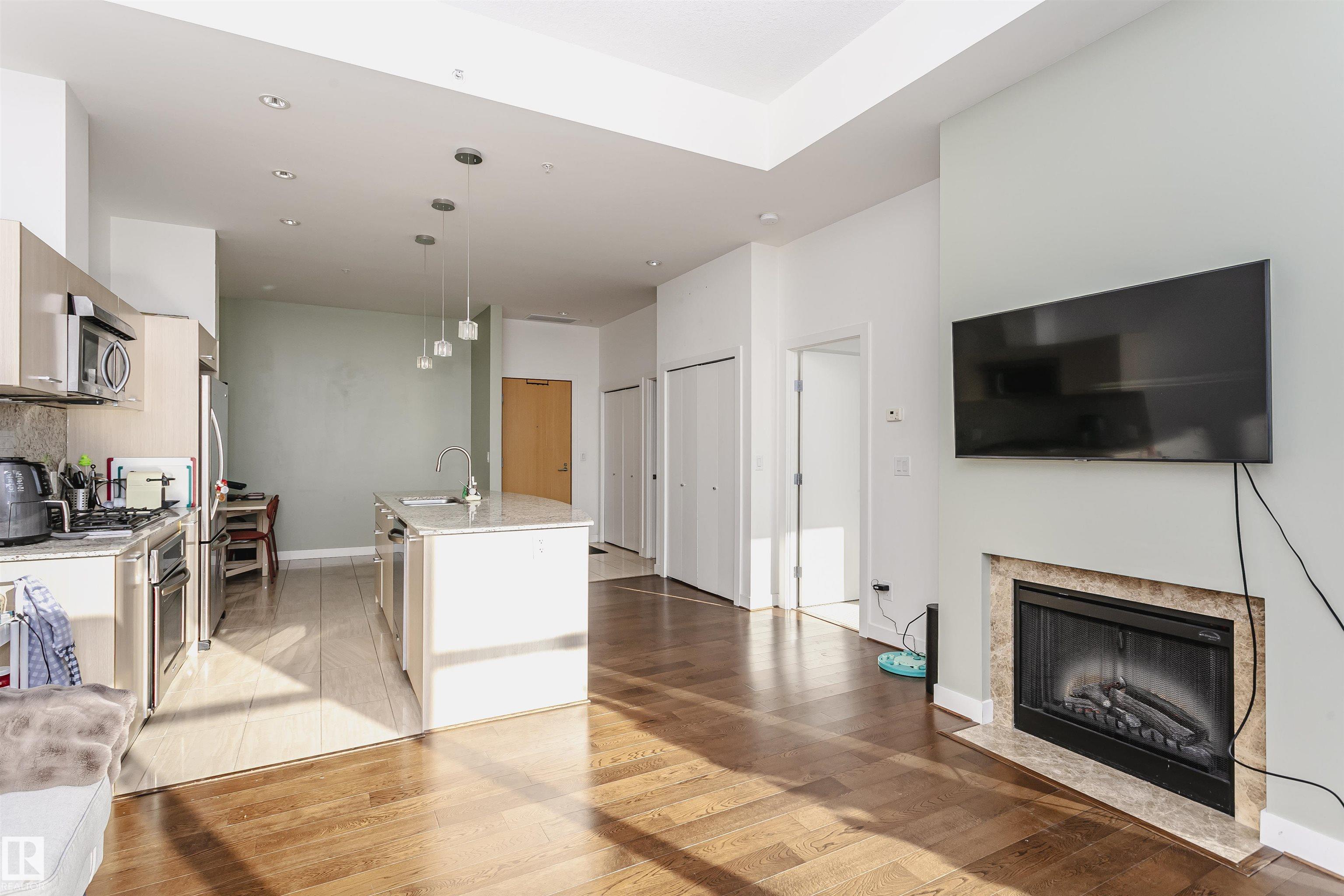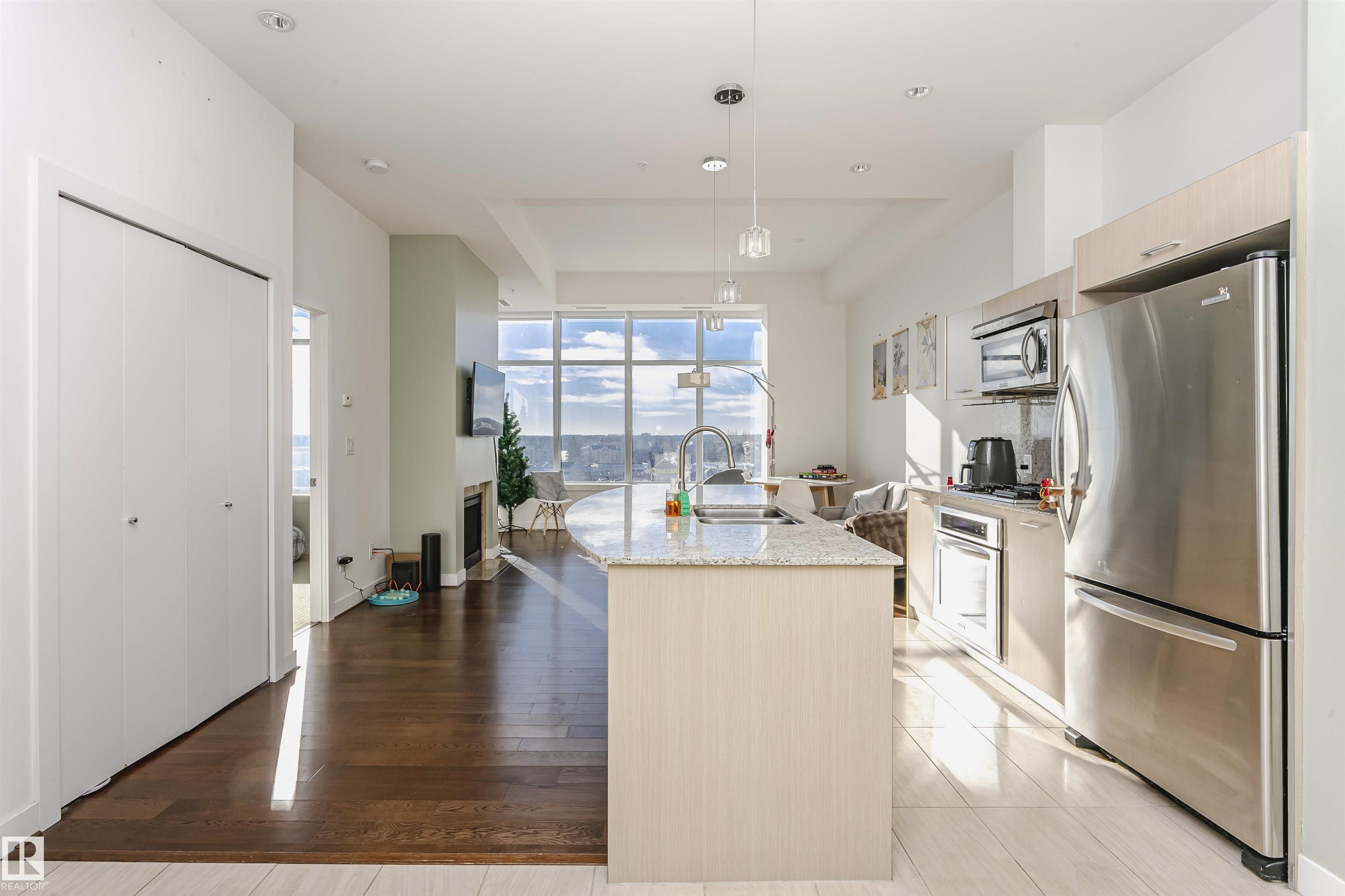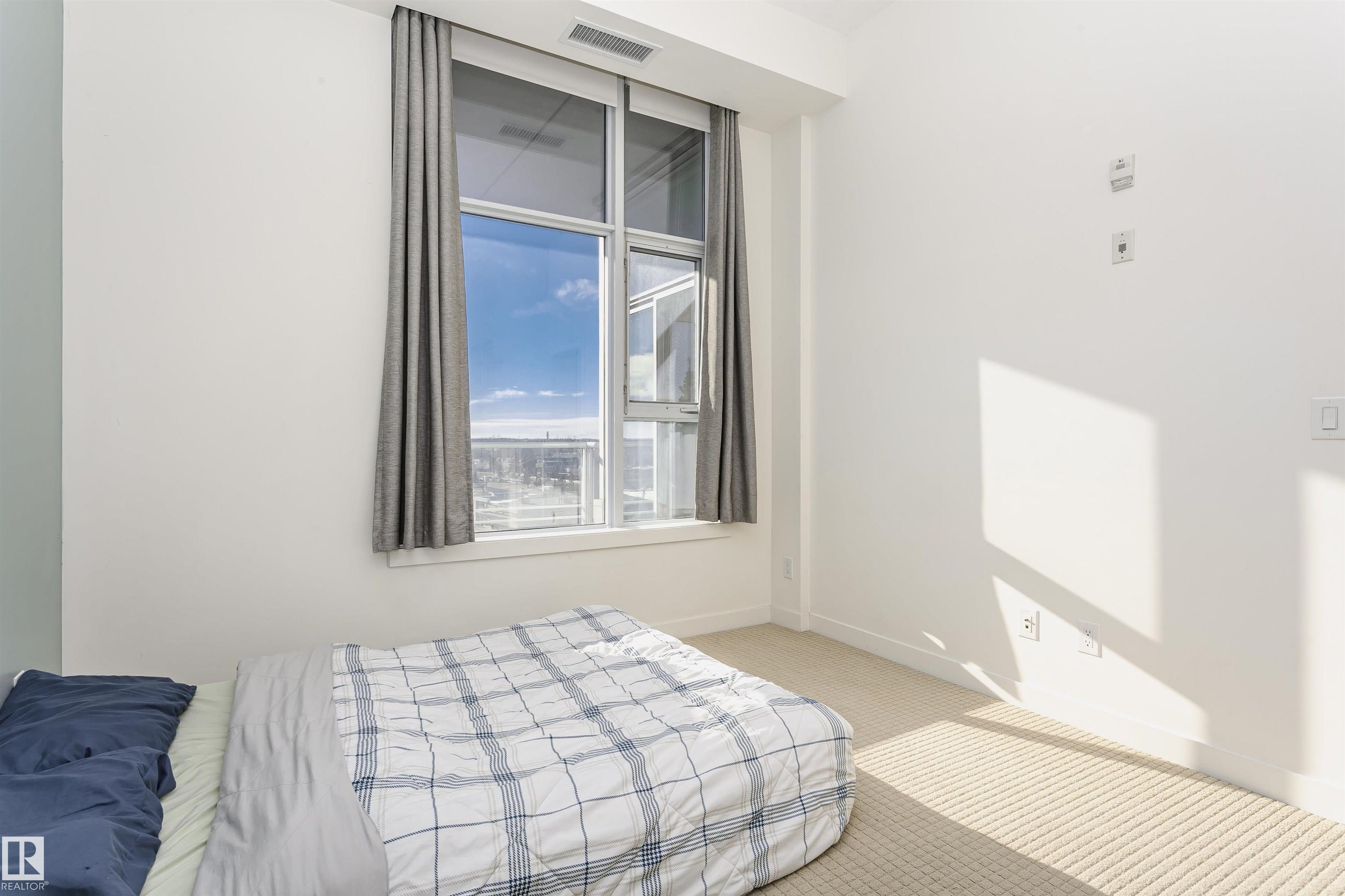 Top-floor, south-facing in sought-after Century Park! Soaring ceilings and expansive windows flood the open-concept layout with natural light, creating a bright and airy atmosphere. Just off the entrance, a versatile flex space offers the perfect spot for a home office, dining area, or reading nook. The modern kitchen showcases granite countertops, a gas stovetop, built-in oven and microwave, plus a large island. The spacious bedroom features dual closets and convenient dual-entry access to the 4-piece ensuite. Relax outdoors on your sunny private balcony with gas BBQ hookup. Complete with titled underground parking, a separate titled storage cage, fitness centre access, and ALL utilities included in the condo fees. Just steps to the LRT, shopping, restaurants, and minutes to major routes. This is urban convenience at its best!