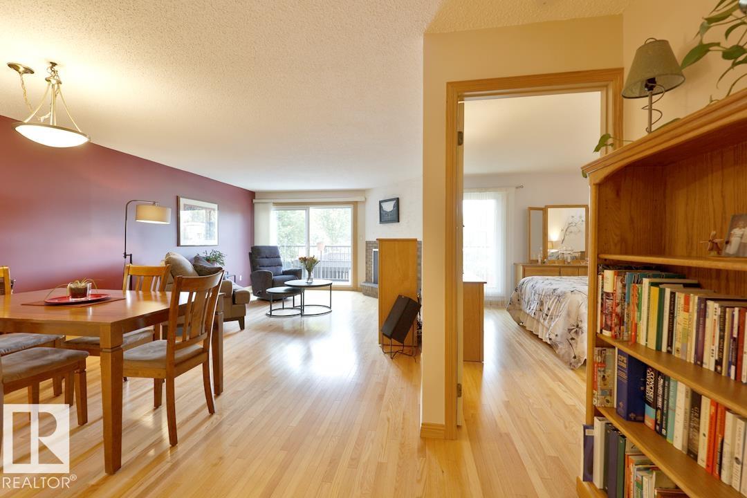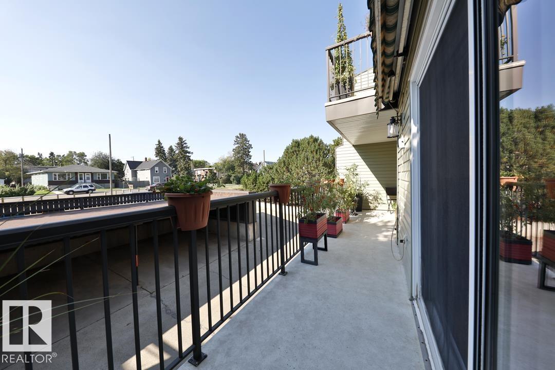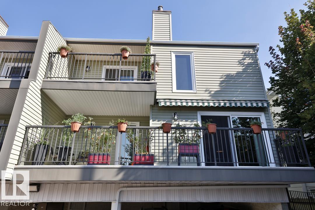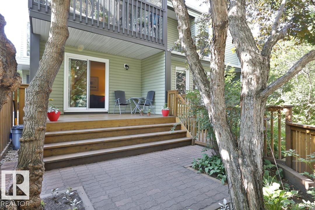 Experience urban living in this private Strathcona gem on a quiet, tree-lined street. Surrounded by mature trees, stunning in fall, this central location is steps from Saskatchewan Drive, the river valley, walking & biking trails, & a 15-minute walk to the U of A. Ideal for outdoor enthusiasts and pet lovers, the home offers 2 bedrooms, each with an ensuite. The main living area features a cozy gas fireplace and sliding doors to a large south-facing balcony, partially covered and complete with a gas BBQ line, perfect for morning coffee or evening relaxation. The 2nd b/r opens to a north-facing fenced patio, creating a private outdoor retreat. Additional storage is available in the lower-level & a double carport adds convenience. Recent upgrades include Hunter Douglas blinds, lighting, some appliances & a new awning cover. Close to shops, the Strathcona Farmers Market, & Arts District, this meticulously maintained home blends nature, lifestyle, and city convenience.