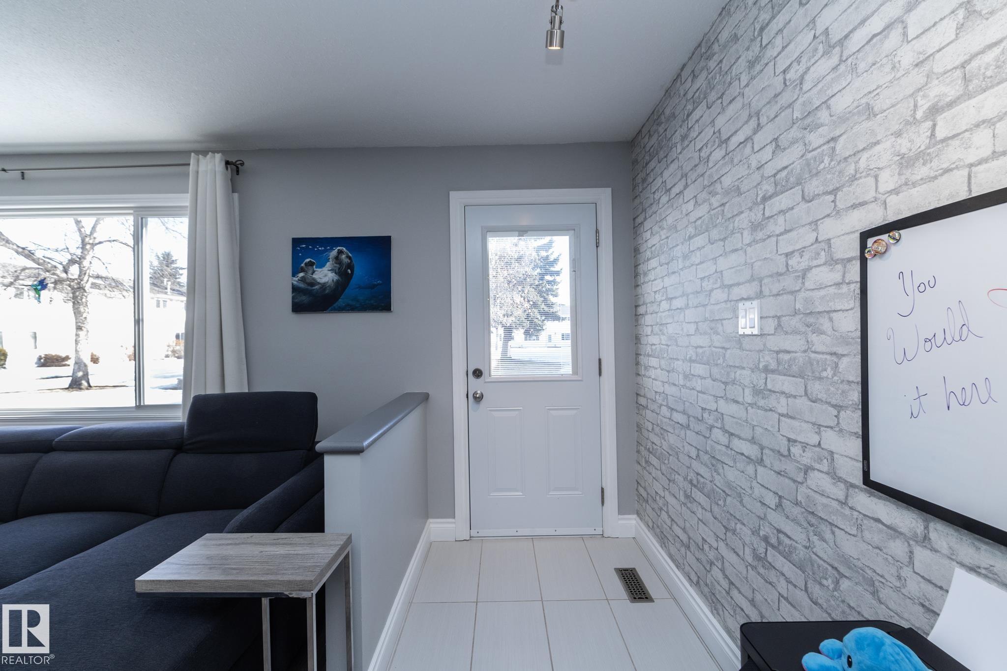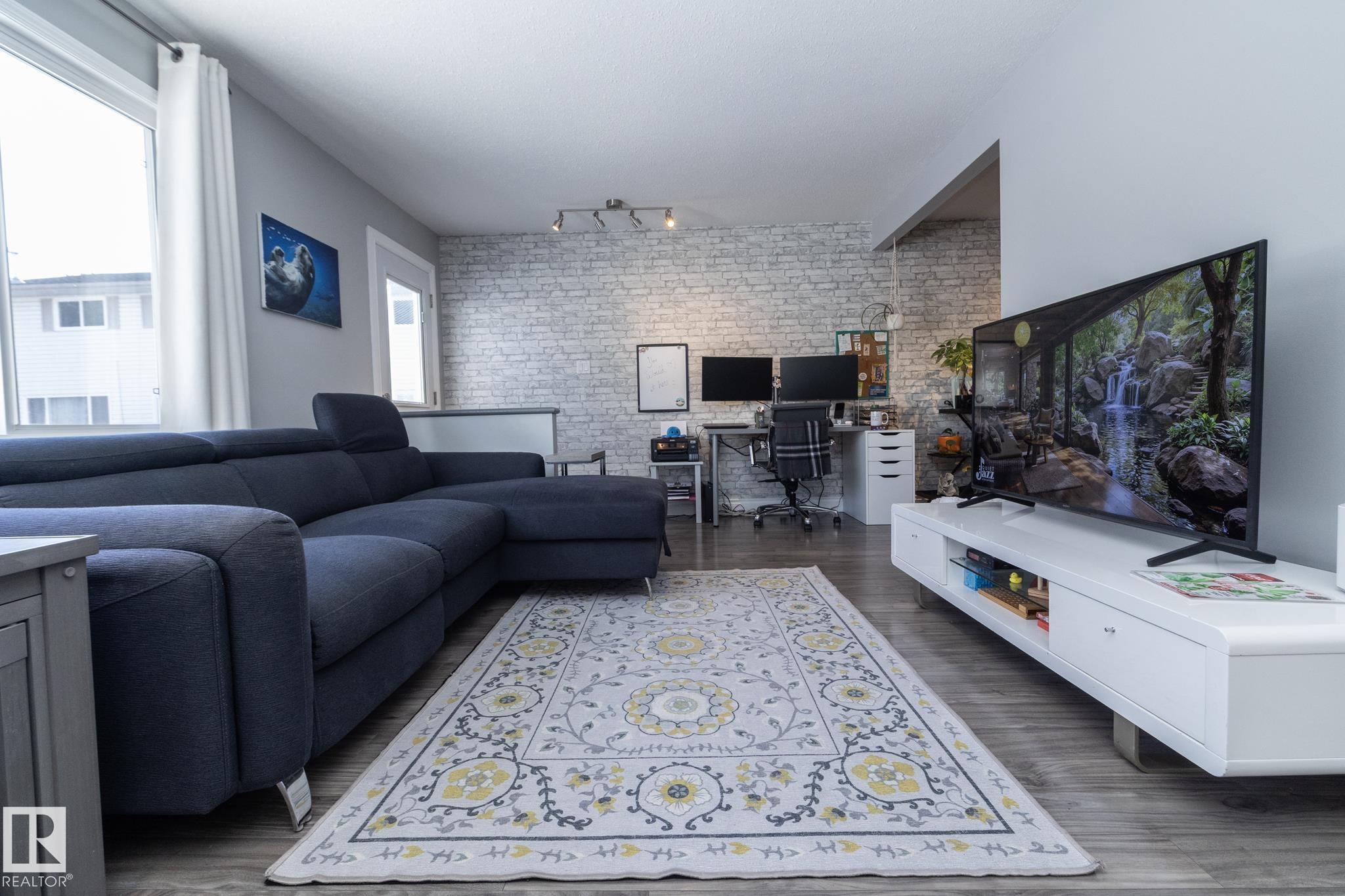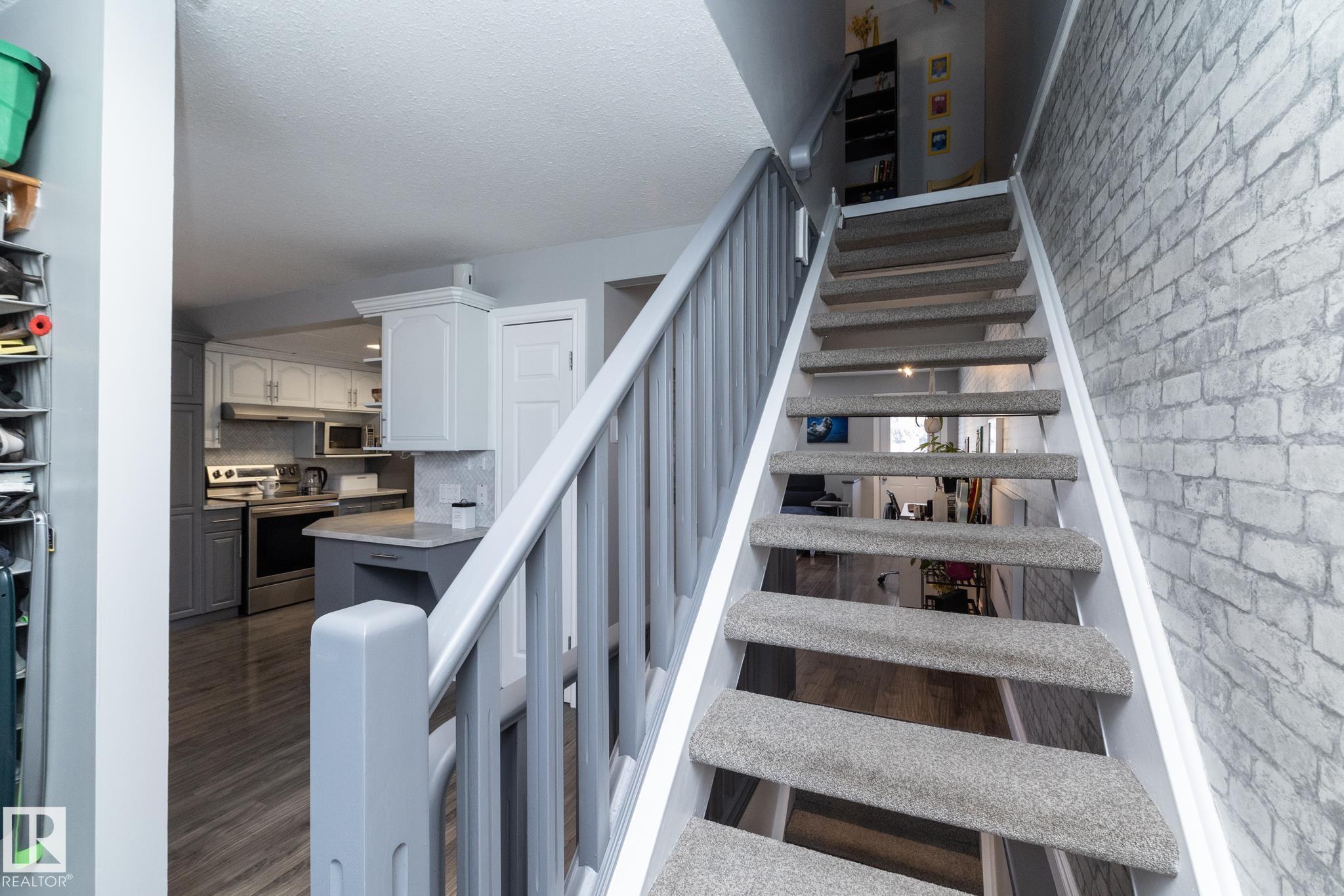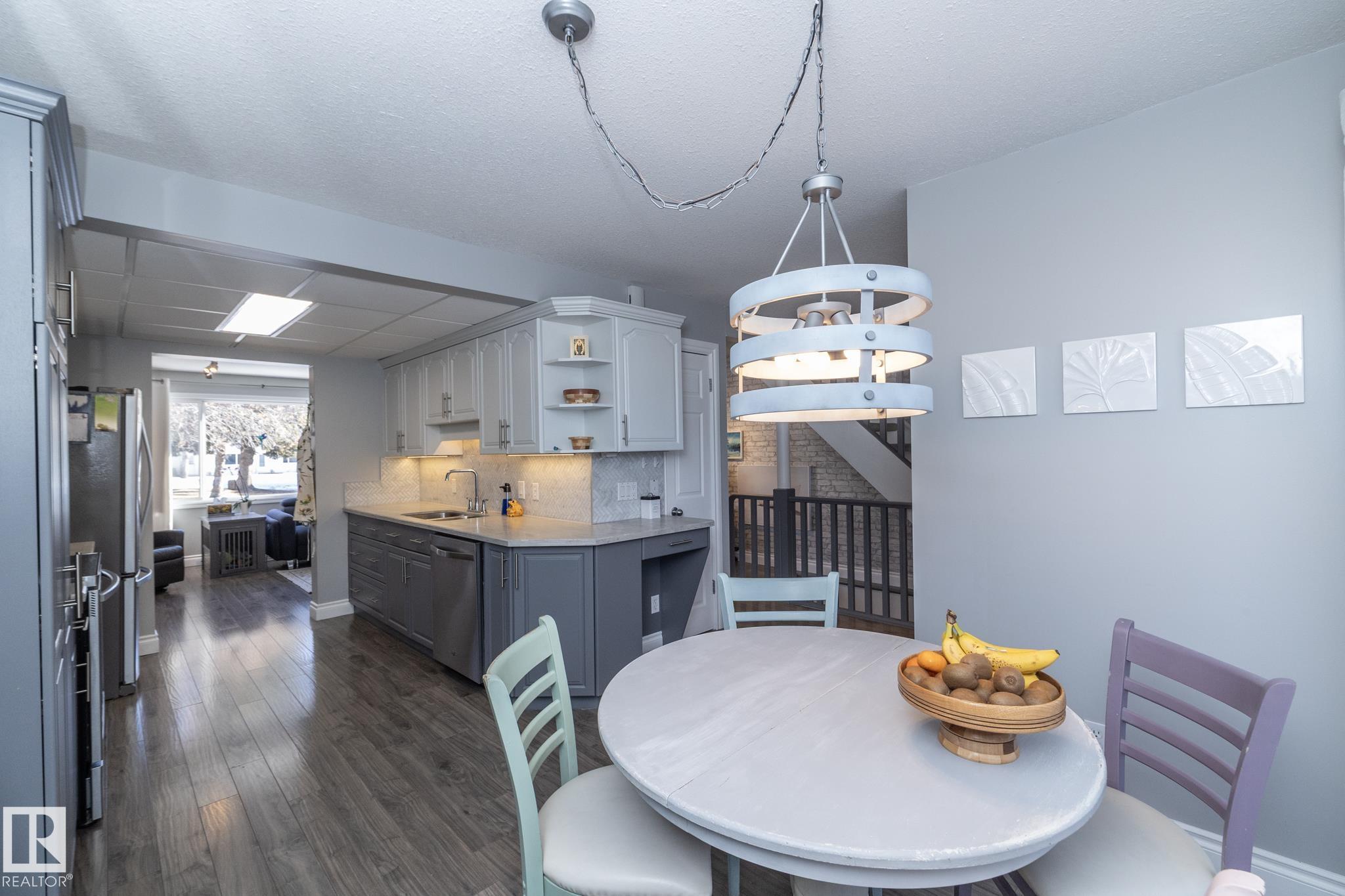 FANTASTIC END UNIT ? FULLY FINISHED WITH A PARKING STALL. Pride of ownership is evident throughout this beautifully maintained home! Bright and spacious with abundant natural light, this move-in ready property features updated flooring and modern finishes throughout. The kitchen offers upgraded cabinetry, ample storage, and generous counter space. The living room is large and inviting, perfect for everyday living or entertaining. A convenient two-piece bath completes the main floor. Upstairs you?ll find three well-sized bedrooms, including a spacious primary, along with an updated main bathroom. The fully finished basement adds exceptional living space with a versatile office/den or workout area, laundry with cabinets and countertop, and a comfortable family room. Enjoy the private fenced yard with gazebo included. Well managed complex in a great location?this one is a must see!