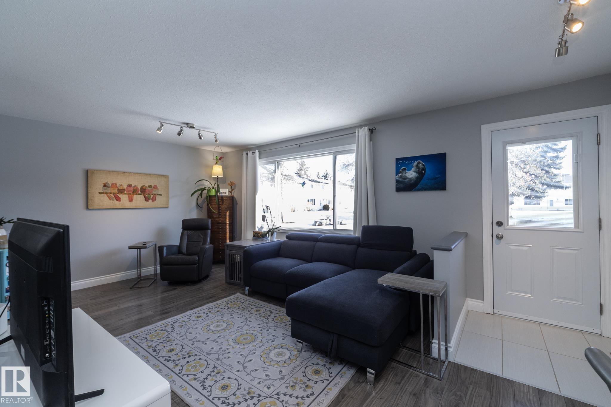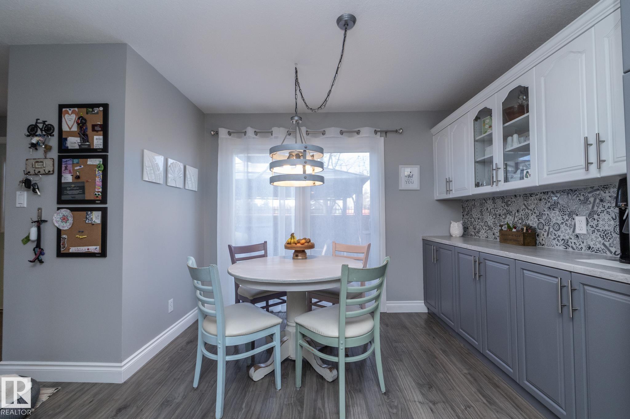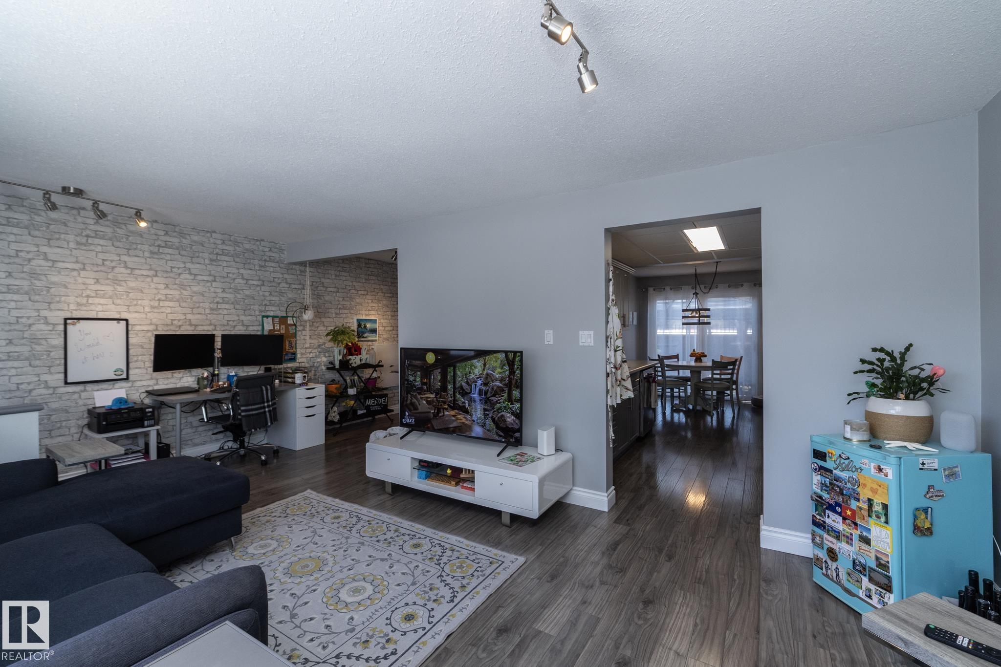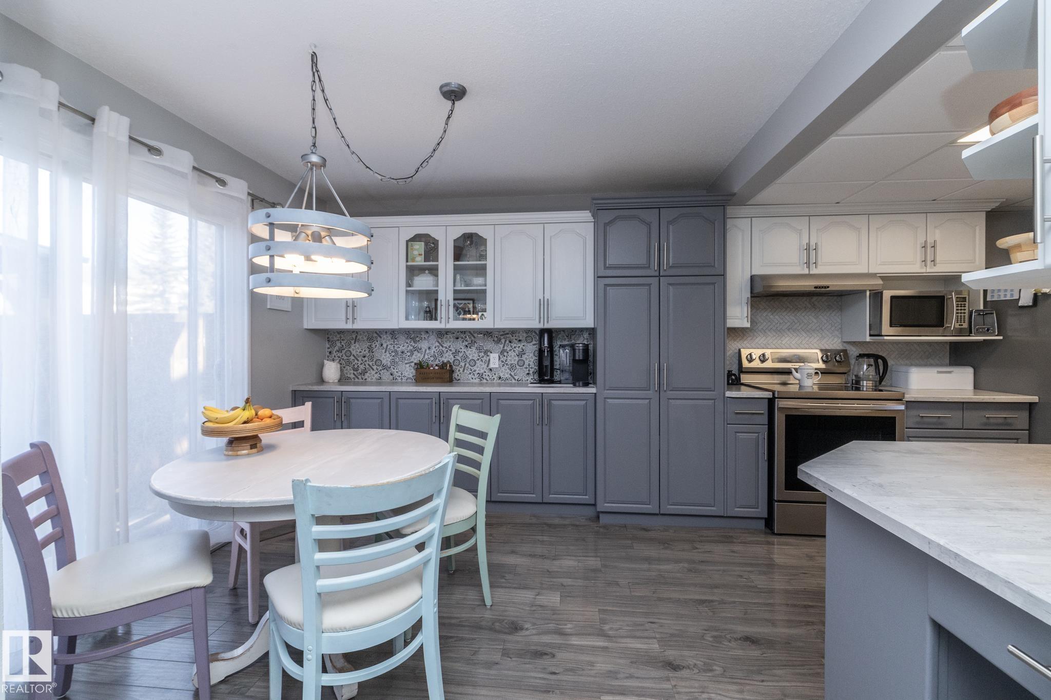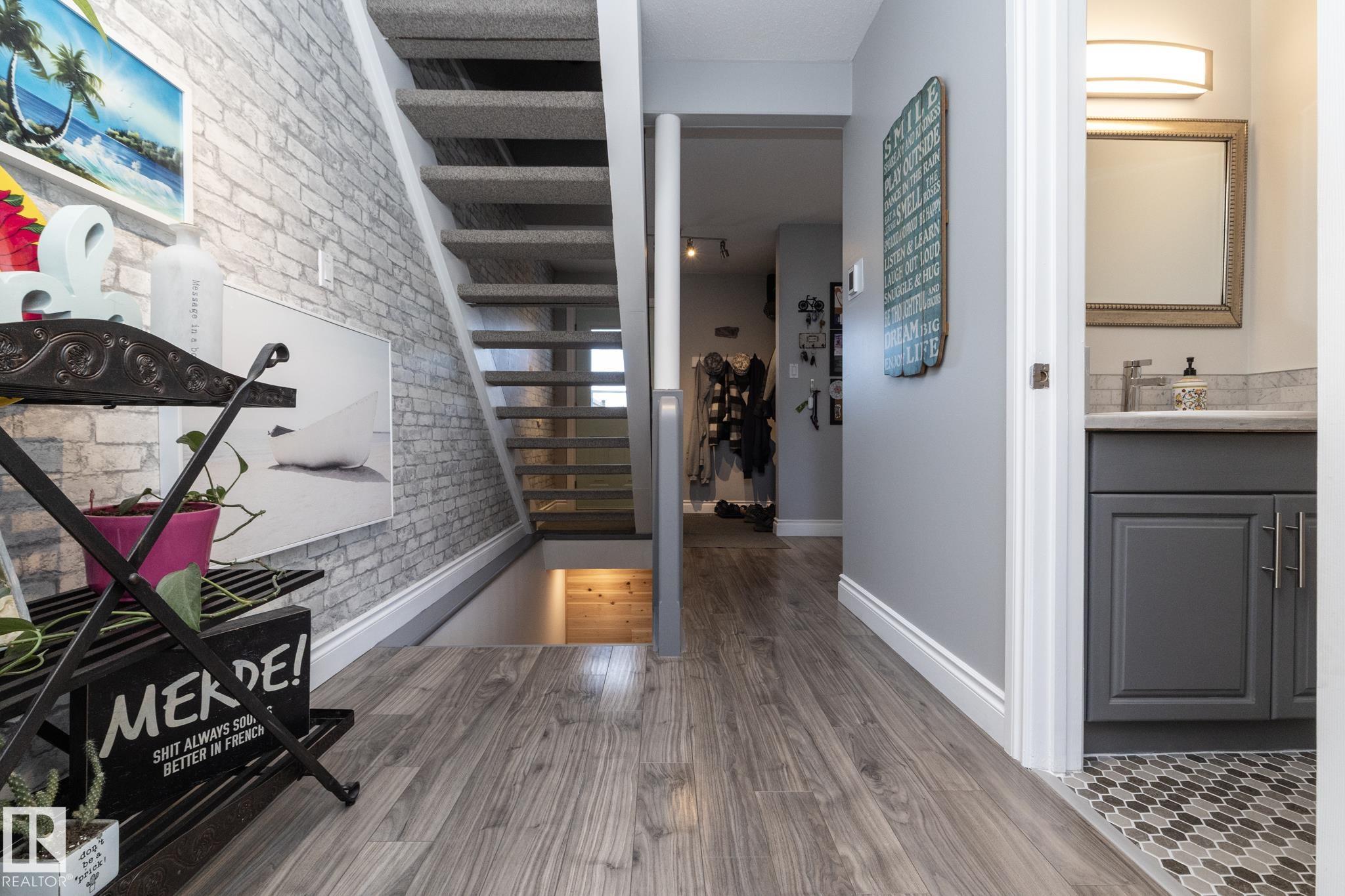 FANTASTIC END UNIT ? FULLY FINISHED WITH A PARKING STALL. Pride of ownership is evident throughout this beautifully maintained home! Bright and spacious with abundant natural light, this move-in ready property features updated flooring and modern finishes throughout. The kitchen offers upgraded cabinetry, ample storage, and generous counter space. The living room is large and inviting, perfect for everyday living or entertaining. A convenient two-piece bath completes the main floor. Upstairs you?ll find three well-sized bedrooms, including a spacious primary, along with an updated main bathroom. The fully finished basement adds exceptional living space with a versatile office/den or workout area, laundry with cabinets and countertop, and a comfortable family room. Enjoy the private fenced yard with gazebo included. Well managed complex in a great location?this one is a must see!