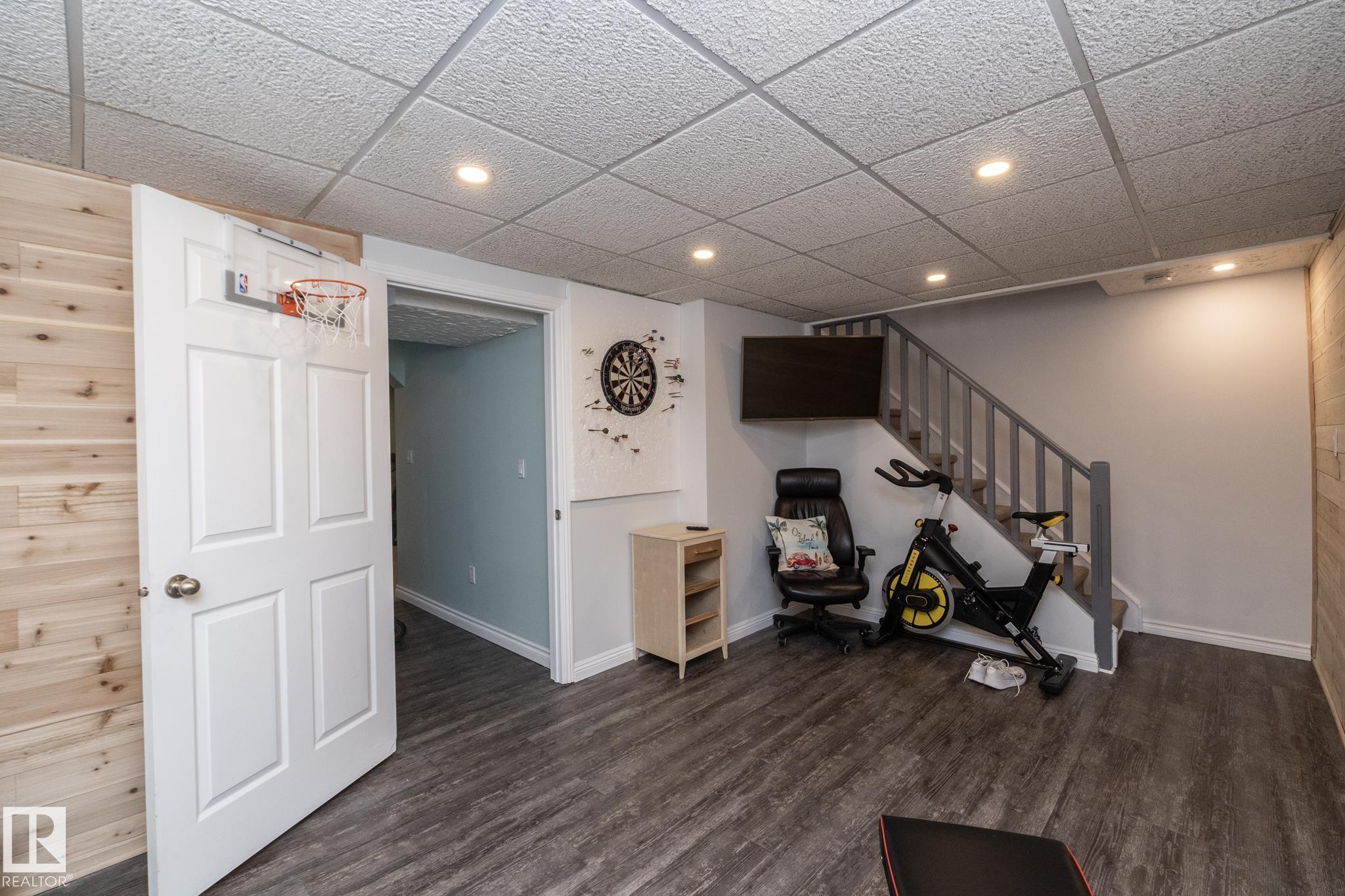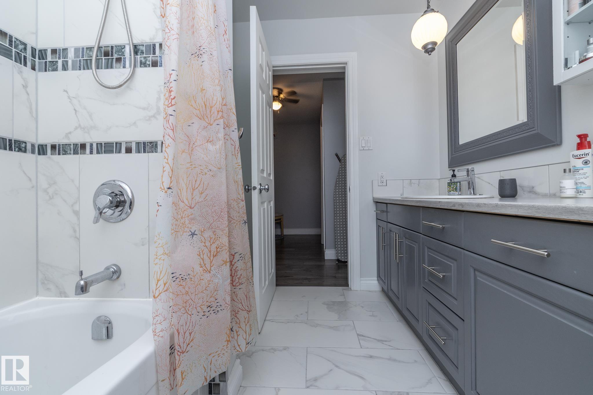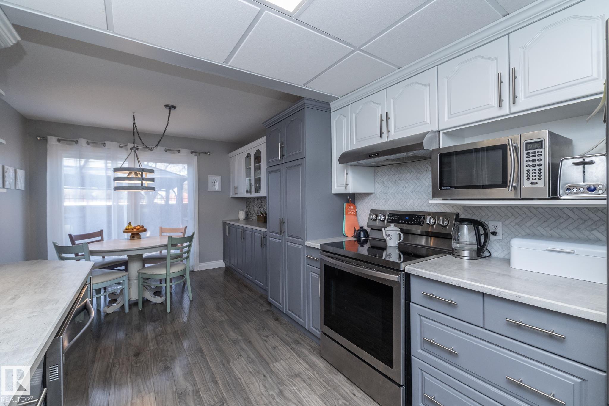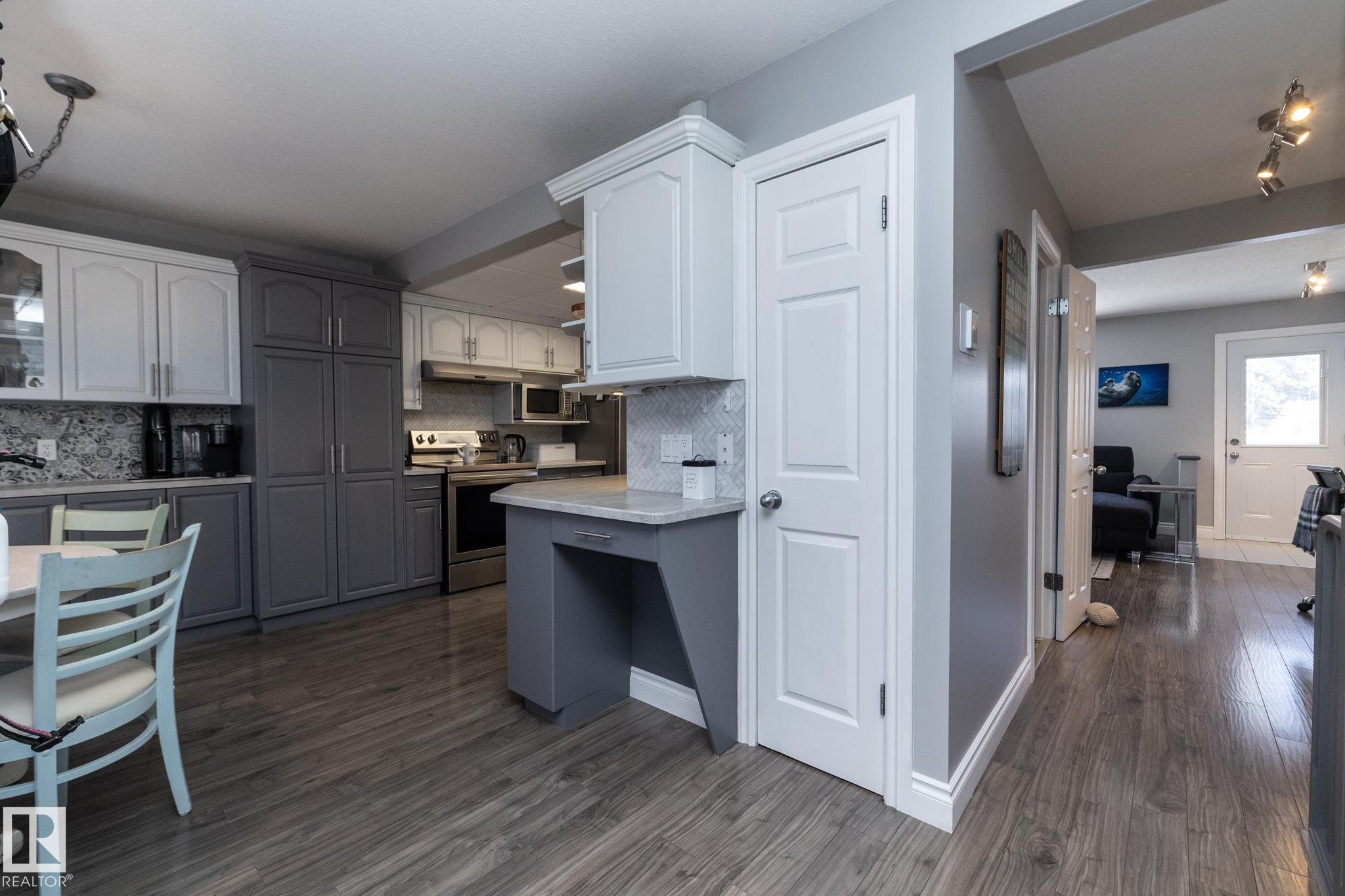 FANTASTIC END UNIT ? FULLY FINISHED WITH A PARKING STALL. Pride of ownership is evident throughout this beautifully maintained home! Bright and spacious with abundant natural light, this move-in ready property features updated flooring and modern finishes throughout. The kitchen offers upgraded cabinetry, ample storage, and generous counter space. The living room is large and inviting, perfect for everyday living or entertaining. A convenient two-piece bath completes the main floor. Upstairs you?ll find three well-sized bedrooms, including a spacious primary, along with an updated main bathroom. The fully finished basement adds exceptional living space with a versatile office/den or workout area, laundry with cabinets and countertop, and a comfortable family room. Enjoy the private fenced yard with gazebo included. Well managed complex in a great location?this one is a must see!