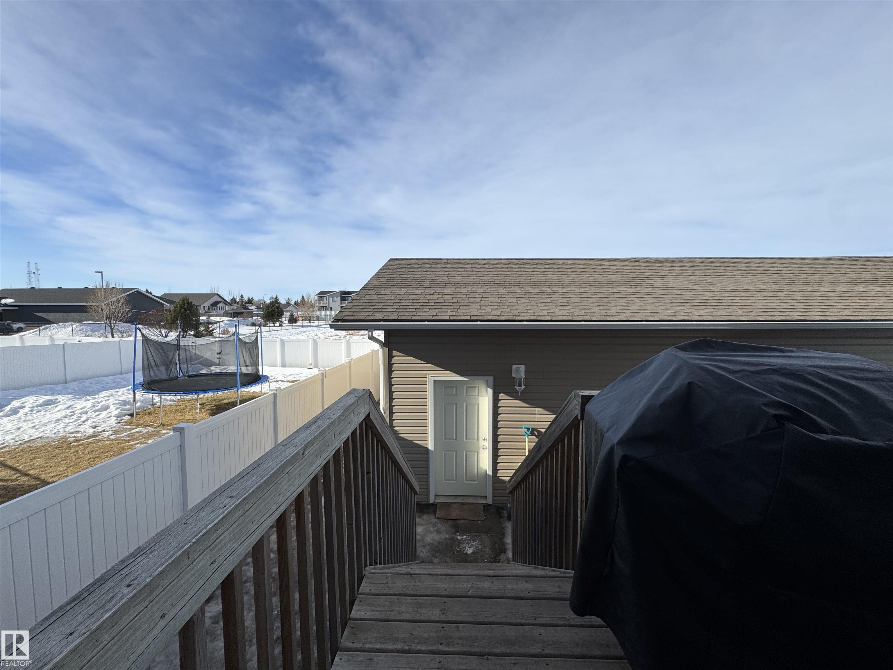 This half duplex built in 2015 is sure to please and is located in a family friendly area close to walking trails, a playground, ice rink, football fields and a school. As one enters the home you are greeted into a bright spacious living room which leads to the dining room and kitchen boasting quartz countertops, shaker cabinets, white appliances and vinyl flooring. The patio doors off of the dining area leads you onto the finished deck and down to the single detached garage. A 2 pc bathroom finished off the main floor. On the upper level you will find 3 bedrooms one of while is a spacious primary bedroom with walk in closet, a laundry area and a 4 piece main bathroom. The basement is completely open to your imagination, insulated and drywalled and roughed in for a third bathroom. The space would be great for a family room, rec room, additional bedrooms, workout space or a home office. This may just be the place for you and your family, a must see!!