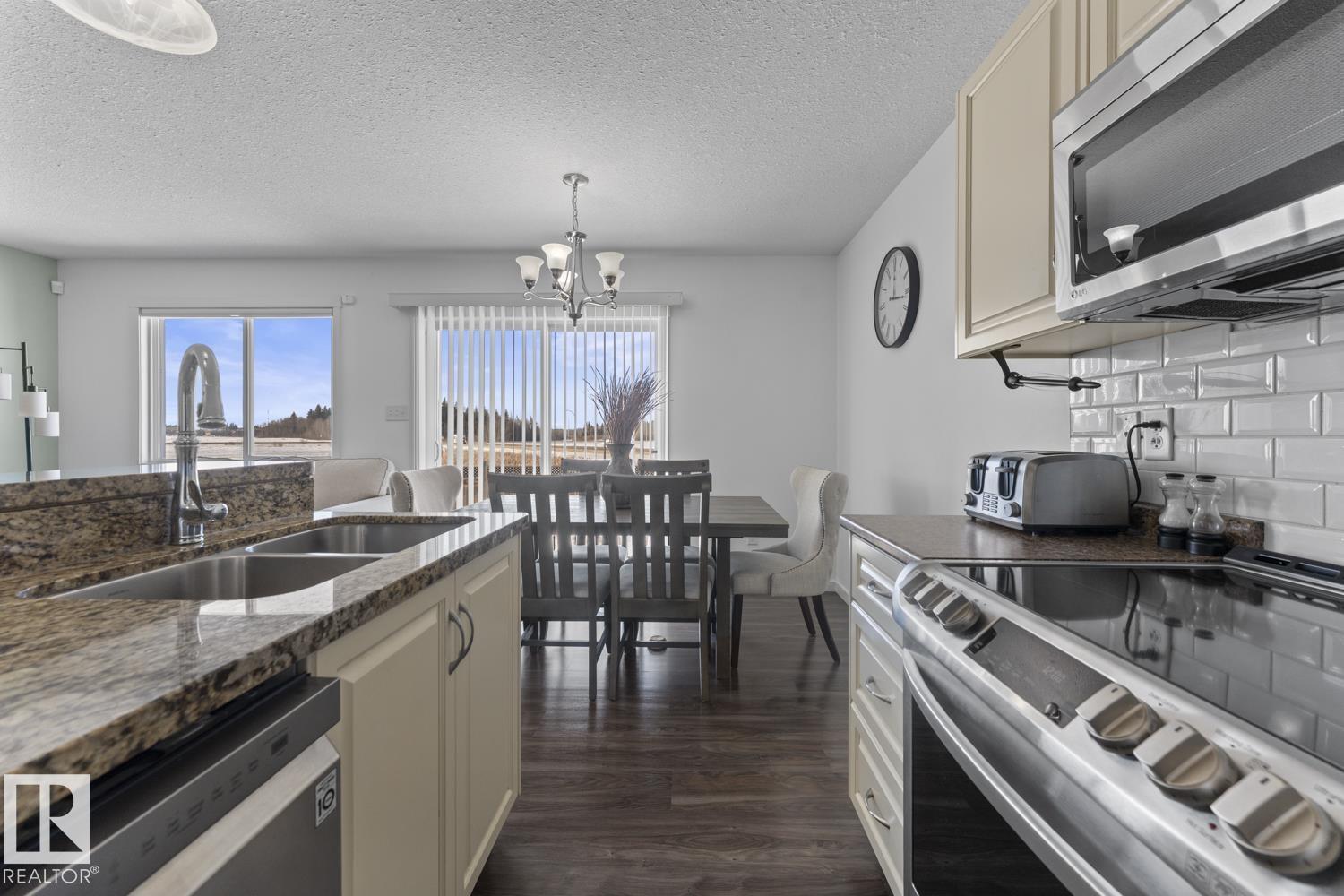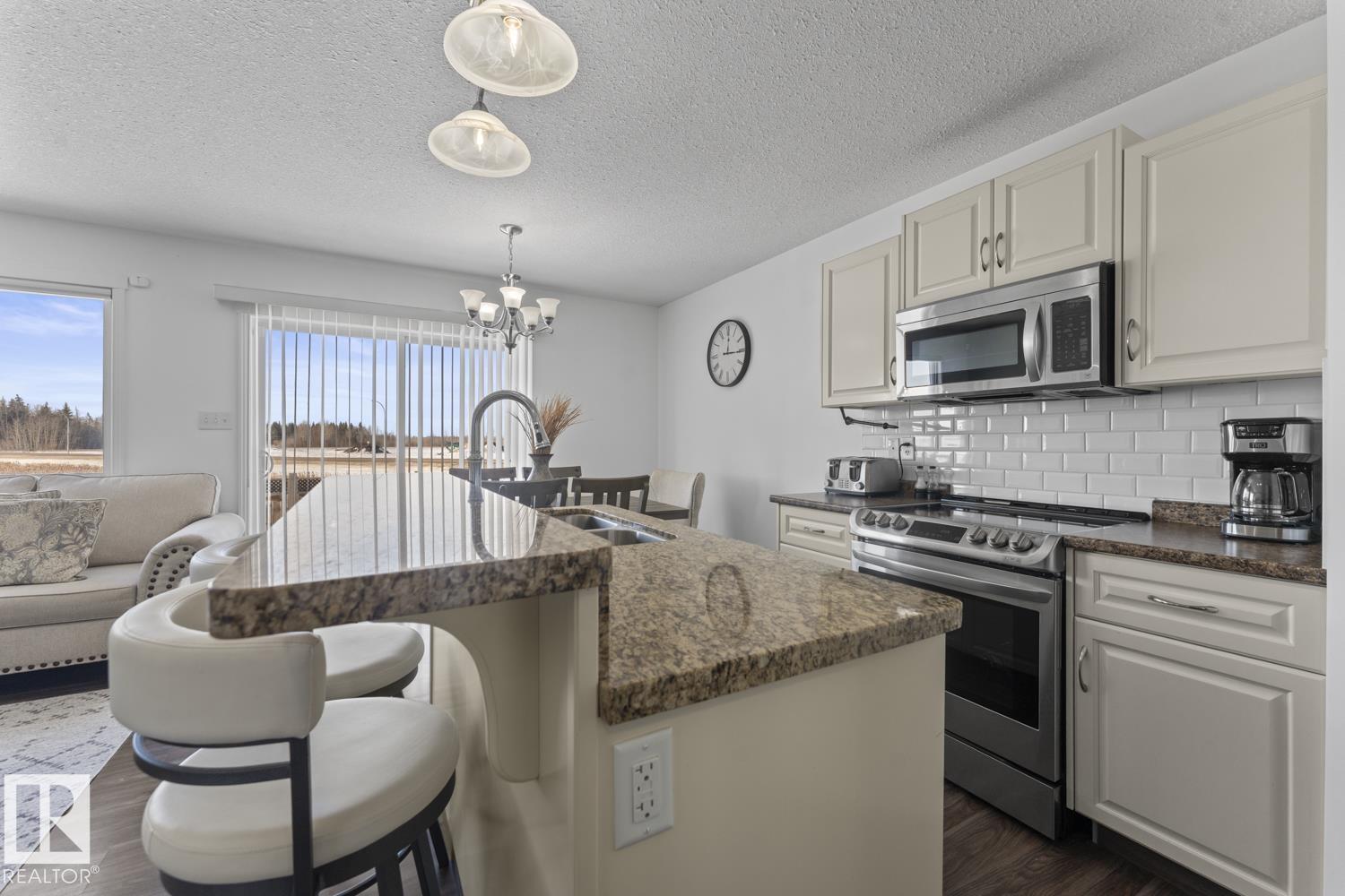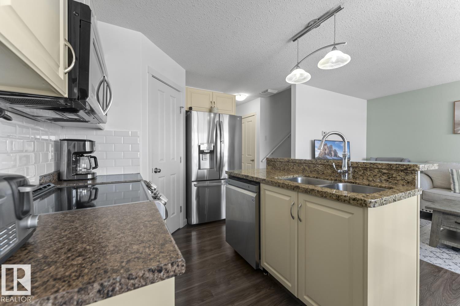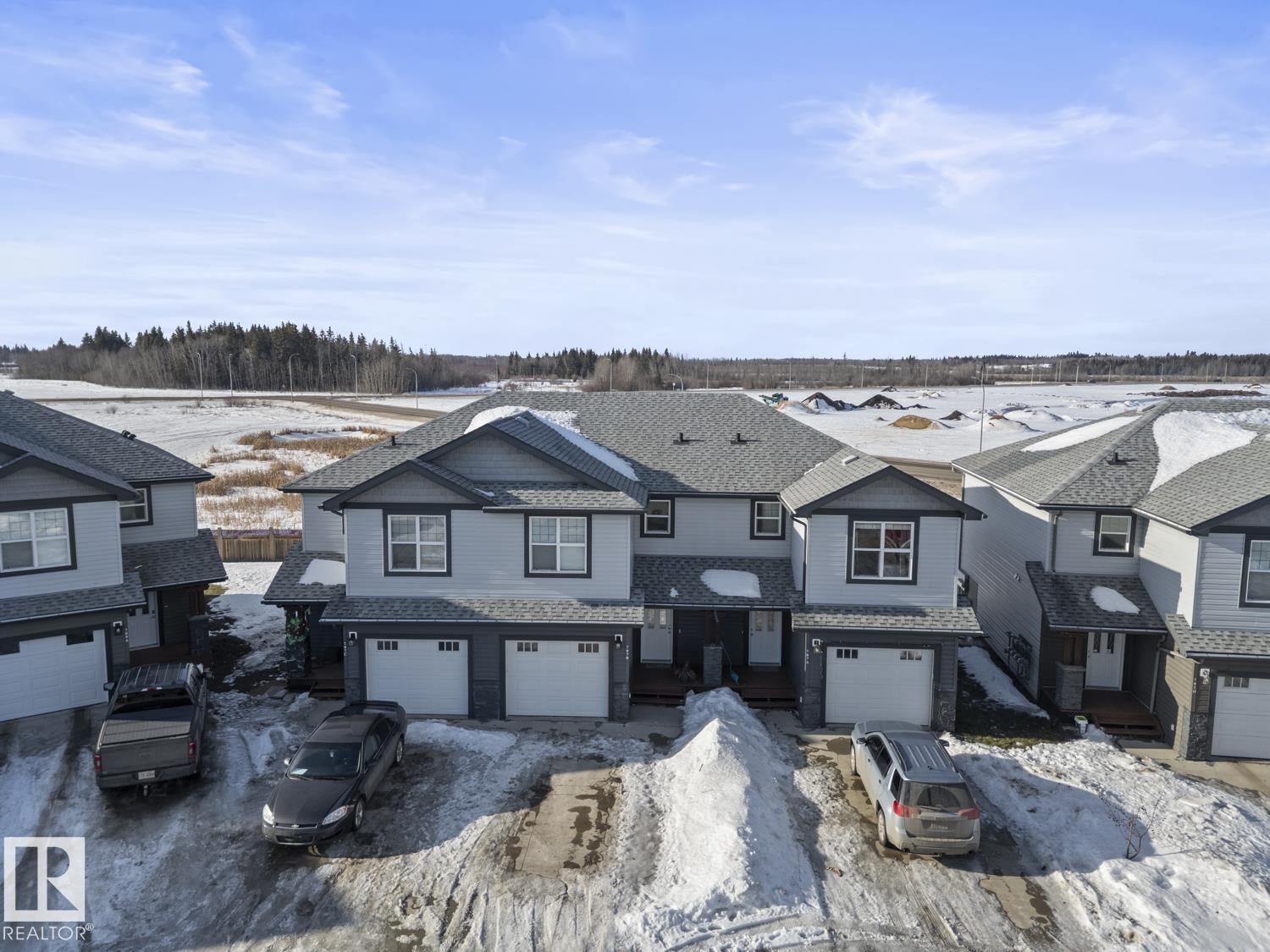 Well-maintained townhome - owner occupied and in excellent condition. No neighbors behind. Located on a low-traffic street, offering peace, privacy, and low-maintenance living. Snow removal, lawn care, and exterior maintenance are handled by the condo association. Seller recently spent over $4,000 on blinds and window coverings. The Upper level features spacious master with walk-in closet and 3-piece ensuite, plus two spacious additional bedrooms, a full 4-piece bath, and convenient laundry. The Main floor offers a bright and open kitchen, dining, and living area with laminate flooring and backyard access. The kitchen includes a granite island, built-in microwave, dishwasher, corner pantry, and upgraded appliances including induction stove. A 2-piece bath, closet, and access to the single attached garage complete this level. The basement is drywalled and ready for your development. Close to the hospital, clinic, pharmacy, and everyday amenities, with Kinosoo Beach just a short drive away. Welcome home!