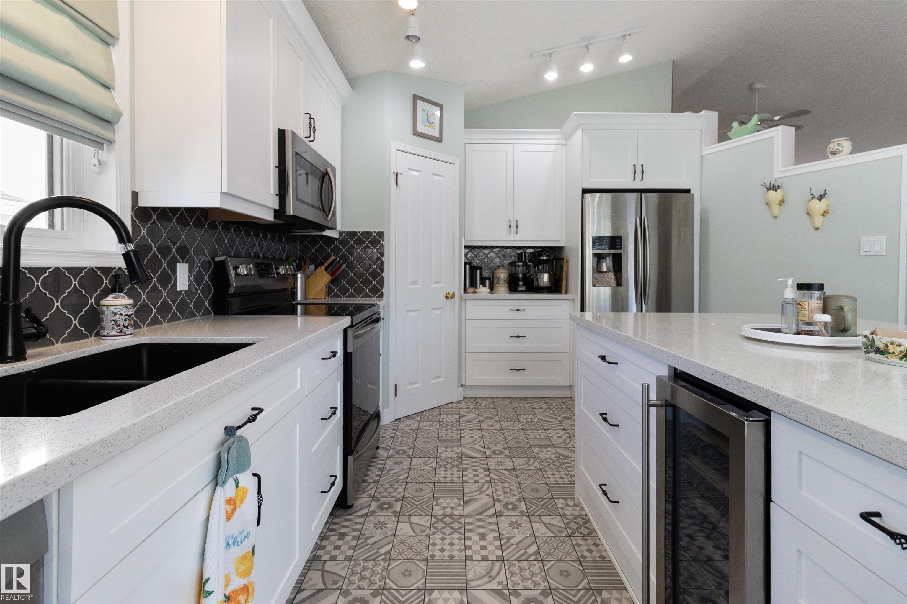 Fantastic bilevel home in KINISKI GARDENS The main floor has vaulted ceilings and beautiful large sunny windows. You will love the modern kitchen, which comes with quartz countertops, SS appliances, a wine fridge, and soft close drawers. The large island is perfect for preparing meals and entertaining, and the dining room overlooks a private backyard. The primary bedroom is on its own level and features a barn door, a WIC, and a bathroom with a deep soaker tub. The professionally finished basement includes a large family room with a gas fireplace, two more bedrooms, and another 4pc bathroom. One of the basement bedrooms features a resistance heater with its own heat control making it a perfect space for yoga or a home gym. A large double garage enters into the front foyer. Stay cool inside with central AC or enjoy the outdoors in a private yard, composite deck, a Suncoast screened enclosure including an underground sprinkler system. Updates include shingles (2016), furnace (2018), hot water tank (2016)