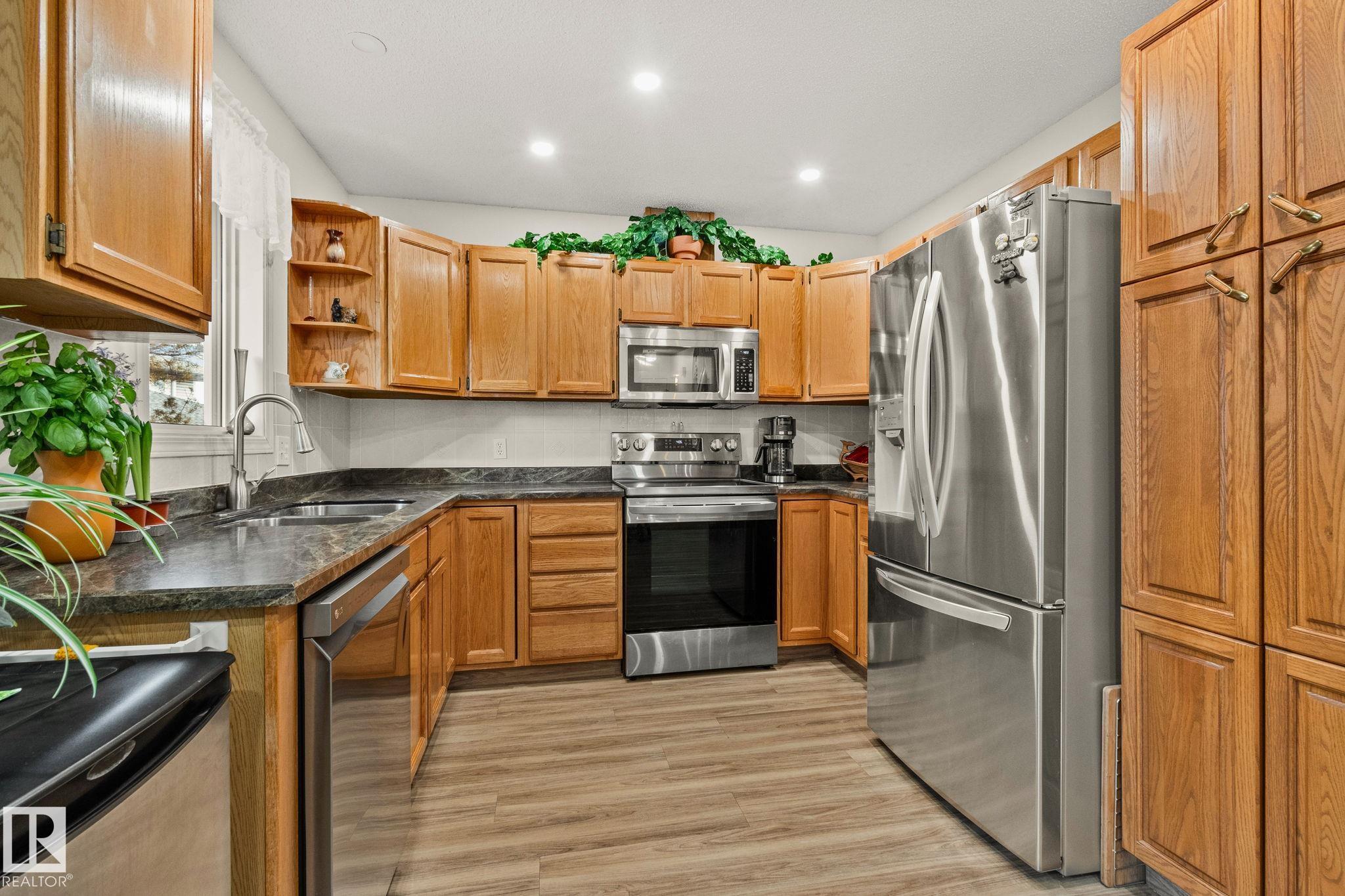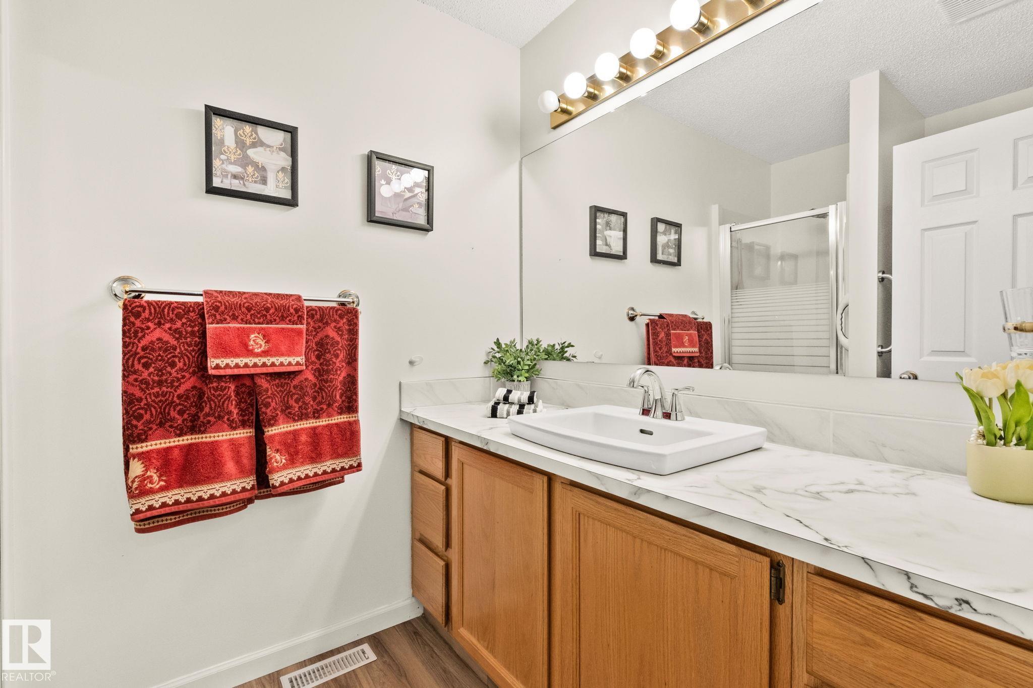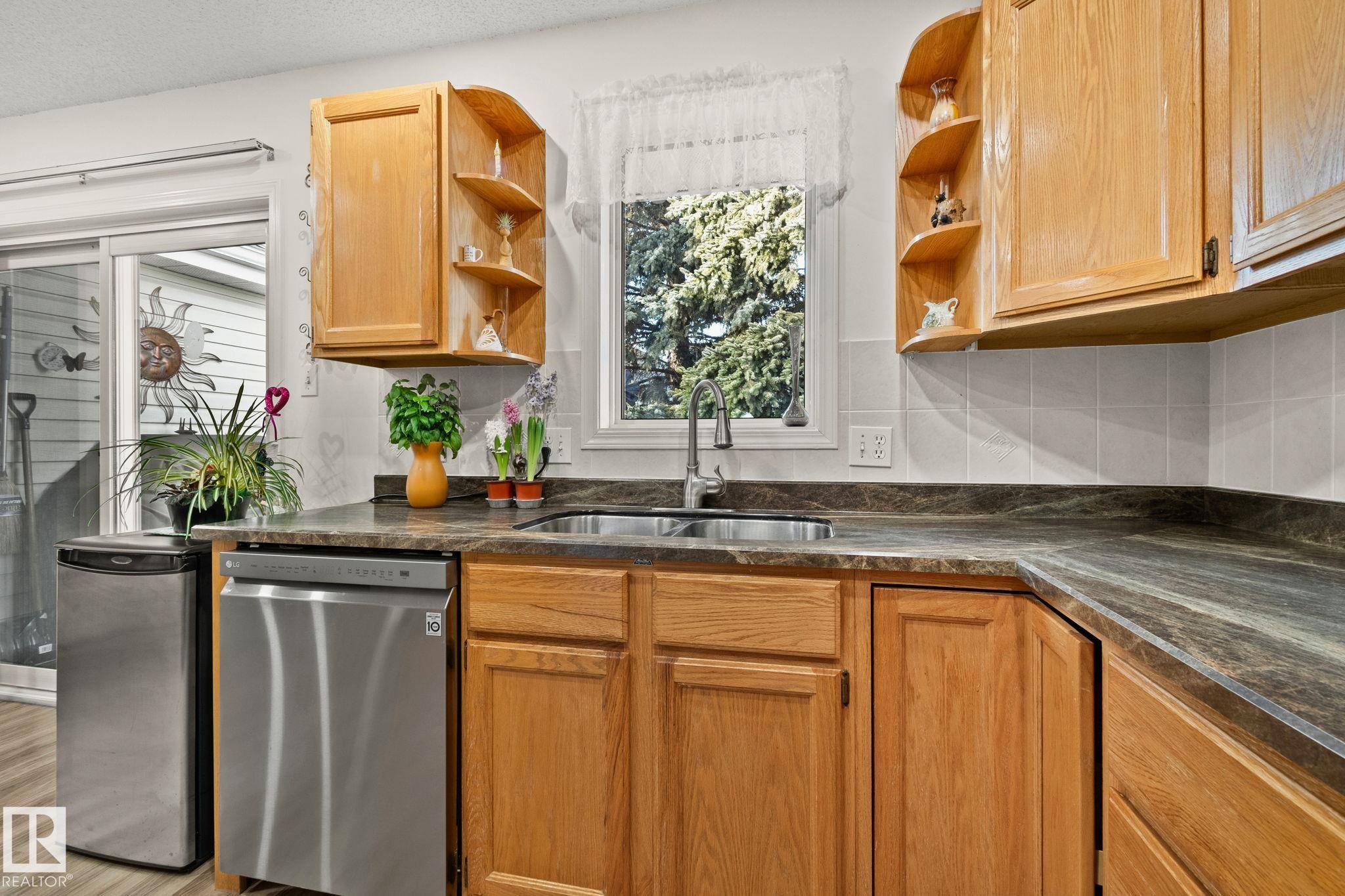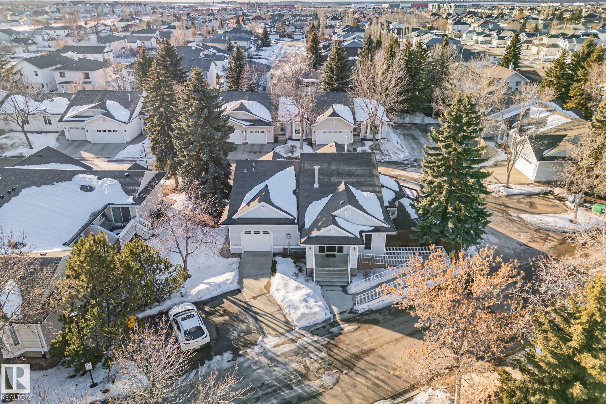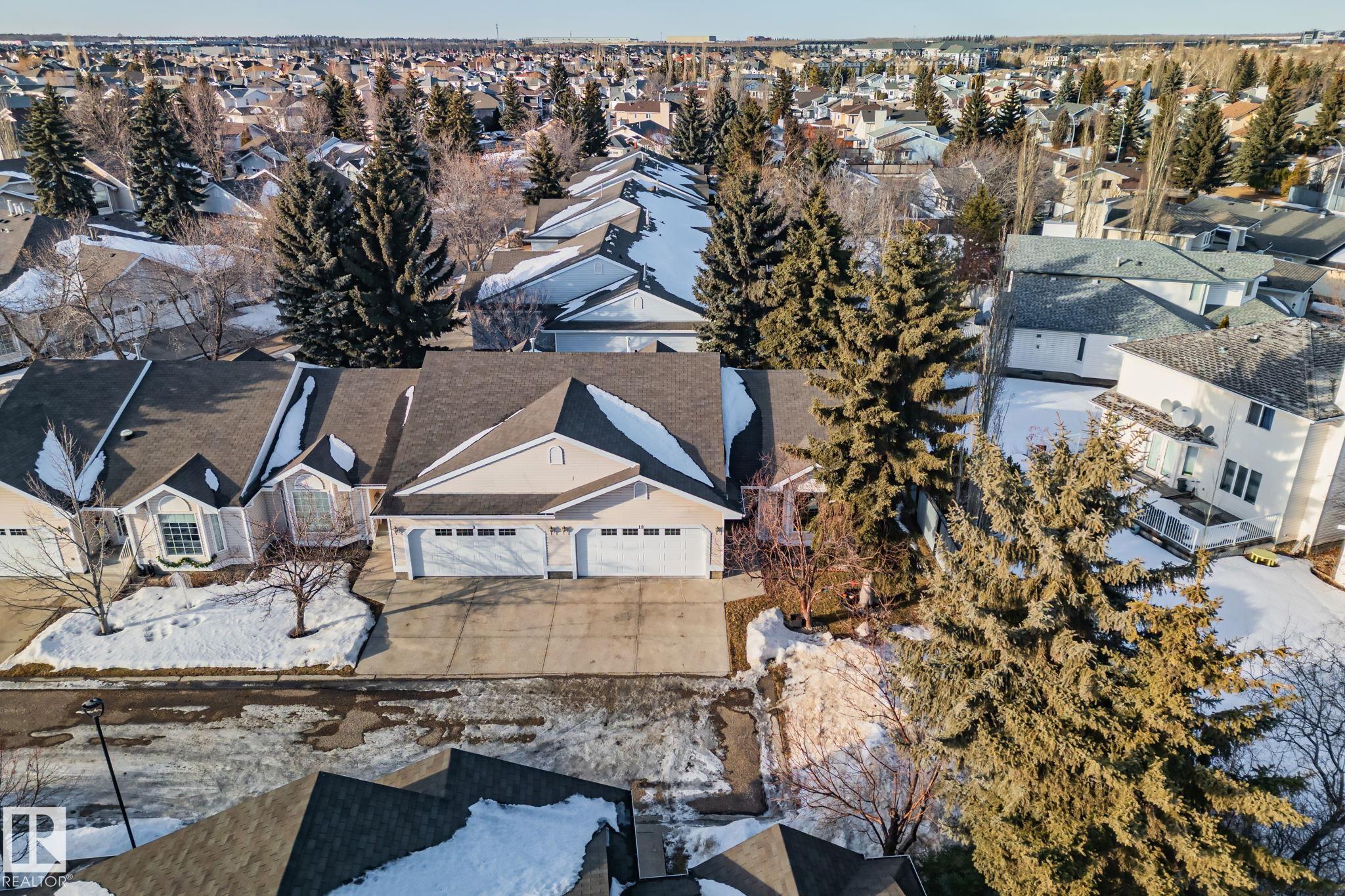 END-UNIT | UPDATED | BUNGALOW | ADULT 50+ Welcome to this bright bungalow townhome in Oxford, Northwest Edmonton, minutes to Albany Market, Skyview Centre, Saint Albert Trail and the Anthony Henday. Set in a peaceful, well-kept community close to shopping, dining and everyday amenities. Enjoy true main-floor living with a primary retreat and ensuite, plus a second bedroom and full bath on the same level. Extra windows and triple-pane glass keep it private, quiet and light-filled. Fresh paint, luxury vinyl plank flooring updated in 2022 and updated appliances keep it move-in ready. The finished basement adds a third bedroom, full bath and flexible recreation space for guests, hobbies or movie nights. Step out to your secluded back deck and enjoy the comfort of a double attached heated garage. Condo fees include water, sewer, garbage, snow removal and lawn care, plus access to a large community clubhouse. Peace of mind with a 2025 sewer scope confirmed clear and fibre optics installed. Flexible possession.