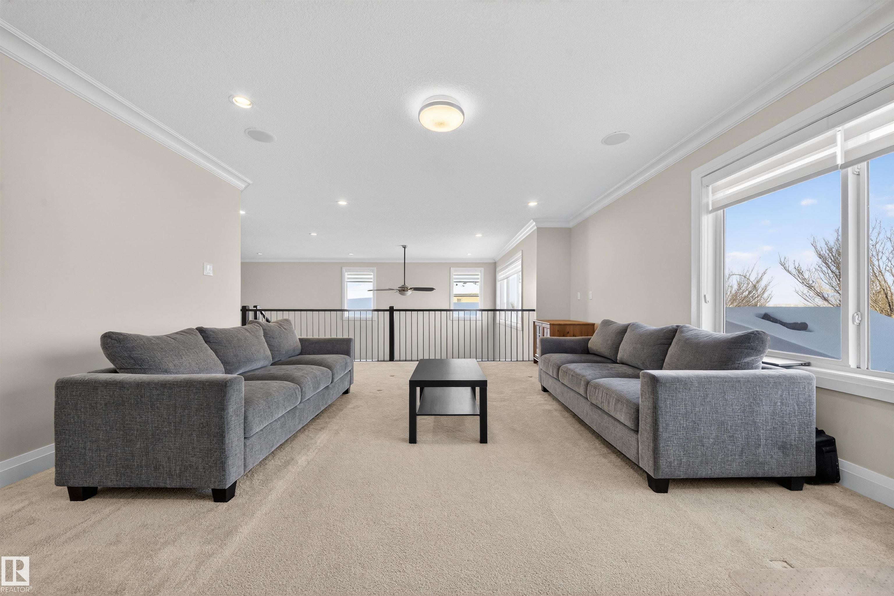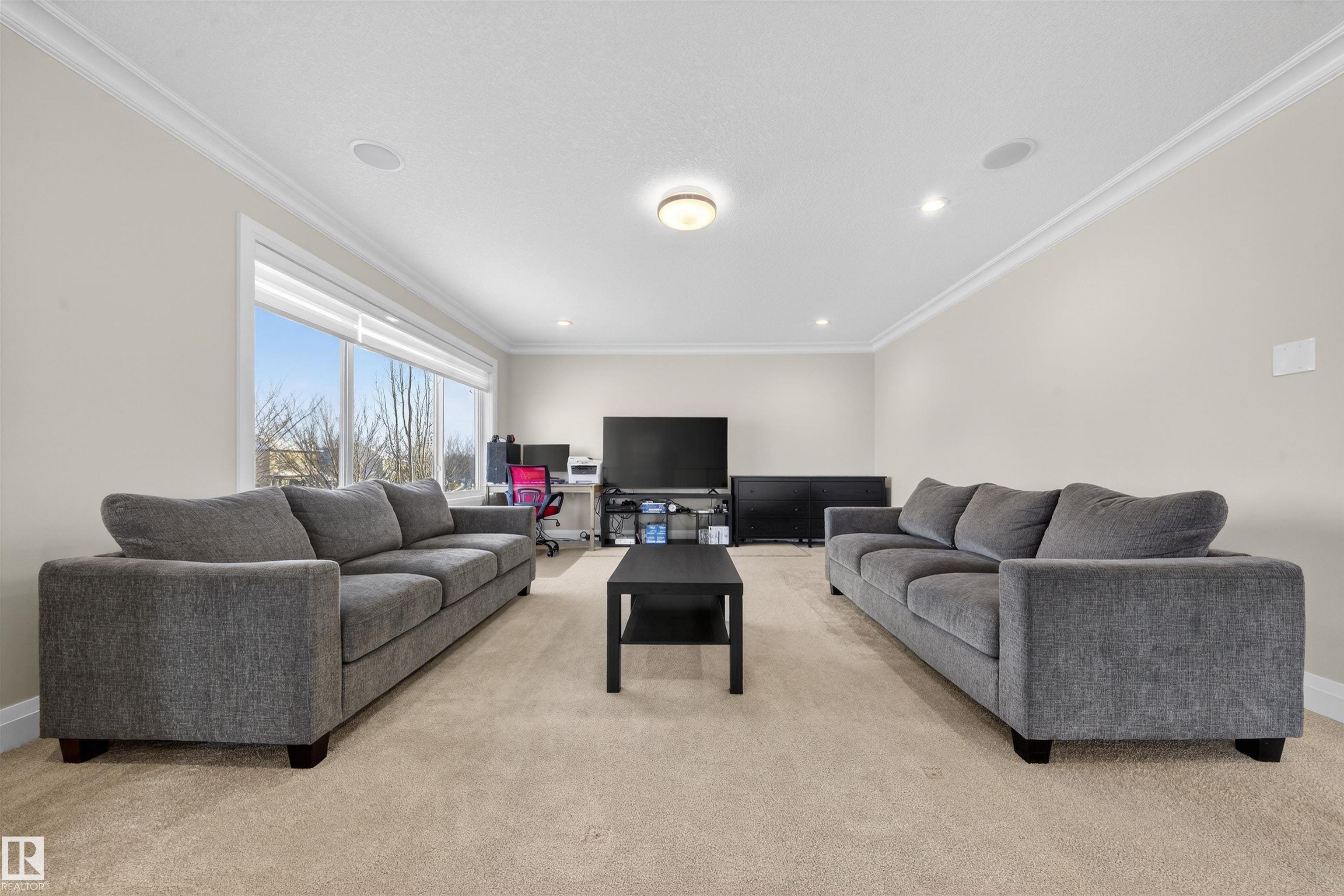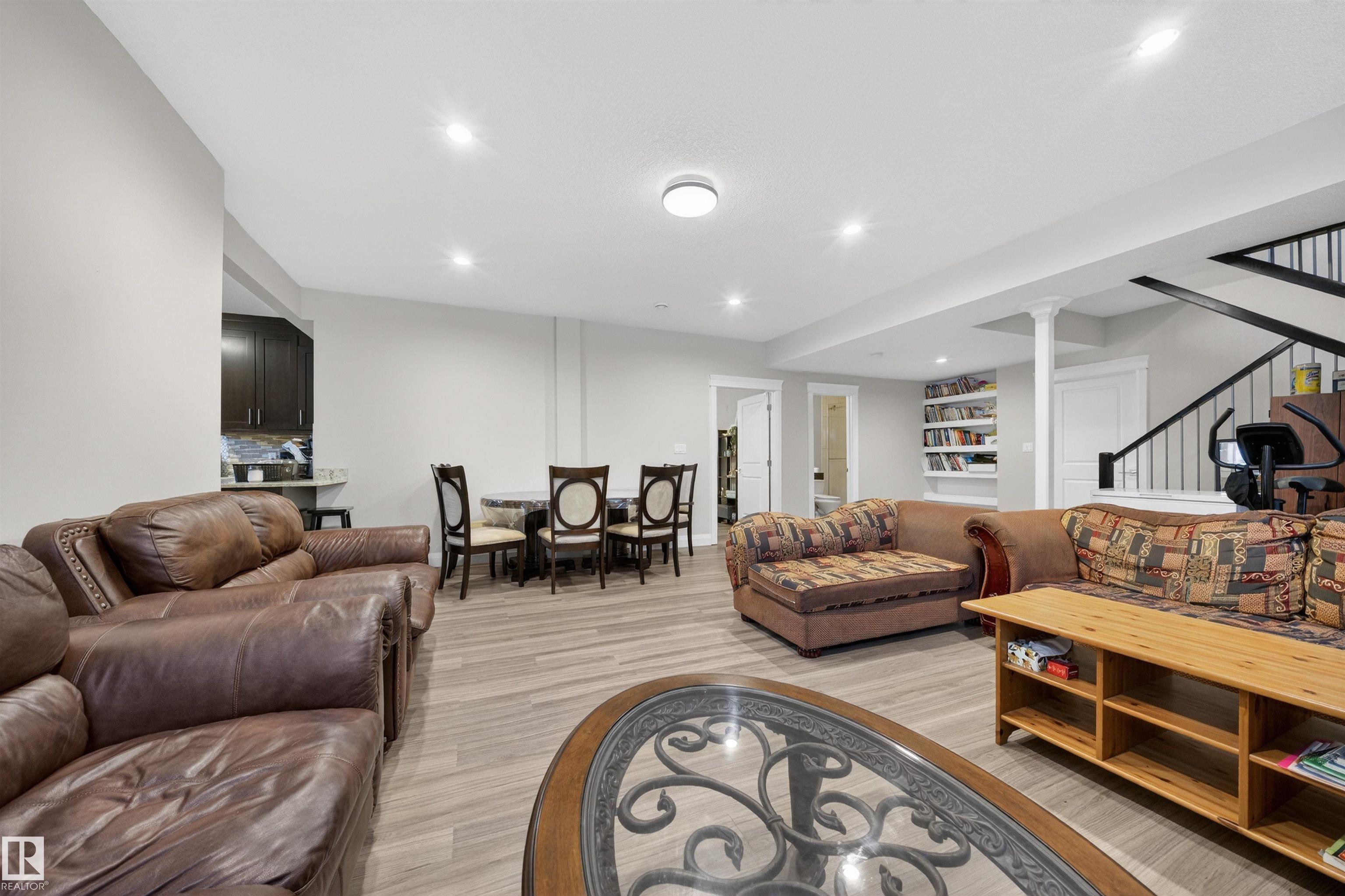 Welcome to this impressive custom-built home offering over 4,200 sqft of total living space, located in the desirable community of Bridgeport. The main floor includes an office & full bathroom, gourmet kitchen showcases granite countertops, ample cabinetry with pantry, large central island & an expansive dining area & an open-concept layout overlooking the living area with open-to-below ceiling & custom staircase. Upstairs offers oversized primary bedroom with a walk-in closet & a spacious ensuite featuring a standing shower, jacuzzi & double-sink vanity, 2 generously sized bedrooms, a full bathroom, a convenient laundry room & a large bonus area perfect for family living. The fully finished basement adds flexibility with a second kitchen, full bath, bedroom & huge rec room. Completing this exceptional home are a stucco exterior, rear deck, & fully landscaped yard, along with an oversized double attached garage featuring a floor drain, 220V outlet, sink, convenient side door, & generous storage.