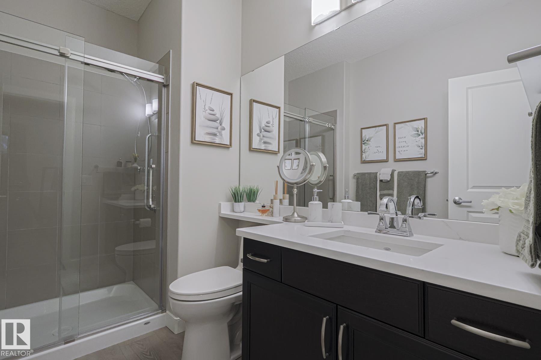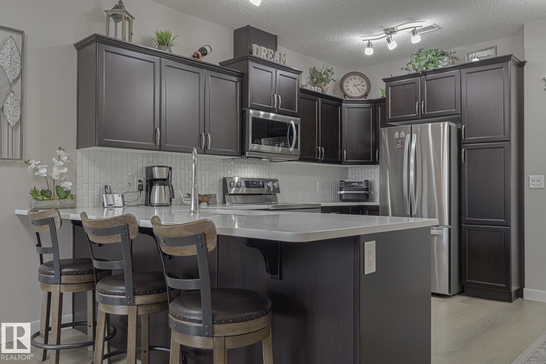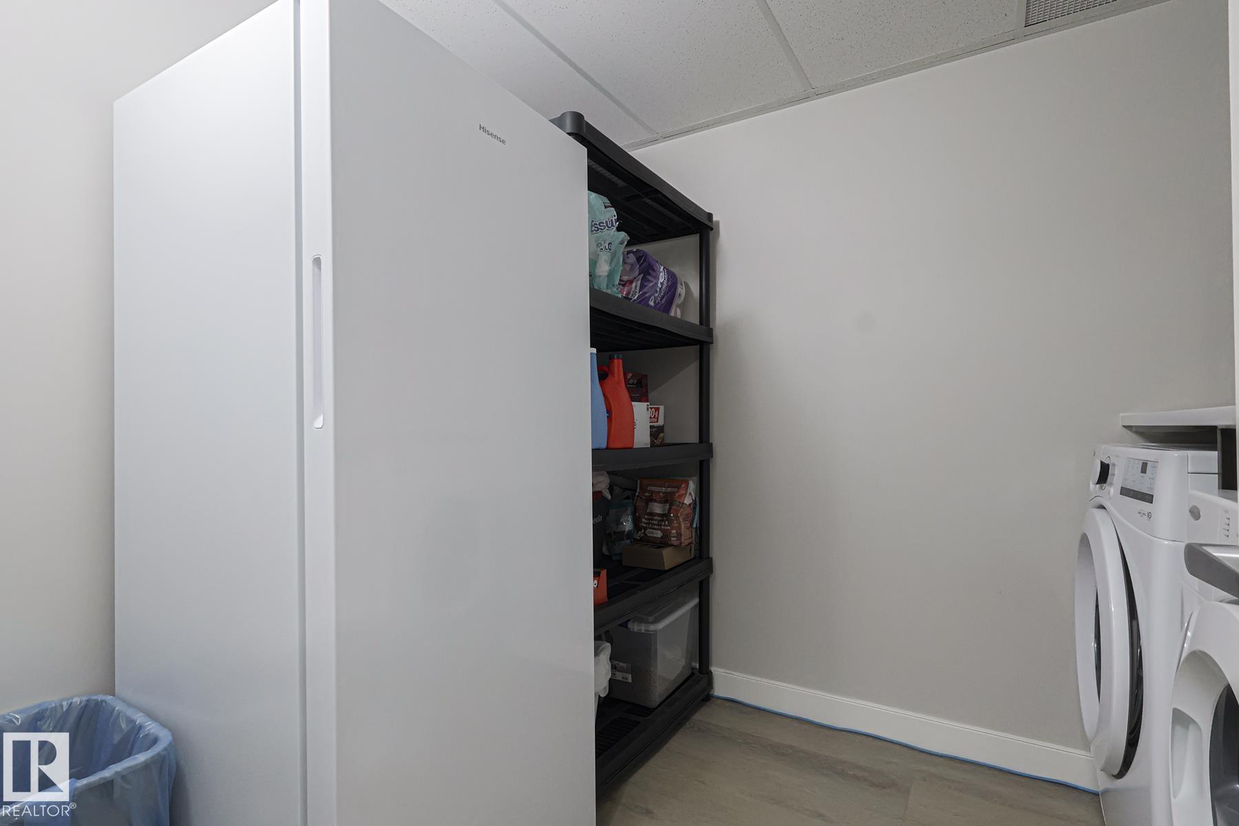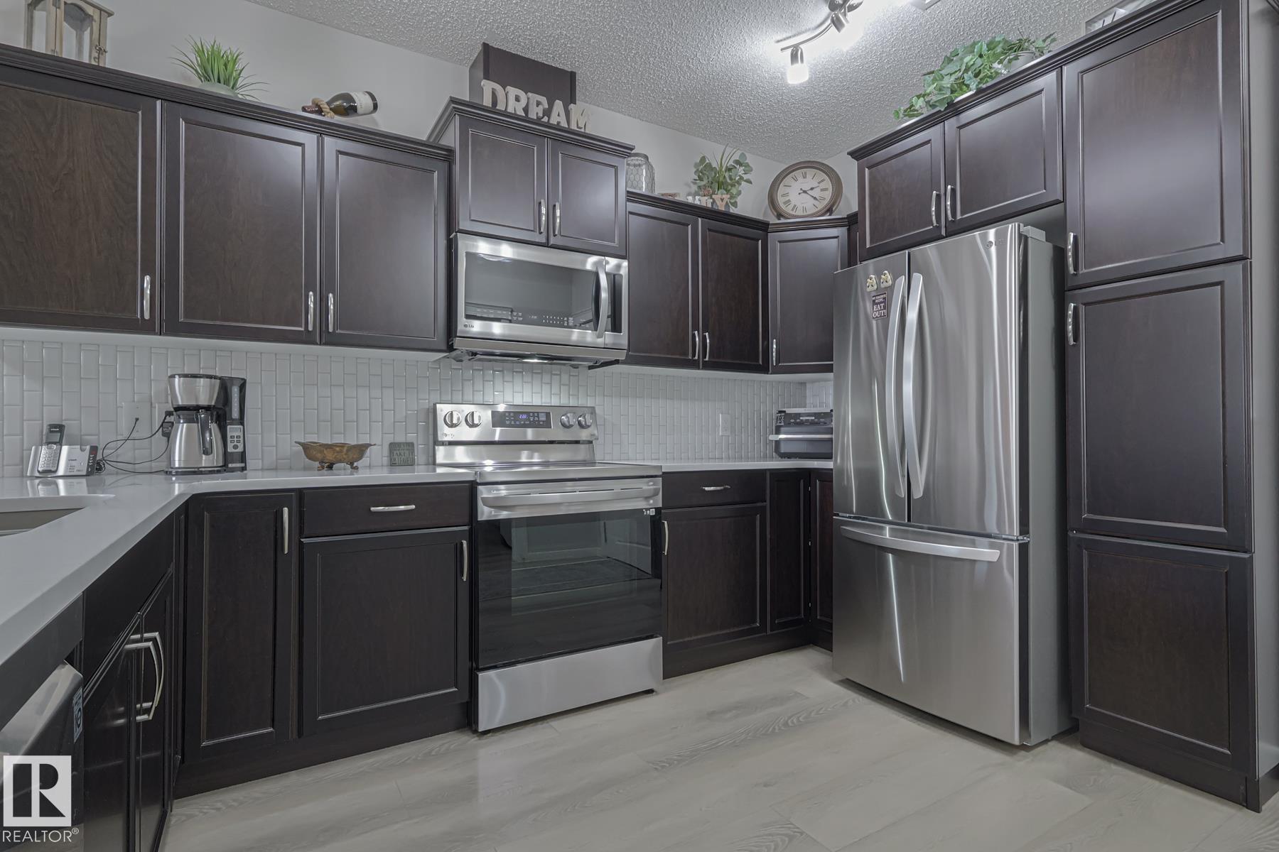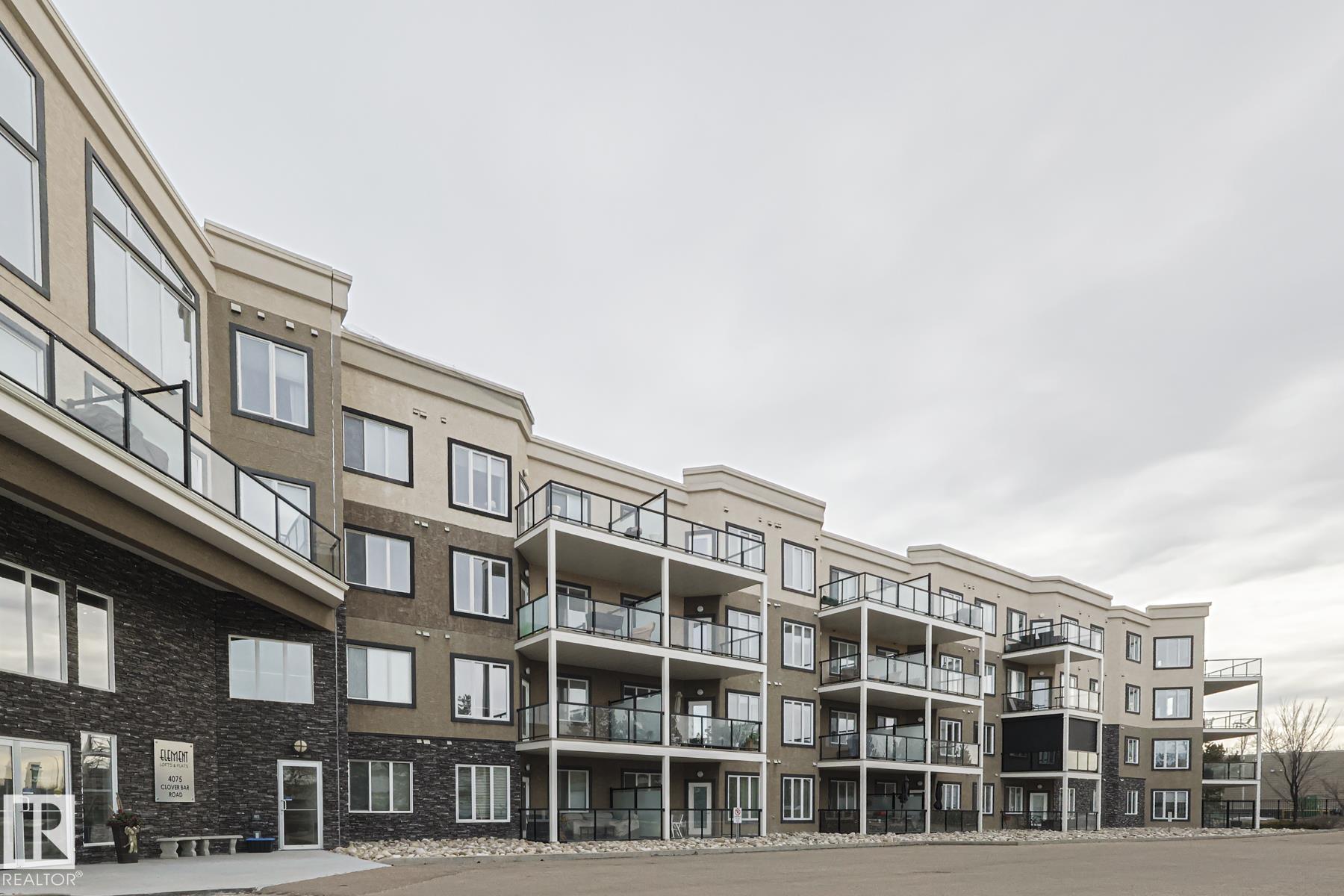Element Lofts & Flats! Elegance abounds in this renovated & immaculate condominium! Offering a bright & open floorplan with peninsula style kitchen, living room, primary bedroom with ensuite & walk-in closet, & bedroom #2 (conveniently located next to the main bathroom). In-suite laundry & storage; 2 titled parking stalls (1 underground stall w/storage cage, 1 surface stall). Renovations within the last 3 years include: luxury vinyl plank throughout, kitchen with matte walnut cabinets (refinished), quartz counters, backsplash & stainless steel appliances (3 yrs old). Bathroom updates include a glass shower door in the ensuite, quartz vanity tops w/undermount basins, new toilets & upgraded lighting. In-suite laundry offers plenty of space and includes a quartz countertop, front load washing machine (1 year old), and dryer. A HIGHLIGHT! A BRAND NEW RETRACTABLE POWER SCREEN SYSTEM on balcony, offering privacy and sun & wind protection - a $12,000.00 upgrade. The most walkable complex in Sherwood Park!