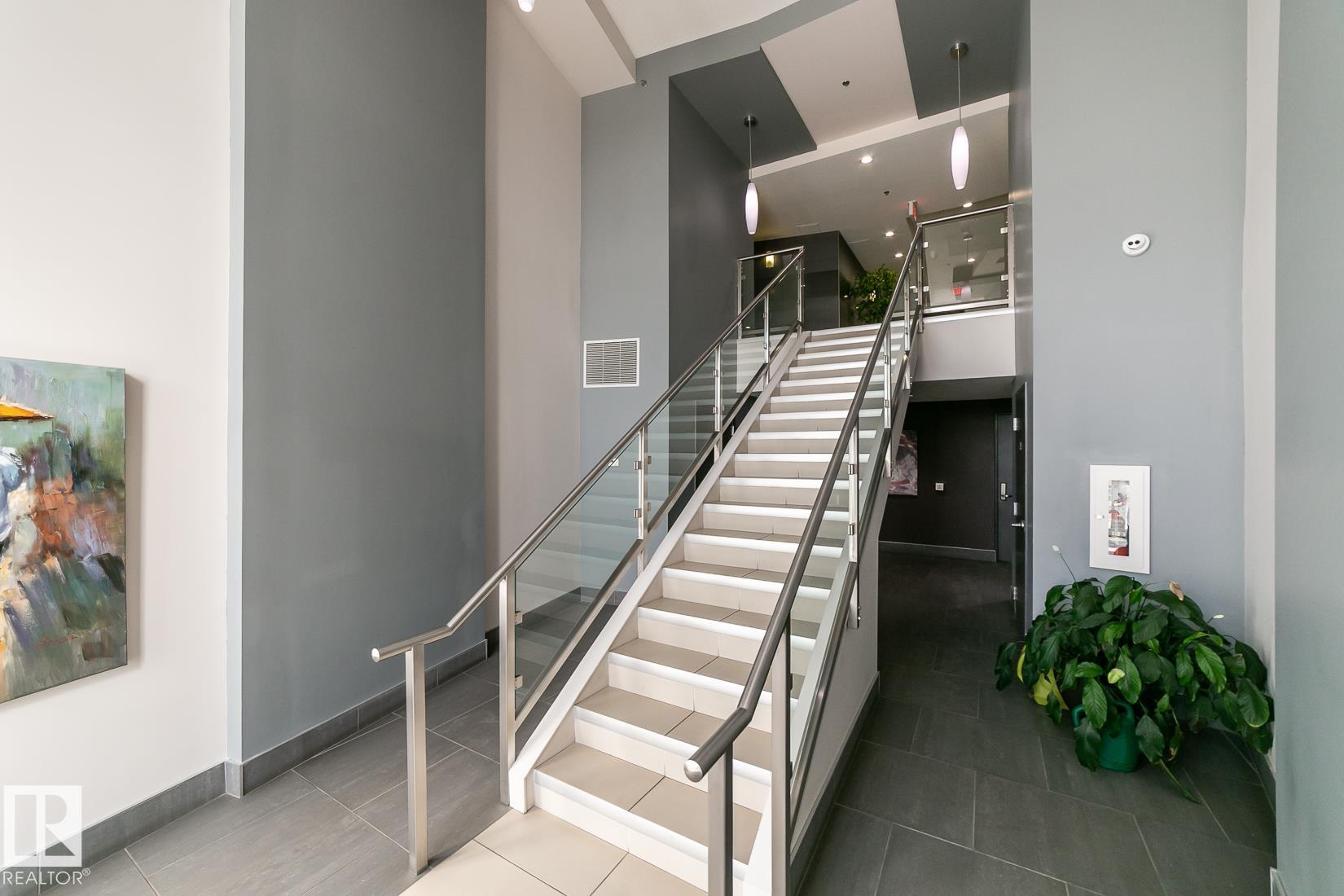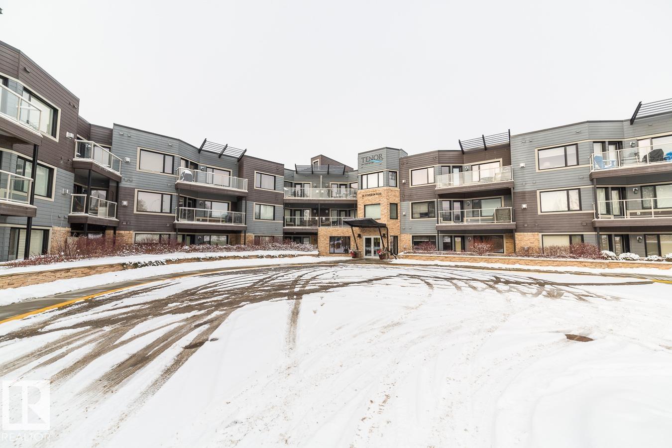 Experience elevated riverbank living at the prestigious Tenor On The River! Perfectly positioned along the serene banks of the Sturgeon River in one of St. Albert?s most sought-after addresses, this exquisite condo offers over 1,000 sq ft of refined luxury. Soaring 9? ceilings, gleaming hardwood floors, elegant ceramic tile & expansive picture windows create a light-filled, sophisticated ambiance. The chef-inspired kitchen impresses with abundant counter space, stainless steel appliances and seamless flow for entertaining. Generous 2nd bdrm/Den with French doors & a cozy gas fireplace adds charm and versatility. The spacious primary suite features a walk-in closet and a spa-like four-piece bath with linen storage. Enjoy in suite laundry, central A/C and a private deck with gas hookup. Concrete and steel construction, grand foyer, state-of-the-art gym, social lounge, titled underground parking, storage, and tons of underground visitor parking complete this exceptional offering. Luxury living, redefined!
