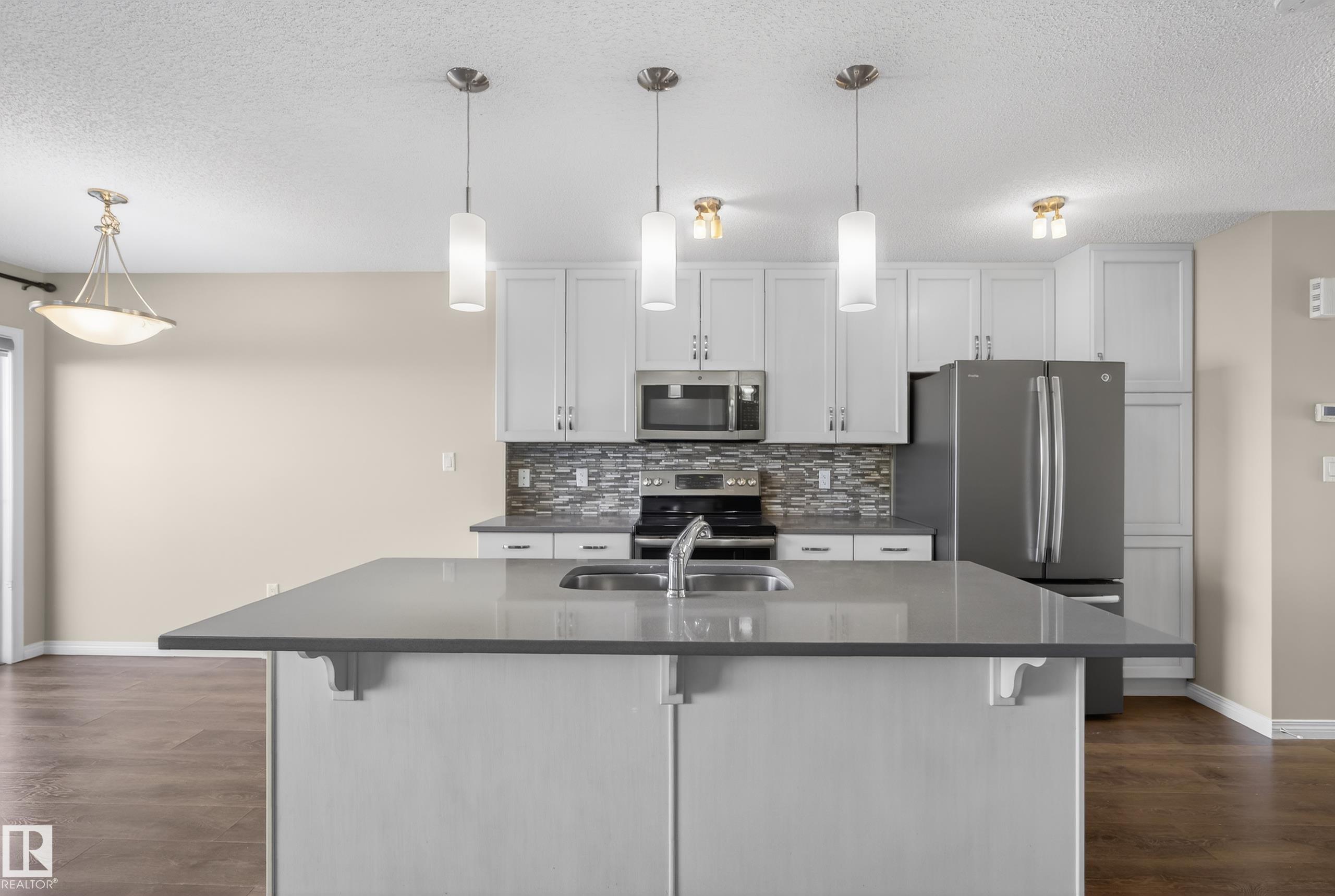 RARE DOUBLE PRIMARY + DOUBLE ENSUITE DUPLEX with BONUS ROOM and UPPER LAUNDRY. This thoughtfully designed home offers TWO OVERSIZED PRIMARY SUITES, each featuring its own private ENSUITE and WALK-IN CLOSET. The upper level also includes a LARGE BONUS ROOM and convenient LAUNDRY, creating an ideal layout for young families, roommates seeking privacy, or buyers wanting flexible living space. The unique floor plan provides EXTRA-LARGE BEDROOMS, generous storage, and excellent functionality throughout. Enjoy a spacious driveway, garage, and an OVERSIZED DECK with a fully fenced BACKYARD perfect for entertaining, relaxing, or kids and pets. Eye-catching curb appeal welcomes you with a landscaped front yard and mature shrubs. Inside, the central kitchen is open and inviting with UPGRADED GE PROFILE APPLIANCES, QUARTZ COUNTERTOPS, and off-white CEILING-HEIGHT CABINETRY, delivering a clean, modern, and polished finish.