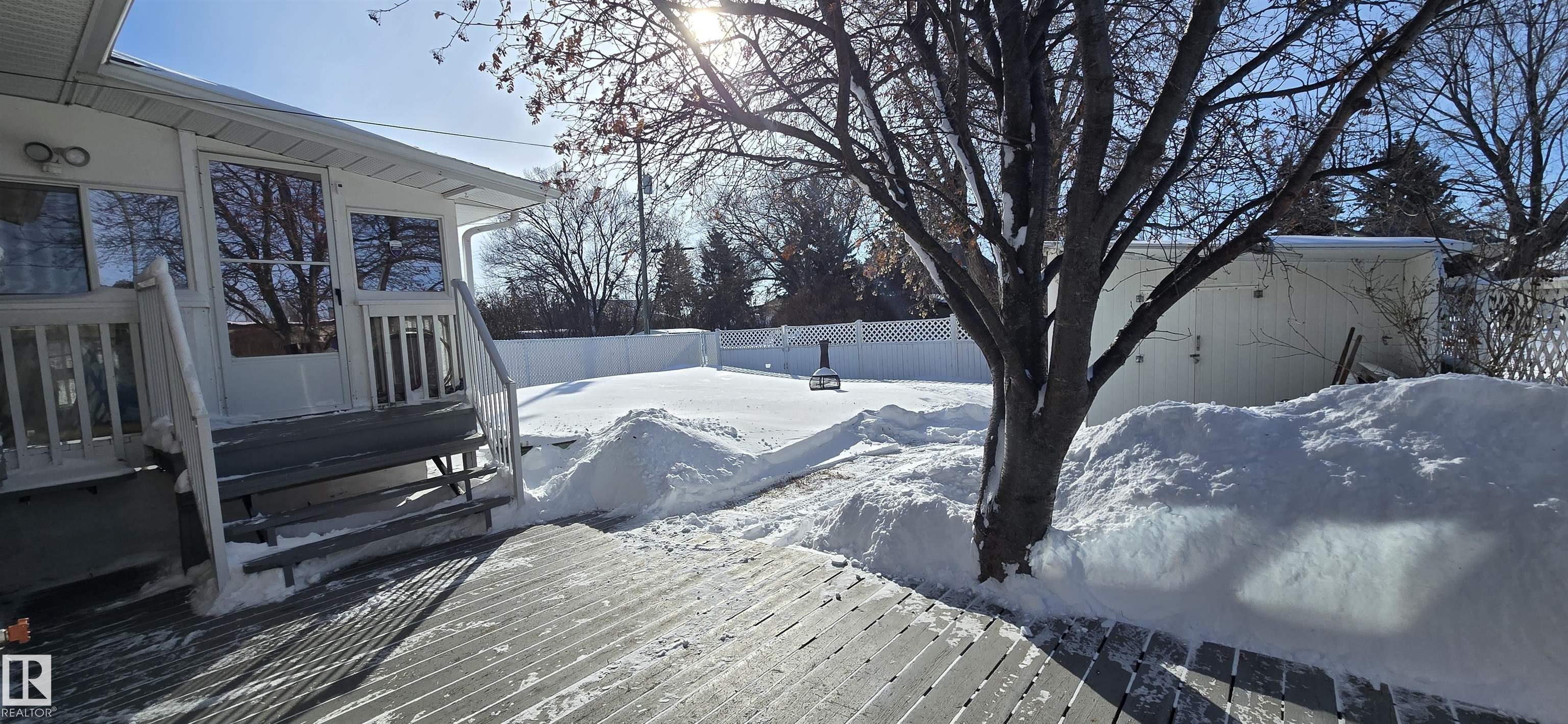 This inviting family bungalow is move in ready with beautiful gleaming hardwood and ceramic tile flooring throughout the main level, sleek kitchen countertops, and central A/C for year-round comfort. The bright open-concept main floor features 3 bedrooms plus a versatile island kitchen, a luxurious main bathroom with jetted tub, and a charming enclosed glass sunroom extending over the deck?perfect for relaxing while enjoying views of the mature, landscaped yard. The fully developed basement adds excellent living space: 2 additional bedrooms, a 4-piece bathroom, a flexible den/craft room, and a generous family room highlighted by a cozy gas fireplace. Outside, you'll appreciate the insulated and heated double att. garage, shed, plus convenient back-lane access for easy RV parking. Located steps away from school, daycare and amenities. Down the road from 18 hole golf course- Whitetail Crossing. Mundare is perfectly positioned just off Highway 16 with easy commuting distance to Vegreville and Edmonton area.