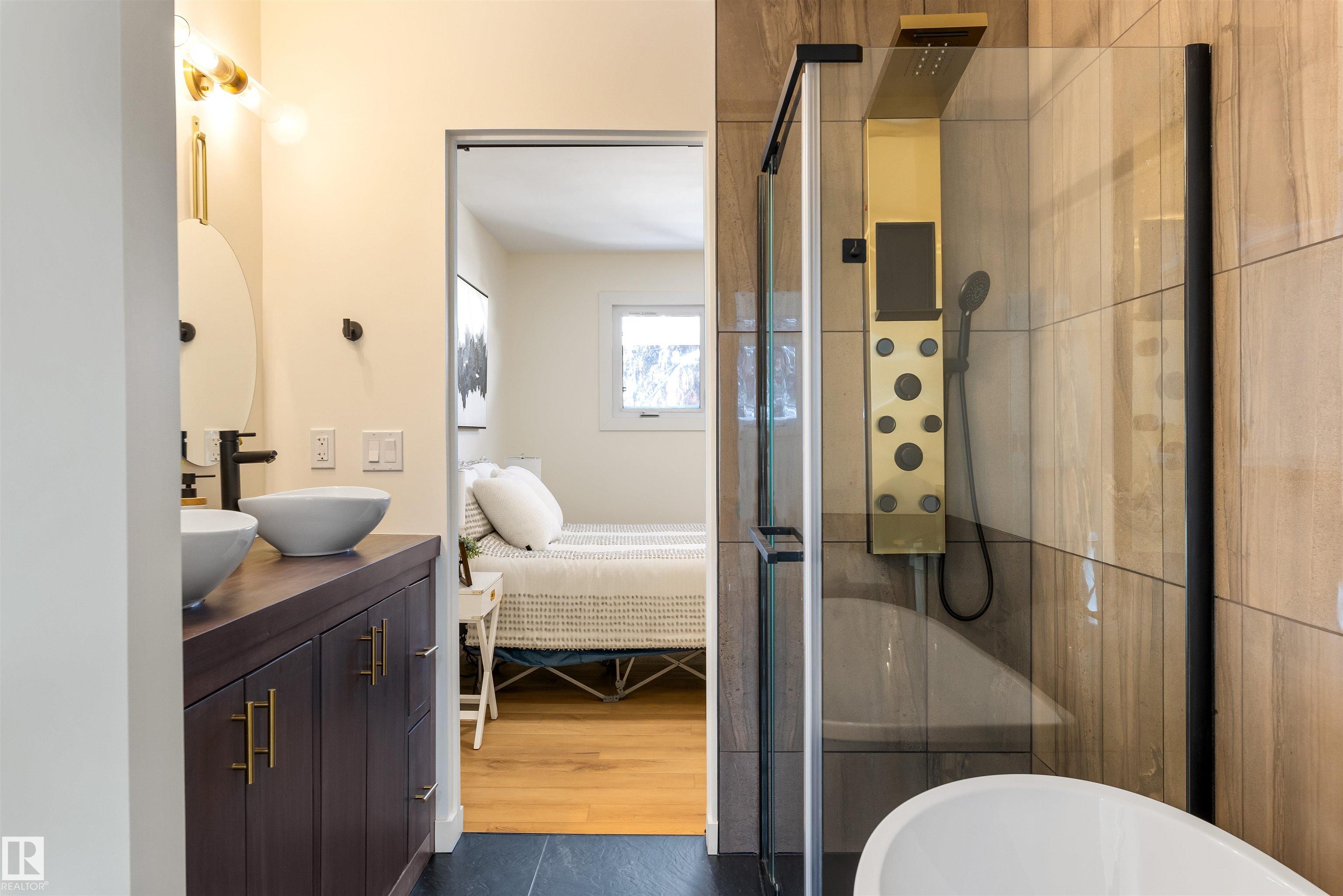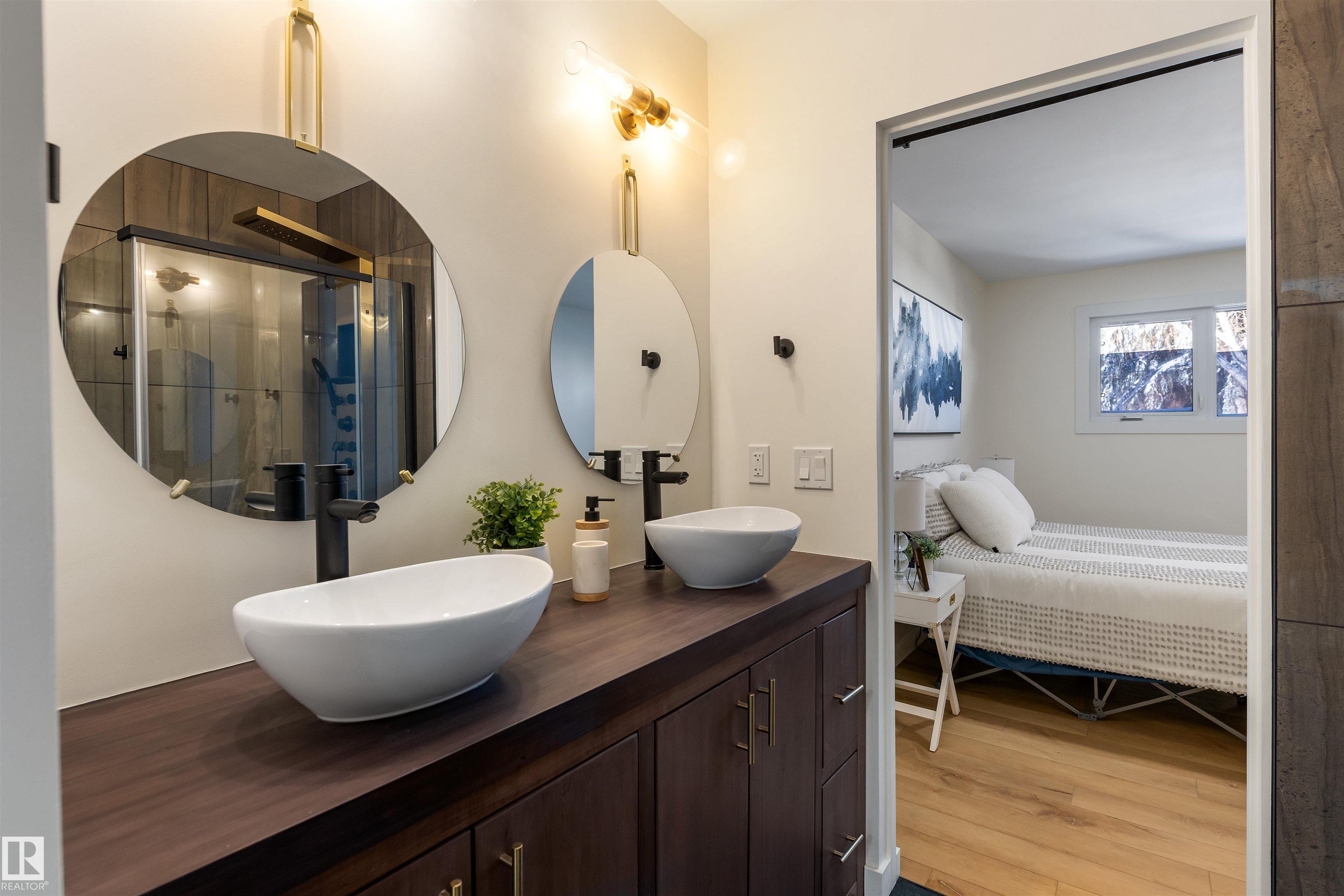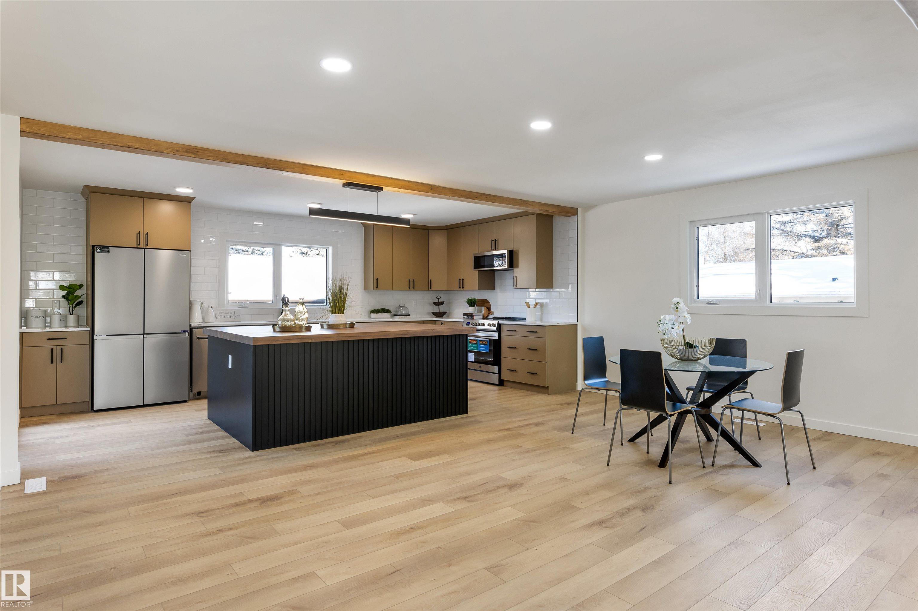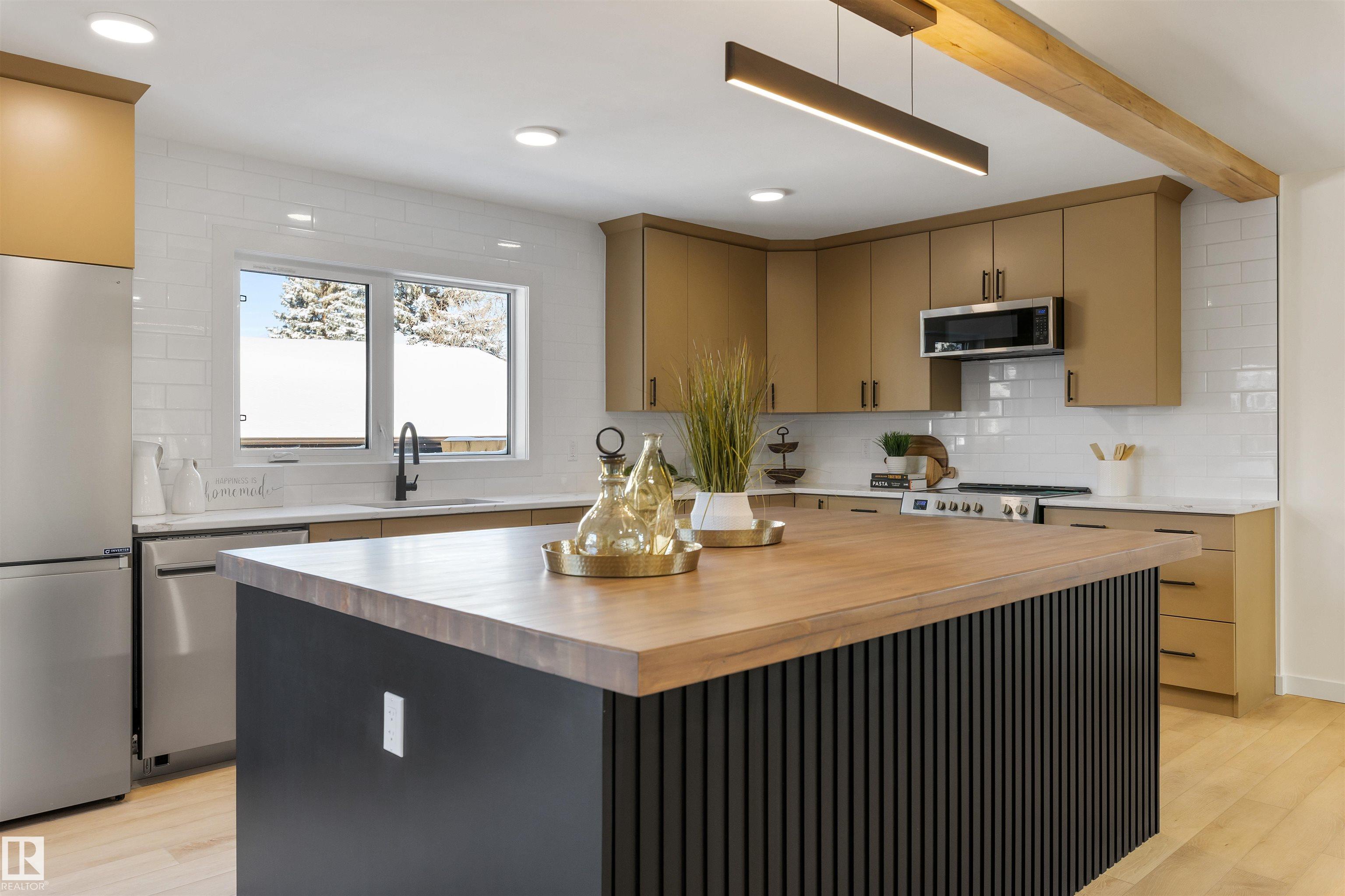 Completely RENOVATED from top to bottom, this beautifully updated bilevel offers over 1400 sqft of thoughtfully designed living space plus a FULLY FINISHED basement. The heart of the home is the custom kitchen featuring quartz countertops, a walk-in pantry, built-in coffee station and an extra large island with a hand carved wooden countertop, all flowing seamlessly into the open concept dining and living area with a gorgeous fireplace and an abundance of natural light through oversized windows. The main floor includes two bedrooms and two full baths, highlighted by a luxurious primary suite with a spa-inspired ensuite and walk-in closet. Downstairs you?ll find a spacious rec room with bar area, two additional bedrooms, full bath and laundry. New vinyl plank flooring, upgraded electrical, new deck and an oversized double detached garage complete this move-in ready home?just unpack and enjoy.