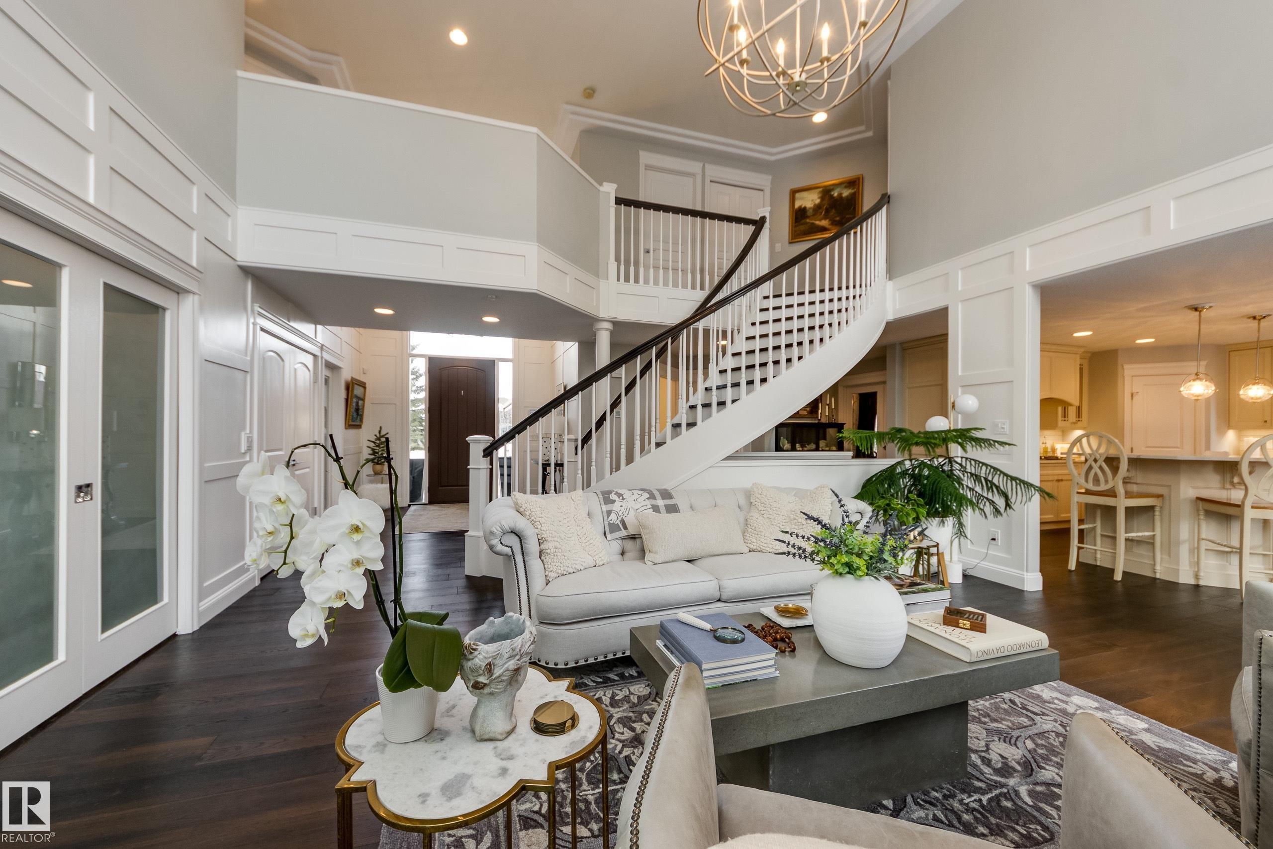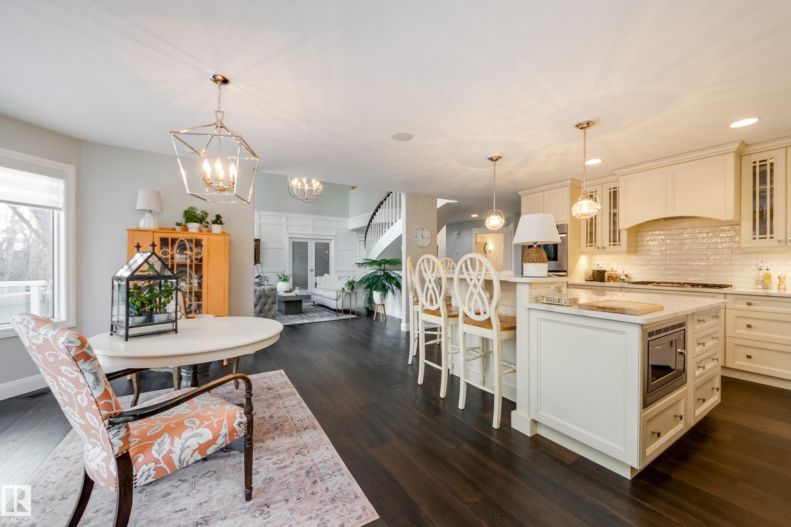 Welcome to this impeccable 3036 sq ft renovated 2-storey in prestigious Wedgewood Heights! Perfectly positioned on a quiet cul-de-sac and backing a serene ravine trail, this home offers elegance and quality. Stunning engineered hardwood and a showstopping staircase invoke a grand impression. A bright den with bay windows creates the ideal home office, while board and batten accents highlight the breathtaking open-to-above living room with expansive windows and cozy fireplace. The kitchen features a large island, quality cabinetry, farmhouse sink, quartz counters, and an east-facing breakfast nook. Step outside to a Trex deck overlooking the beautiful yard. A formal dining room, main flr laundry and powder room complete this level. Upstairs offers a luxurious primary retreat with 5-piece ensuite, w/i closet and private balcony, plus two bedrooms and a 4-piece bath. The bsmt includes a rec room, gym, two bedrooms, and a 3-piece bath with sauna. All just steps from park and ravine trail. Amazing opportunity!