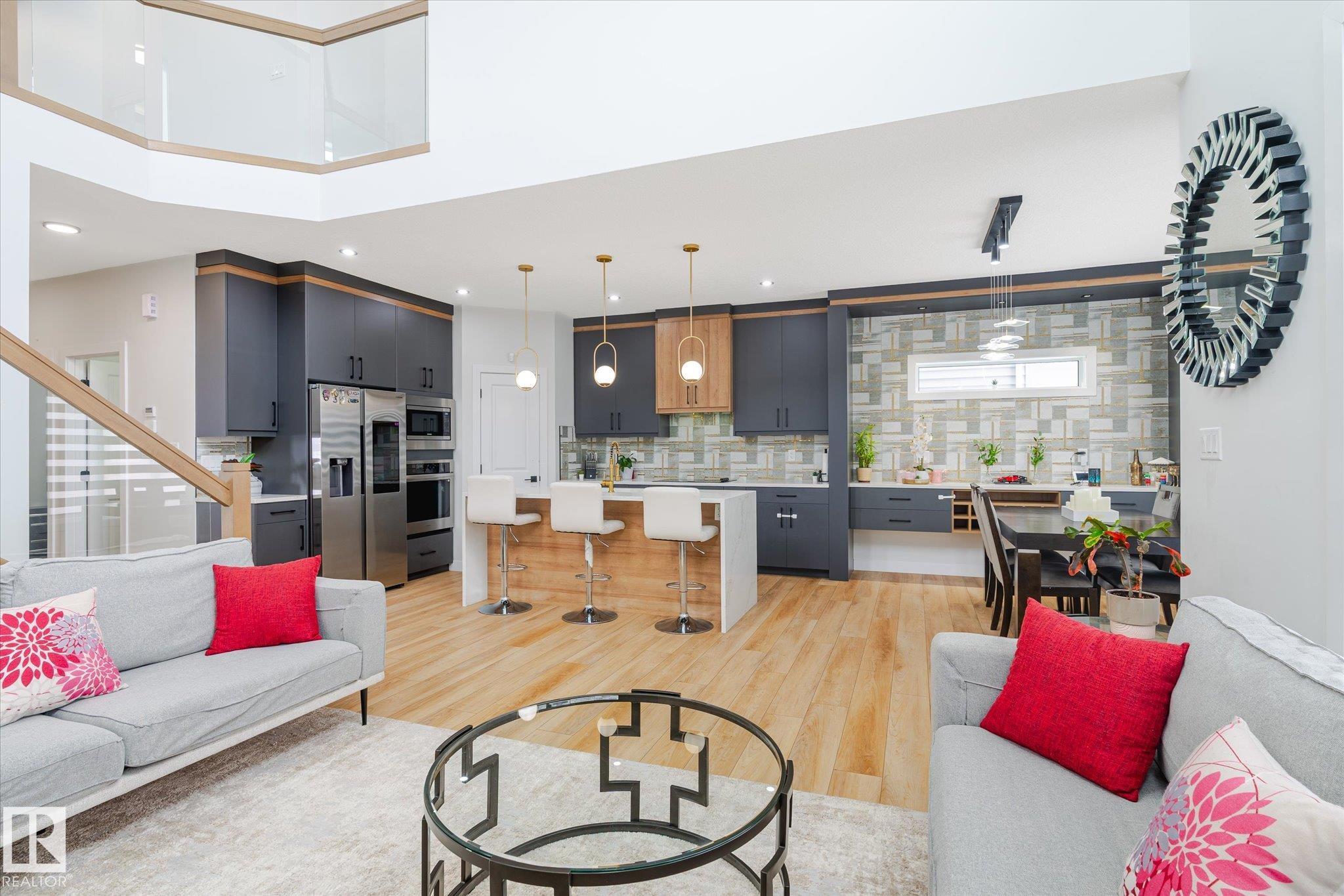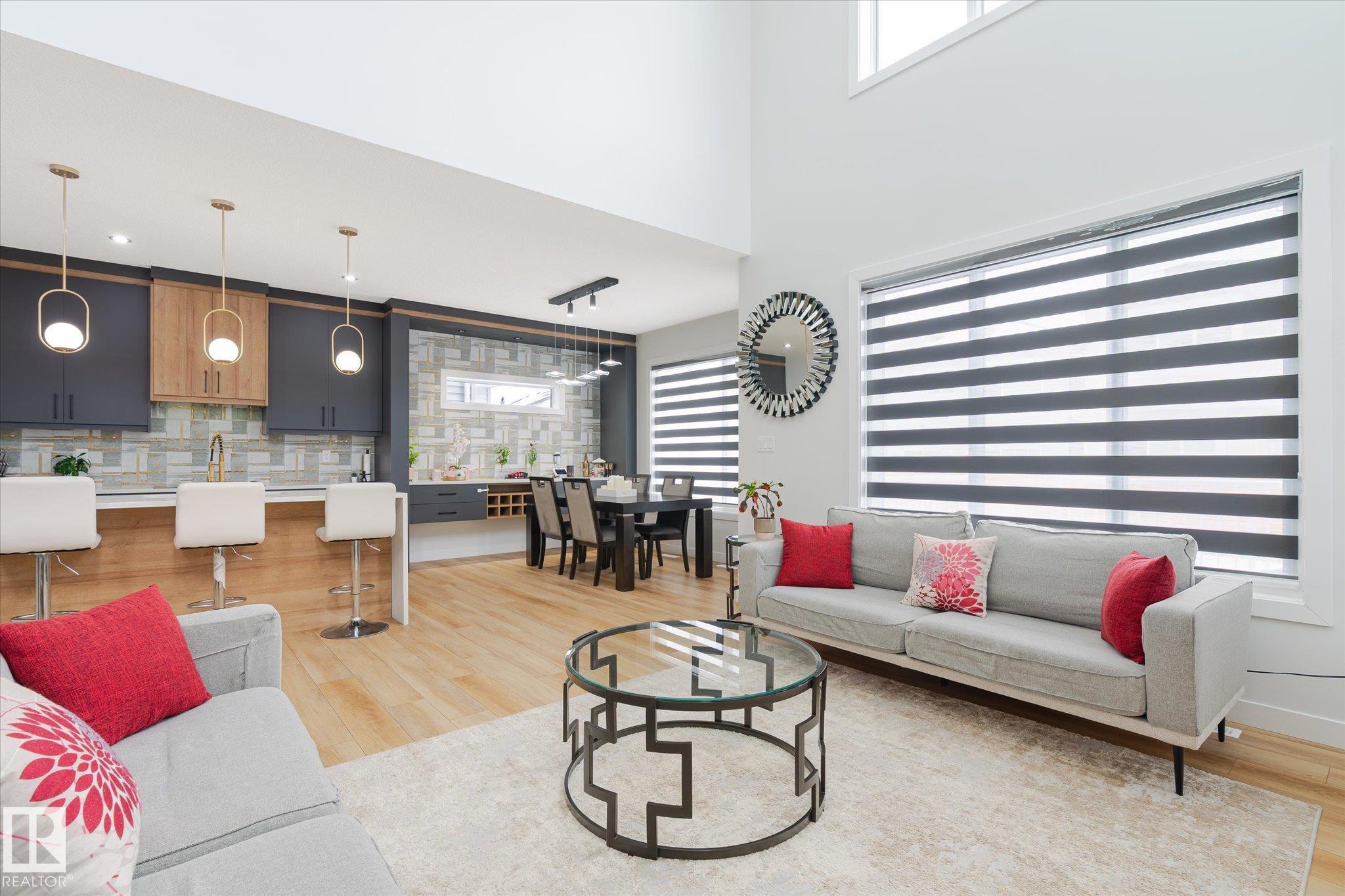 Soaring ceilings that are open to above showcase the space of this spectacular brand new home is situated on a spacious corner lot. 4 bedroom home with one of the bedrooms on the main floor steps away from a 3 piece bathroom, great setup for extended families or a home office. The abundance of windows equipped with motorized blinds bathes this home with natural light. A gourmet chef's kitchen is nicely equipped with upgraded Stainless steel appliances and a pantry. Upstairs you will find a spacious bonus, a large master bedroom suite with an ensuite and soaker tub to relax in. Your laundry room, plus 2 additional bedrooms and a bathroom rounds out this level. The basement is unspoiled and features a separate entry. Lots of room to build additional bedrooms. The yard is fenced on 2 sides and already landscaped. The community of Robinson is great for young families, features include a toboggan hill, playground, community rink & lots of natural, outdoor space. Anchored by a lake with walking trails.