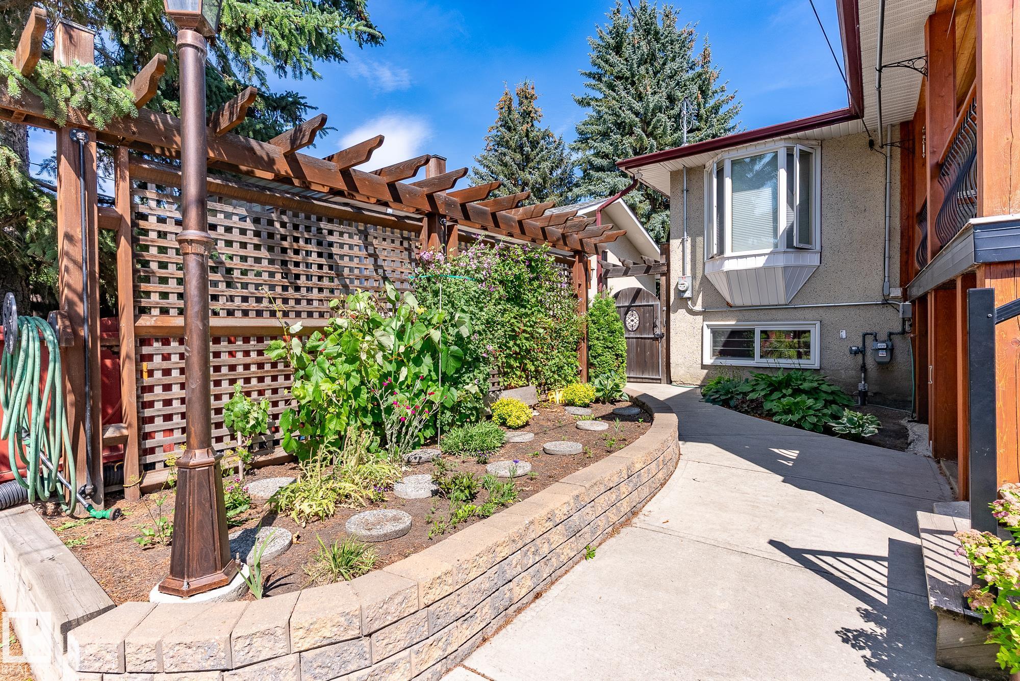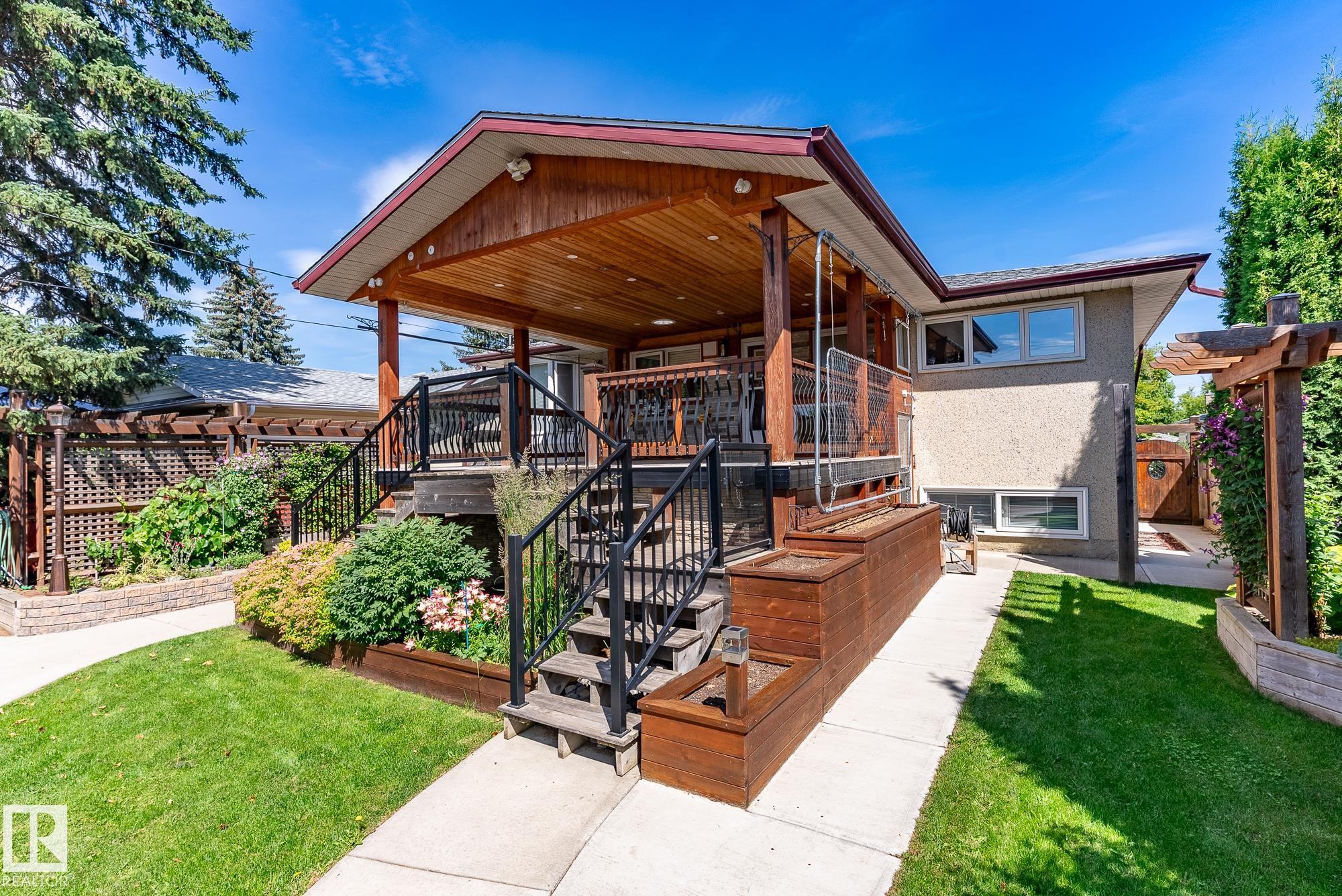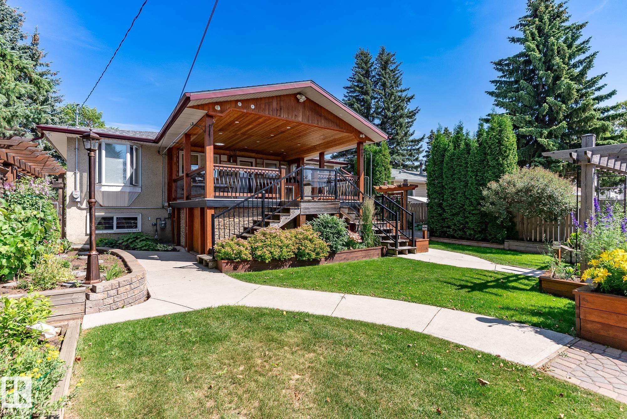 EXCEPTIONAL BI-LEVEL on 50 X 148 lot! This unique home in desirable Canora with SEPARATE ENTRANCE is immaculate! Impeccably maintained, the home offers 4 bedrooms, 2 baths, triple pane windows, 2 furnaces, newer HWT, hardwood flooring, updated railings, sewer line (2024), roof, concrete & SOLAR PANELS?energy savings included. The bright living room with bay window flows into a formal dining area. Enjoy a spacious country kitchen with quality stainless steel appliances, ample counterspace, and a large primary suite. The developed basement feels open and airy with high ceilings and large windows, plus a family room, 2 more bedrooms, full bath, and laundry. Step outside to a beautifully landscaped, private backyard oasis featuring garden beds, mature shrubs, apple tree, fruit bushes, paving stones, and a huge covered deck with storage underneath. Thoughtfully equipped with extra electrical outlets, 4 hose bibs & detached garage with metal roof. Prime location close to parks, schools, and transit! IMPRESSIVE!