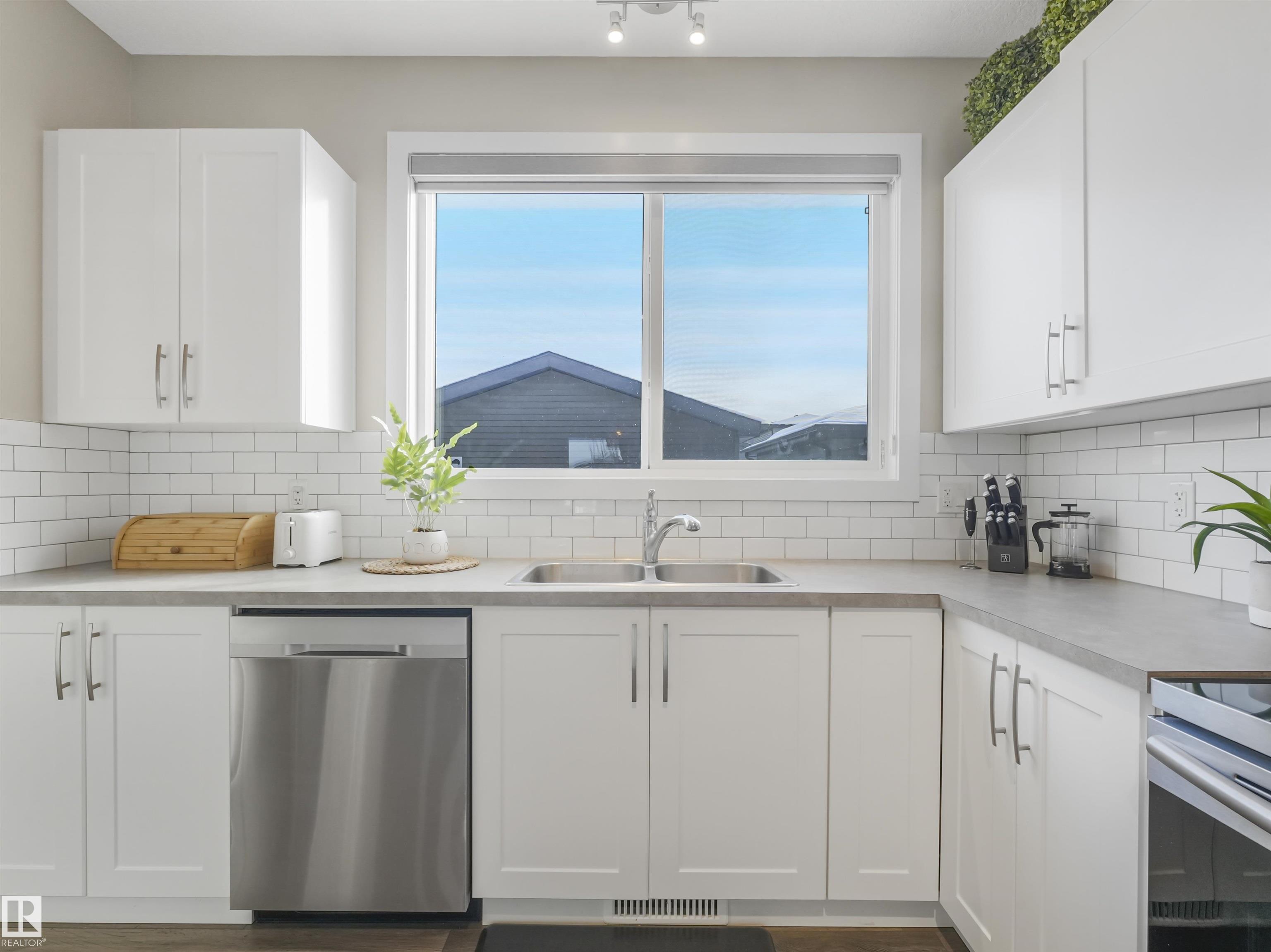Super clean modern 2 story home. Main floor is an open concept. Bright white kitchen with subway backsplash, stainless appliances and an island with room for seating. This home has large windows - sun in the kitchen in the morning and sun in the living room in the evening. Lots of space for a large dining table, and comfy living space. Thoughtful details throughout. Powder room is tucked at the base of the stairs. Primary bedroom suite has a beautiful decorative tiled black wall with built in sconces and side tables. All ready for your furniture. Full ensuite and walk in closet. Upstairs laundry is so convenient. 2 addl bedrooms are situated beside the full bath. The basement is ready for your personalization-tankless hot water system; solar panel rough in; HRV & 96% high efficiency furnace. Double garage in the private backyard. Located in the south east corner with great access to 50 st and the Henday. All amenities are located on and around 50 st. Charlesworth has excellent waling trails and parks.