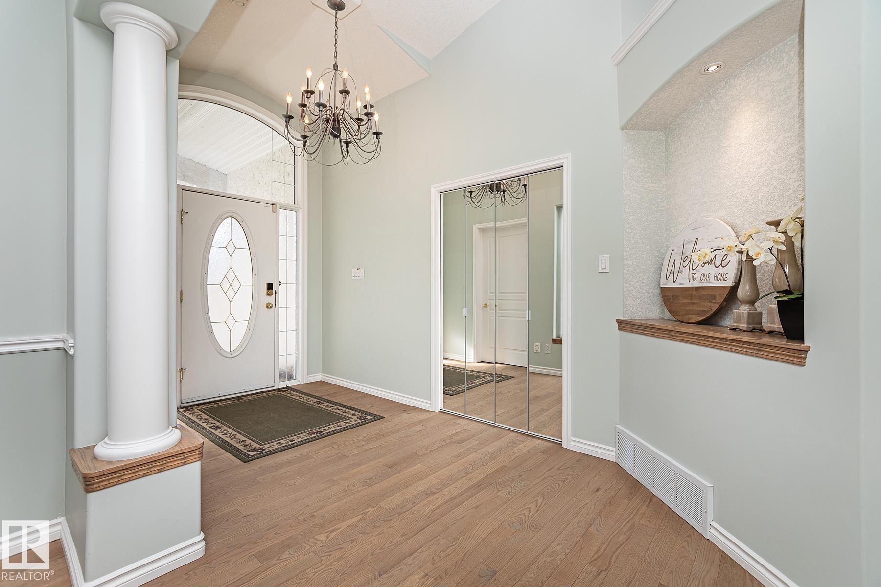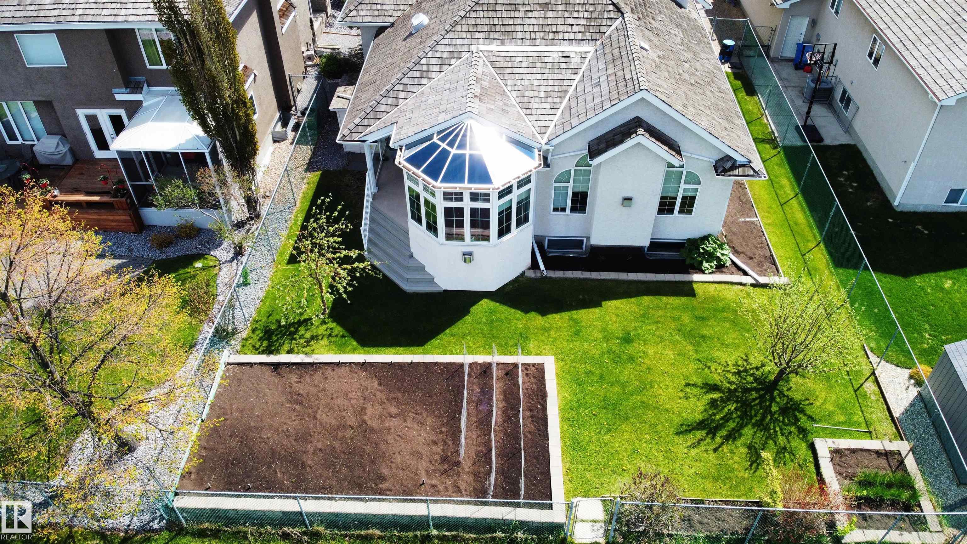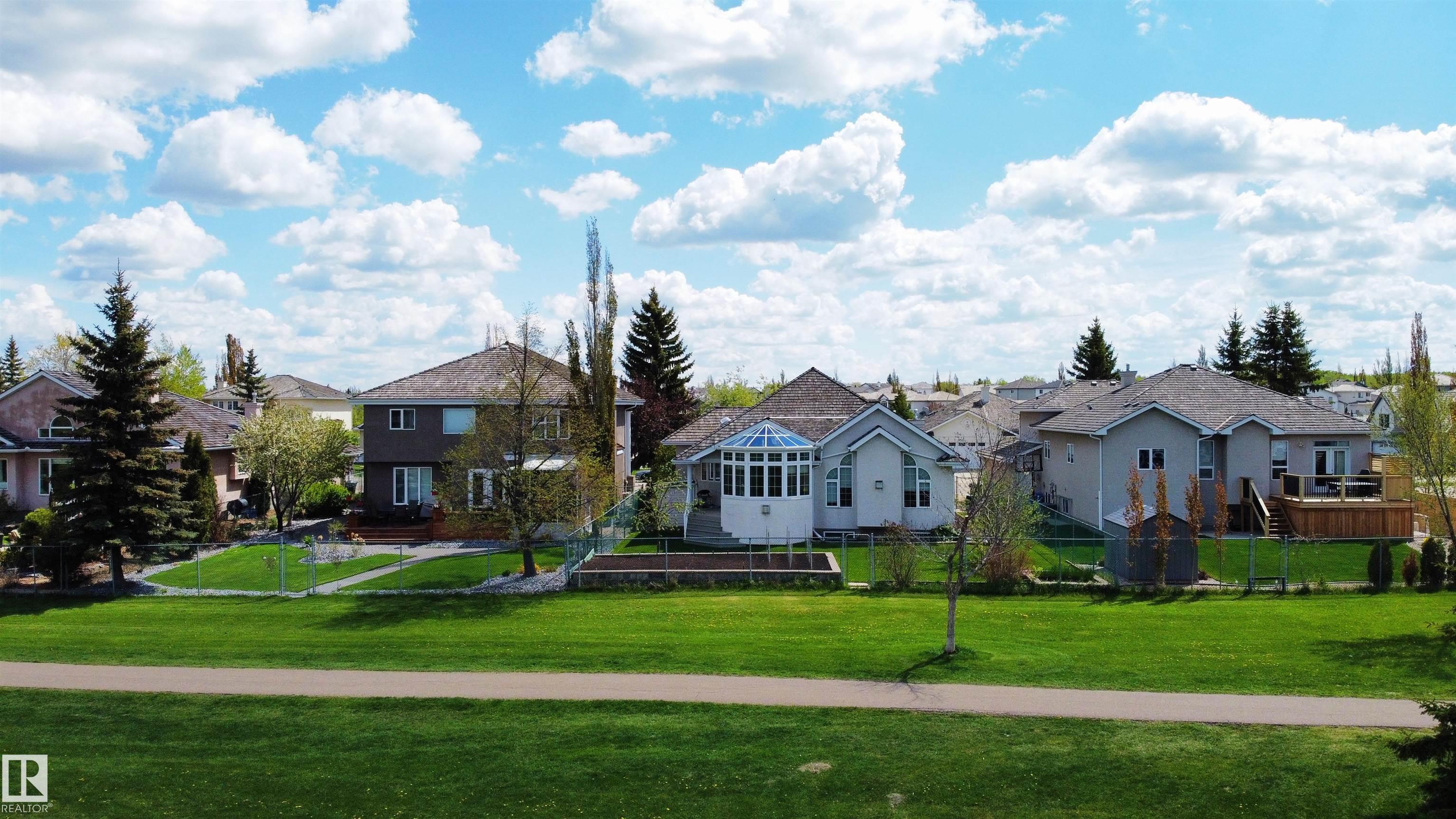 This CUSTOM-BUILT Nottingham beauty BACKING A PARK is sure to impress! Offering A/C, 5 bedrooms & 2.5 baths, this home blends space, quality & location. A spacious entry welcomes you with rich hardwood flooring & soaring vaulted ceilings, while skylights flood the main level with natural light. The kitchen features abundant cabinetry, pantry & island overlooking the living room anchored by a cozy fireplace. You?ll LOVE the sunroom with peaceful park views, the perfect place to unwind and enjoy stunning sunsets. The king-sized primary retreat boasts a walk-in closet & luxurious ensuite with jetted tub. Formal dining, second bedroom/den, main floor laundry & guest bath complete the level. Downstairs offers 9? ceilings, a large family-sized rec room, 3 generous bedrooms, 3-piece bath & ample storage. NEWER furnace & HWT. Oversized 25x23 HEATED garage. Enjoy the fenced, landscaped yard with raised garden beds, all on a quiet street in sought-after Nottingham!