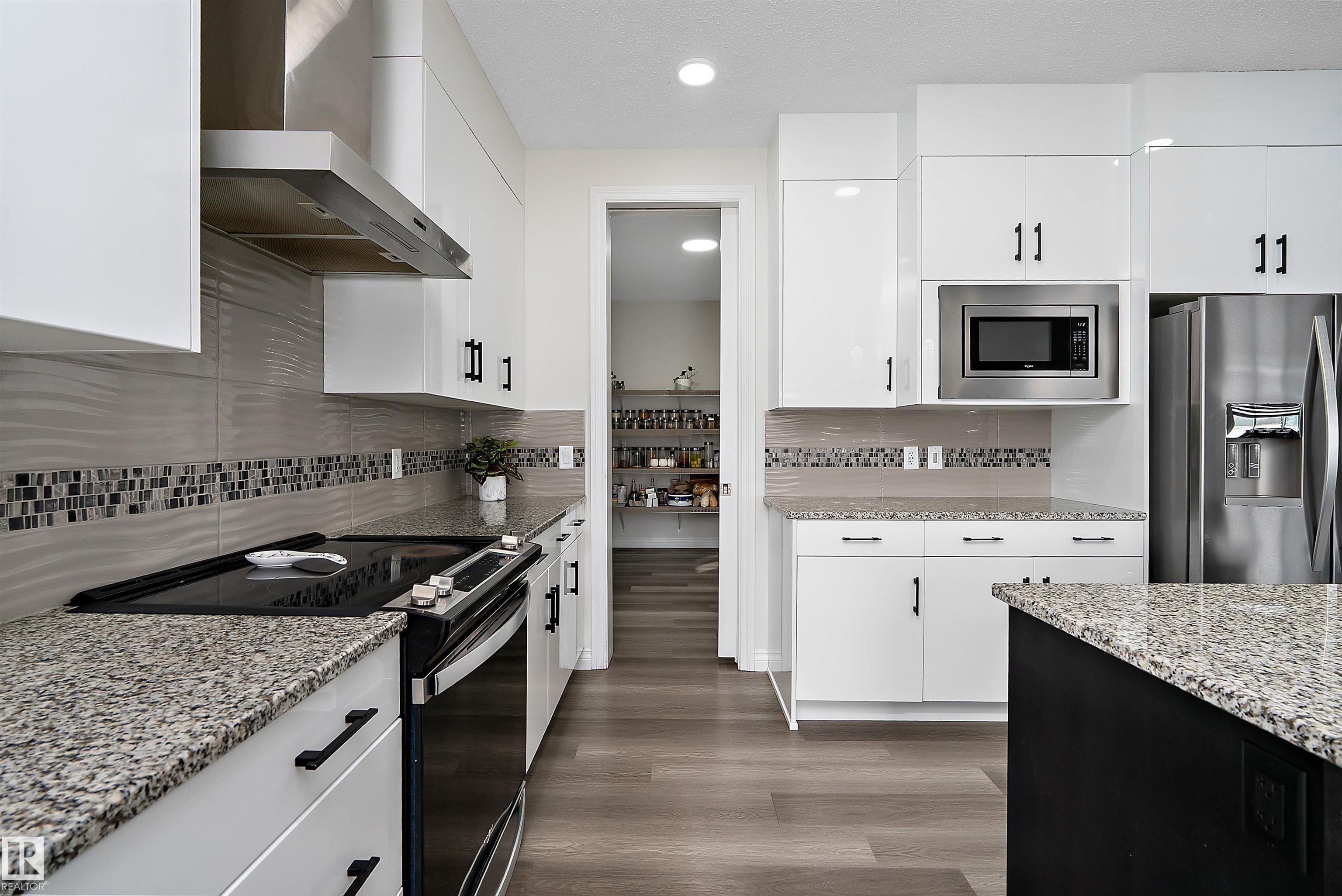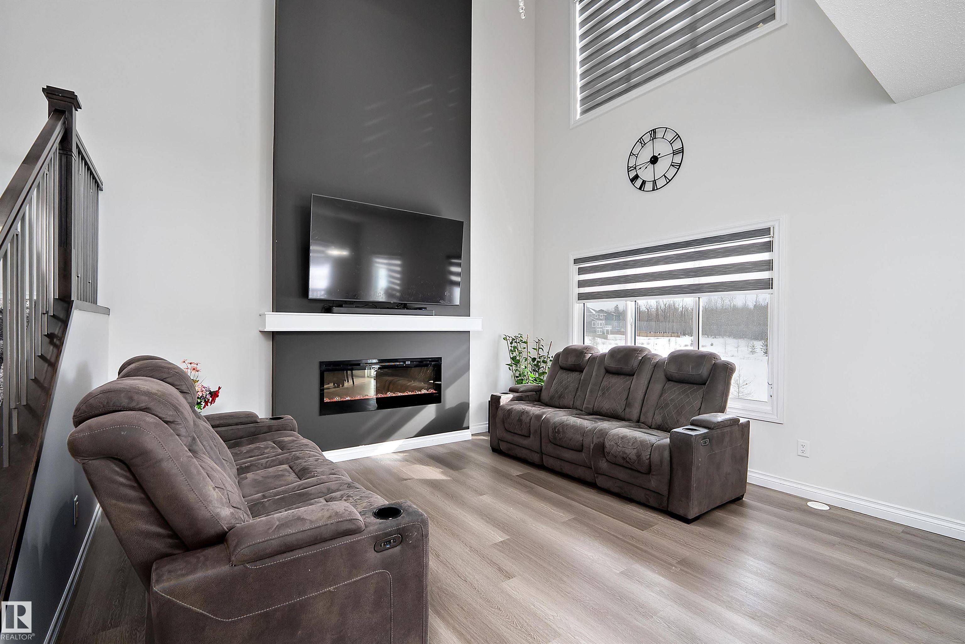 Amazing LOCATION in a CUL DE SAC on a PIE LOT & backing the NATURAL TREES, LAKE, TRAILS & just steps from the SCHOOL! This LANDMARK 2 STOREY features an 'OPEN TO BELOW' great room with TRAY CEILINGS, FIREPLACE, iron & wood railings, LVP FLOORING, GRANITE COUNTERS, 9' CEILINGS on 3 levels & large windows to take in the SOUTH VIEWS! The contemporary ISLAND KITCHEN features a iSPRING WATER SYSTEM, stainless appliances & overlooks the spacious dining area & PATIO DOORS will provide access to the yard & future deck. Just off the kitchen is a large WALK THRU PANTRY complete with roughed in gas & direct vent for range hood ready for appliances & cabinets! A two pc. bath & access to the 20'x21 garage with 8' OH door. Up the stairs to a BONUS ROOM overlooking the yard & VIEW, 2 bedrooms with a 4 pc. bath, laundry plus a SPACIOUS PRIMARY with walk in closet & lovely ensuite including OVER SIZED SHOWER & TUB! Side entrance to the open basement! Custom blinds, RI security, HI VELOCITY HEAT, TANKLESS HWT. IT'S LOVELY!