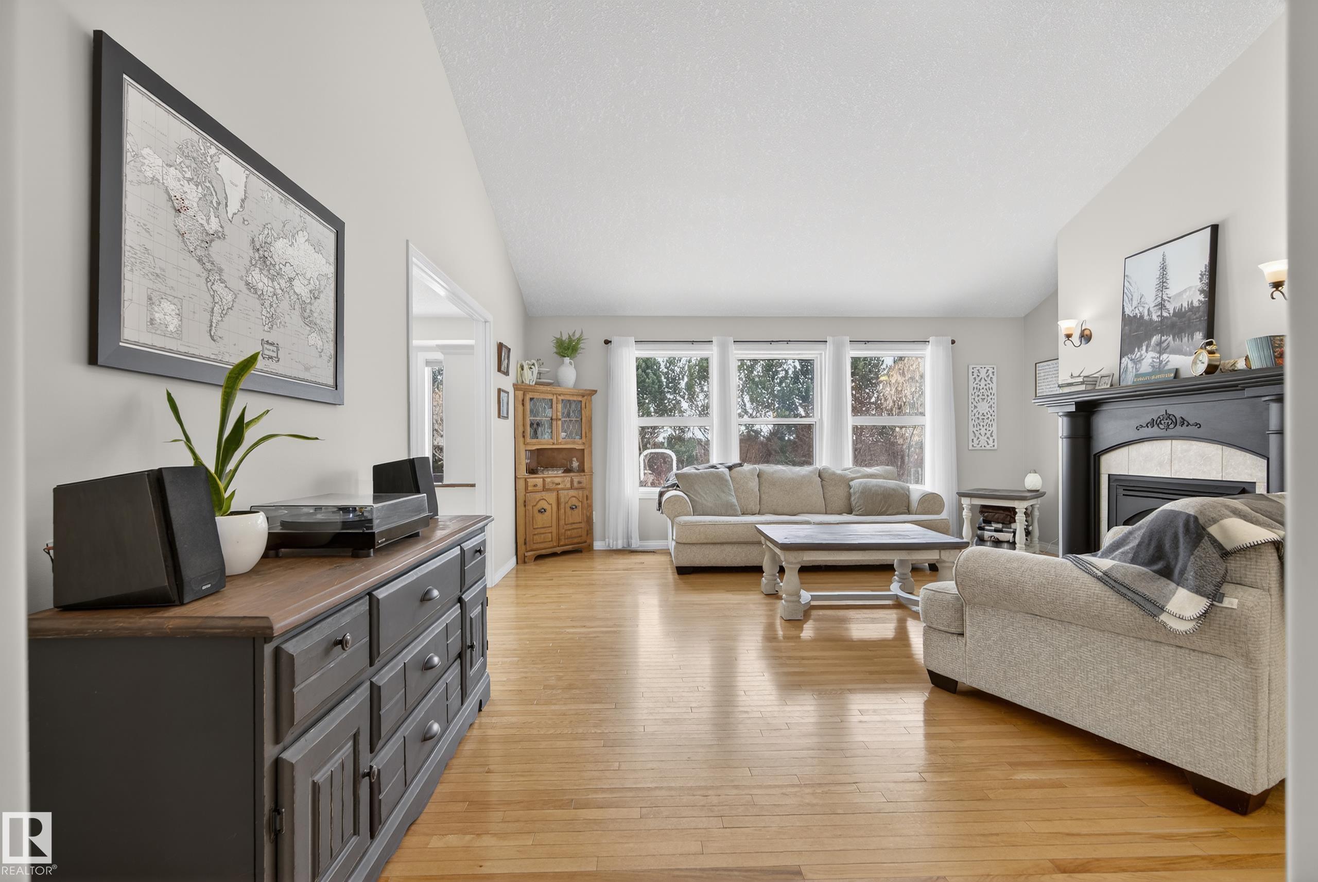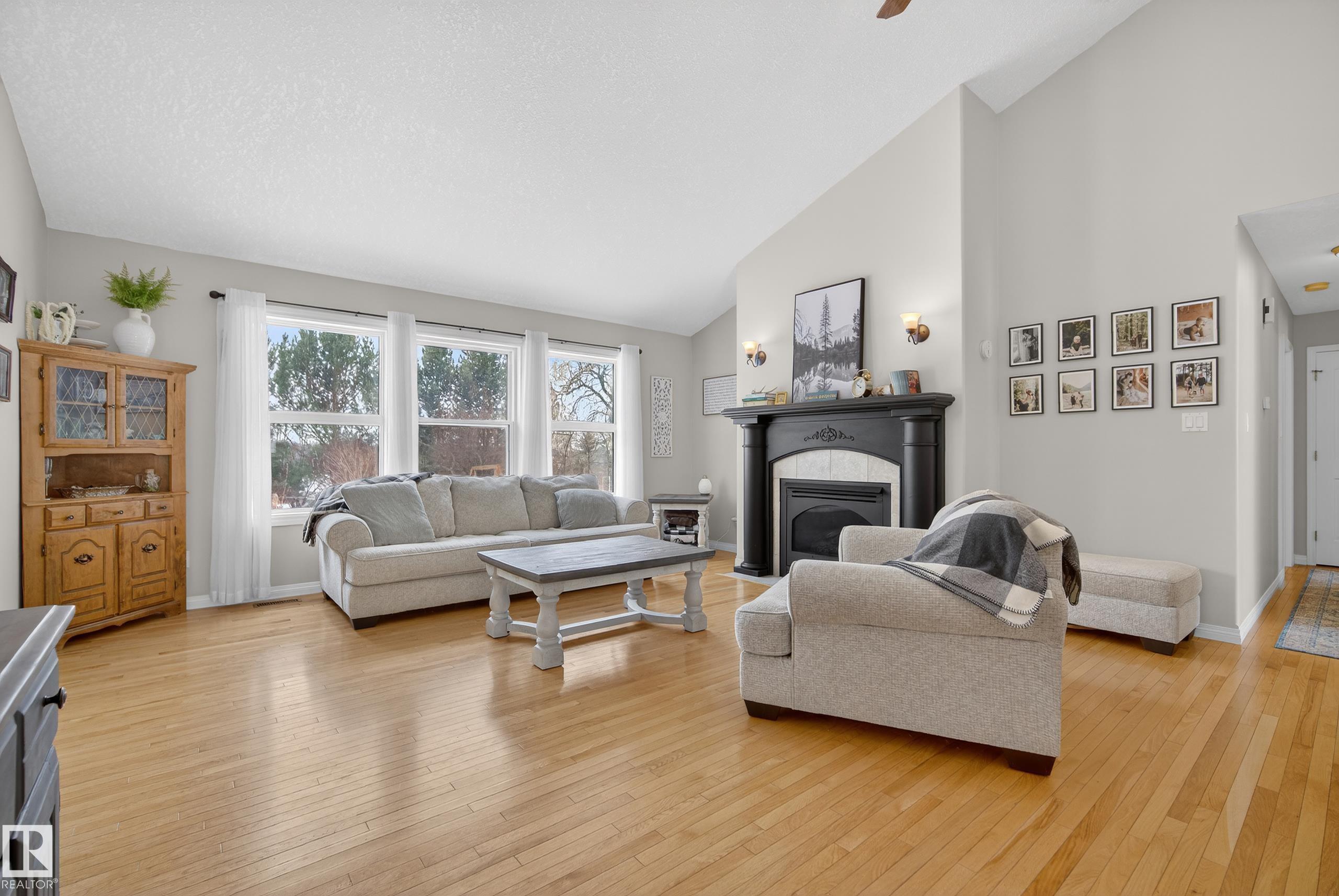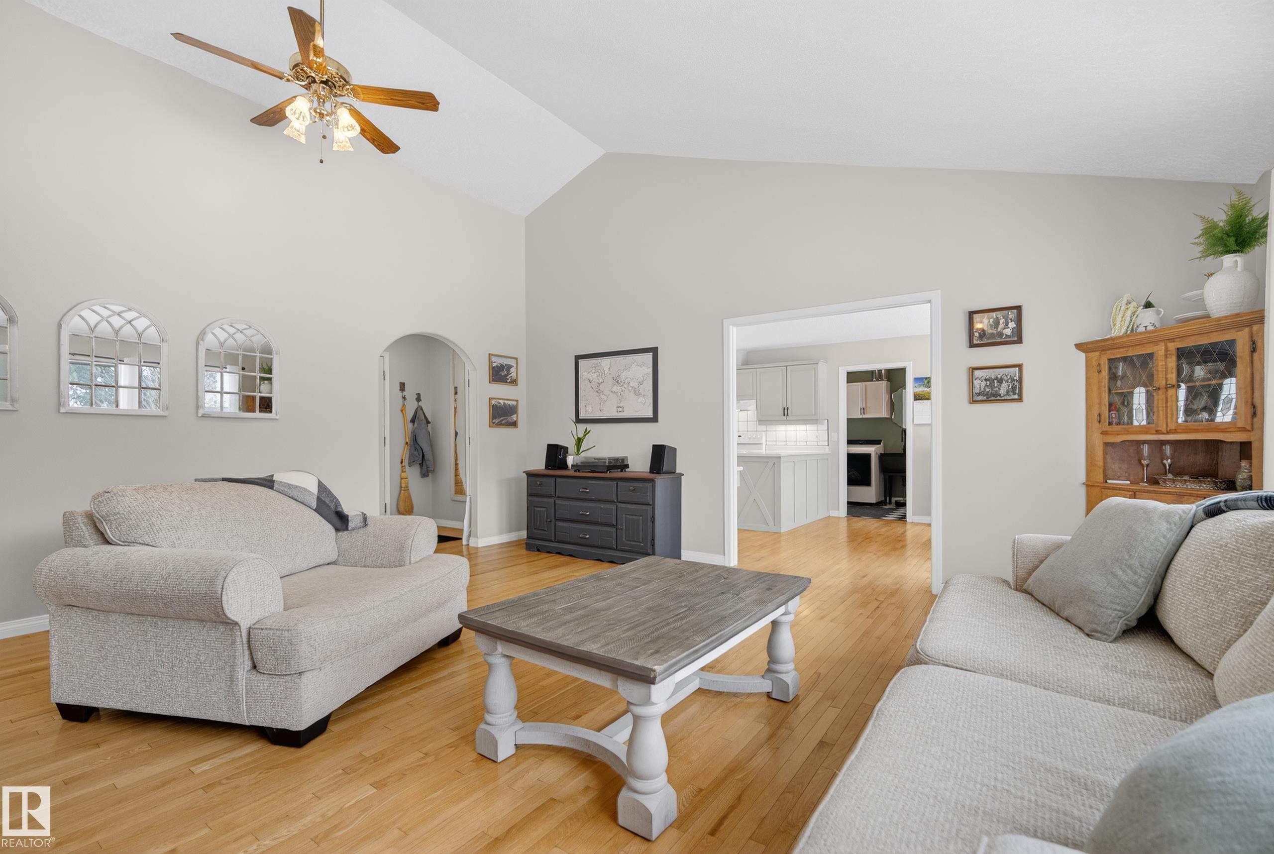 INCREDIBLE 2.09 acre property just 20 minutes west of Edmonton featuring a beautiful rancher-style bungalow with nearly 2,400 SqFt of living space and a FOUR CAR DETACHED GARAGE. Step inside and you'll notice the abundance of large south-facing windows filling the home with natural light. The front living room features vaulted ceilings and a gas fireplace, flowing into the updated kitchen with pantry and dining area. The east wing offers a spacious family room with pellet stove, perfect for cozy winter nights. The west wing features a king-sized primary bedroom with 4pc ensuite including a soaker tub and walk-in closet, plus two additional bedrooms and another full bath. The FULLY FENCED south-facing yard is a country dream with garden area, chicken coop, gazebo, and plenty of space to enjoy the outdoors. Recent upgrades include ALL triple-pane windows & sliding door (2024), shingles (2021), extended gravel driveway (2023), furnace blower motor (2025), and new washer & dryer (2025).