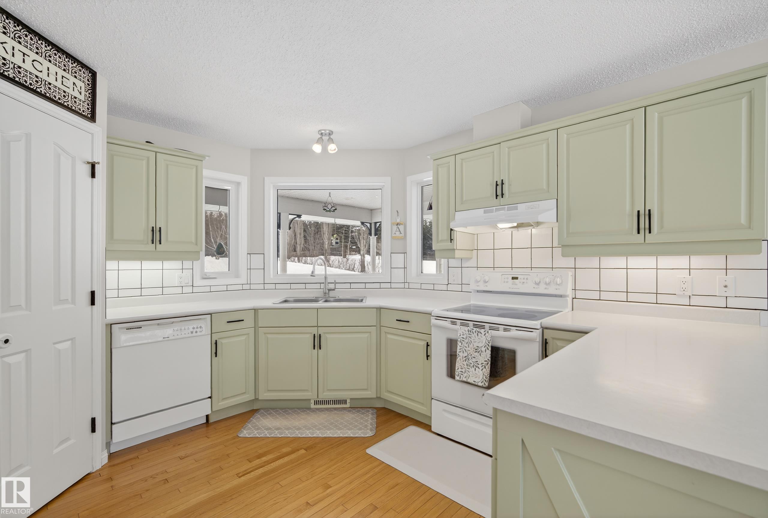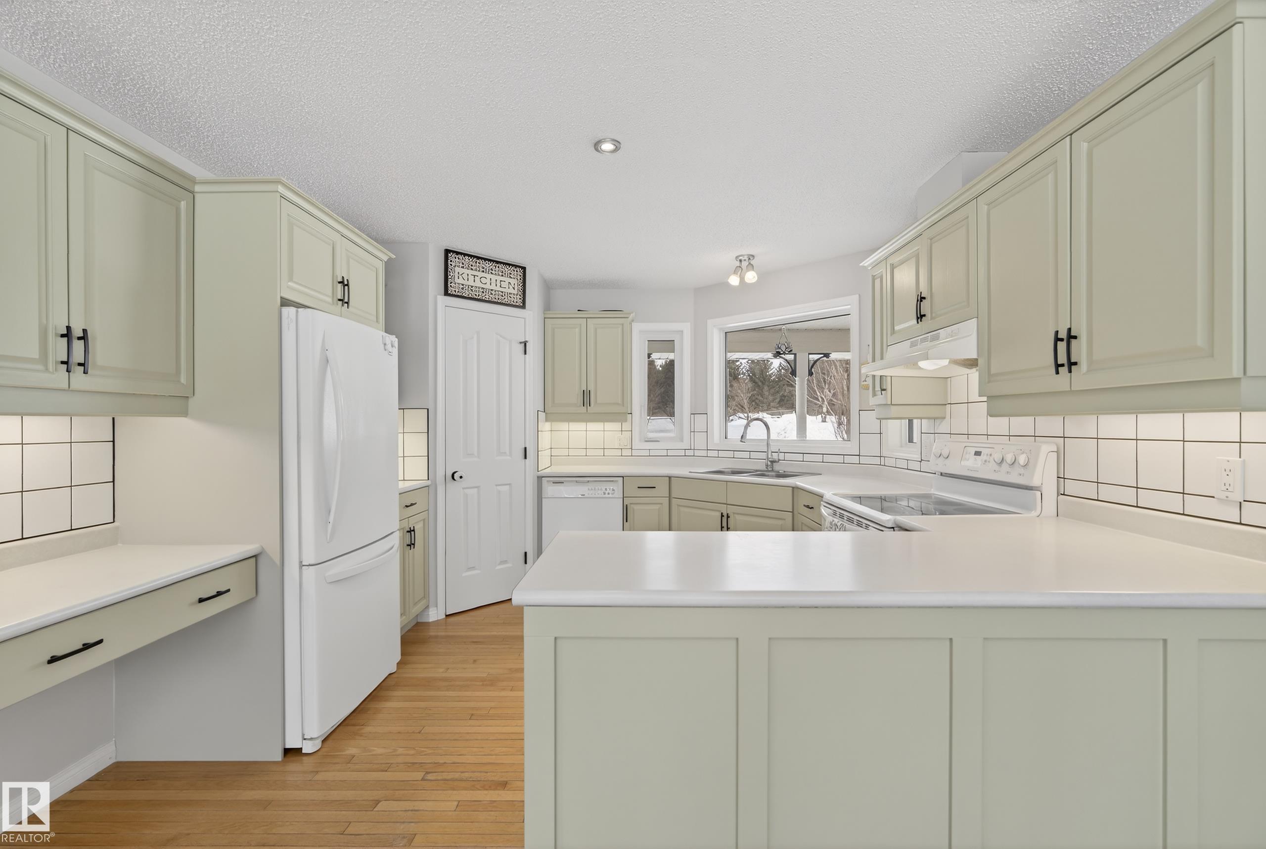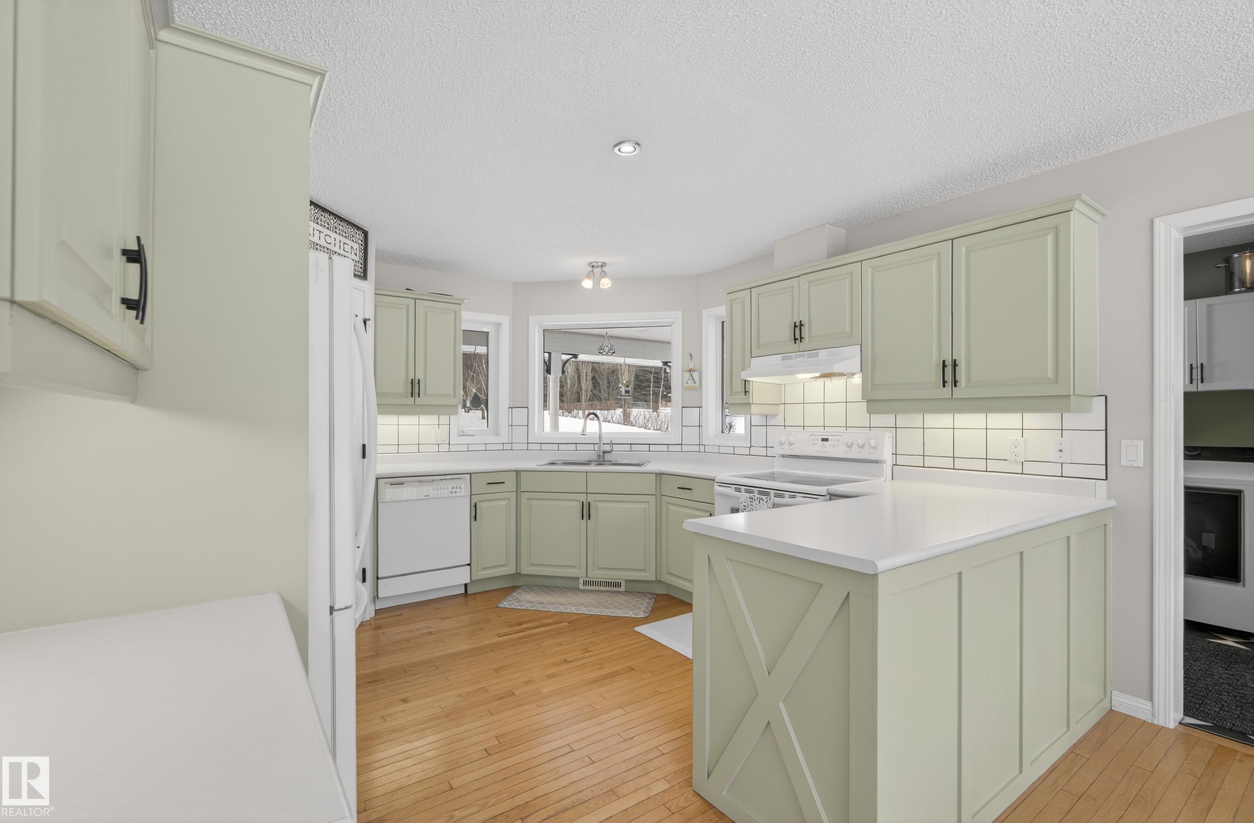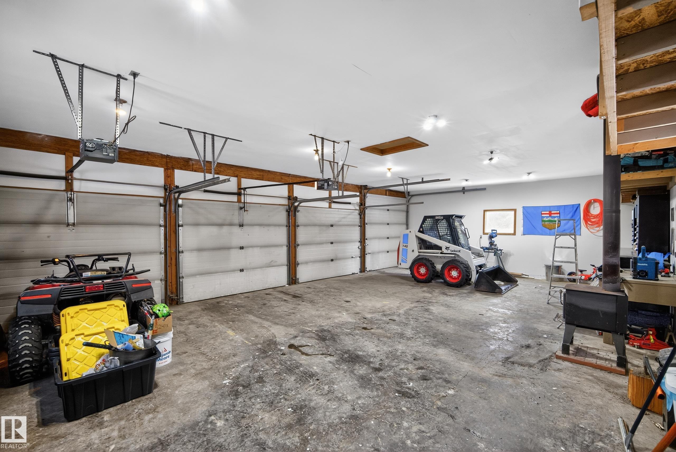 INCREDIBLE 2.09 acre property just 20 minutes west of Edmonton featuring a beautiful rancher-style bungalow with nearly 2,400 SqFt of living space and a FOUR CAR DETACHED GARAGE. Step inside and you'll notice the abundance of large south-facing windows filling the home with natural light. The front living room features vaulted ceilings and a gas fireplace, flowing into the updated kitchen with pantry and dining area. The east wing offers a spacious family room with pellet stove, perfect for cozy winter nights. The west wing features a king-sized primary bedroom with 4pc ensuite including a soaker tub and walk-in closet, plus two additional bedrooms and another full bath. The FULLY FENCED south-facing yard is a country dream with garden area, chicken coop, gazebo, and plenty of space to enjoy the outdoors. Recent upgrades include ALL triple-pane windows & sliding door (2024), shingles (2021), extended gravel driveway (2023), furnace blower motor (2025), and new washer & dryer (2025).