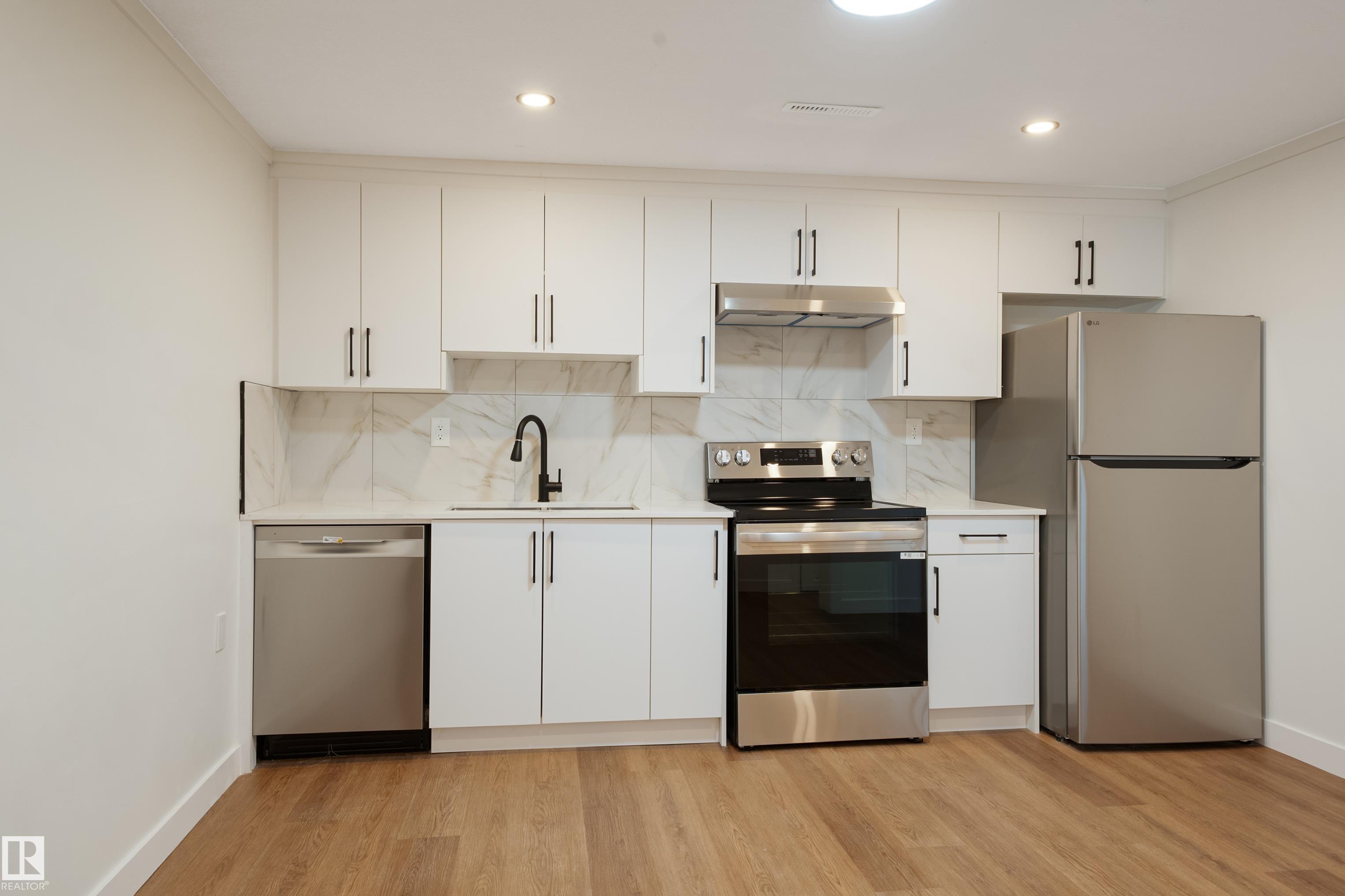 Welcome to this beautifully fully renovated home on a large 55? x 123? lot in the established community of Newton, within walking distance to elementary schools. This spacious property offers 6 bedrooms and 2 full bathrooms, making it perfect for families, first-time buyers, or investors seeking rental potential. The main floor features 3 bright bedrooms with large windows, a welcoming living room with a stylish feature wall, and a stunning modern kitchen with island, quartz countertops, and brand new stainless steel appliances. The fully finished basement includes 3 additional bedrooms, a fully renovated bathroom, separate entrance, brand new kitchen with new appliances, and its own laundry, ideal for extended family living. Recent upgrades include new windows, doors, baseboards, flooring, paint, modern lighting, renovated bathrooms, and two new kitchens. Outside features a large fenced yard with mature trees, detached single garage, storage shed, and hot tub. Close to schools, parks, transit & shopping.