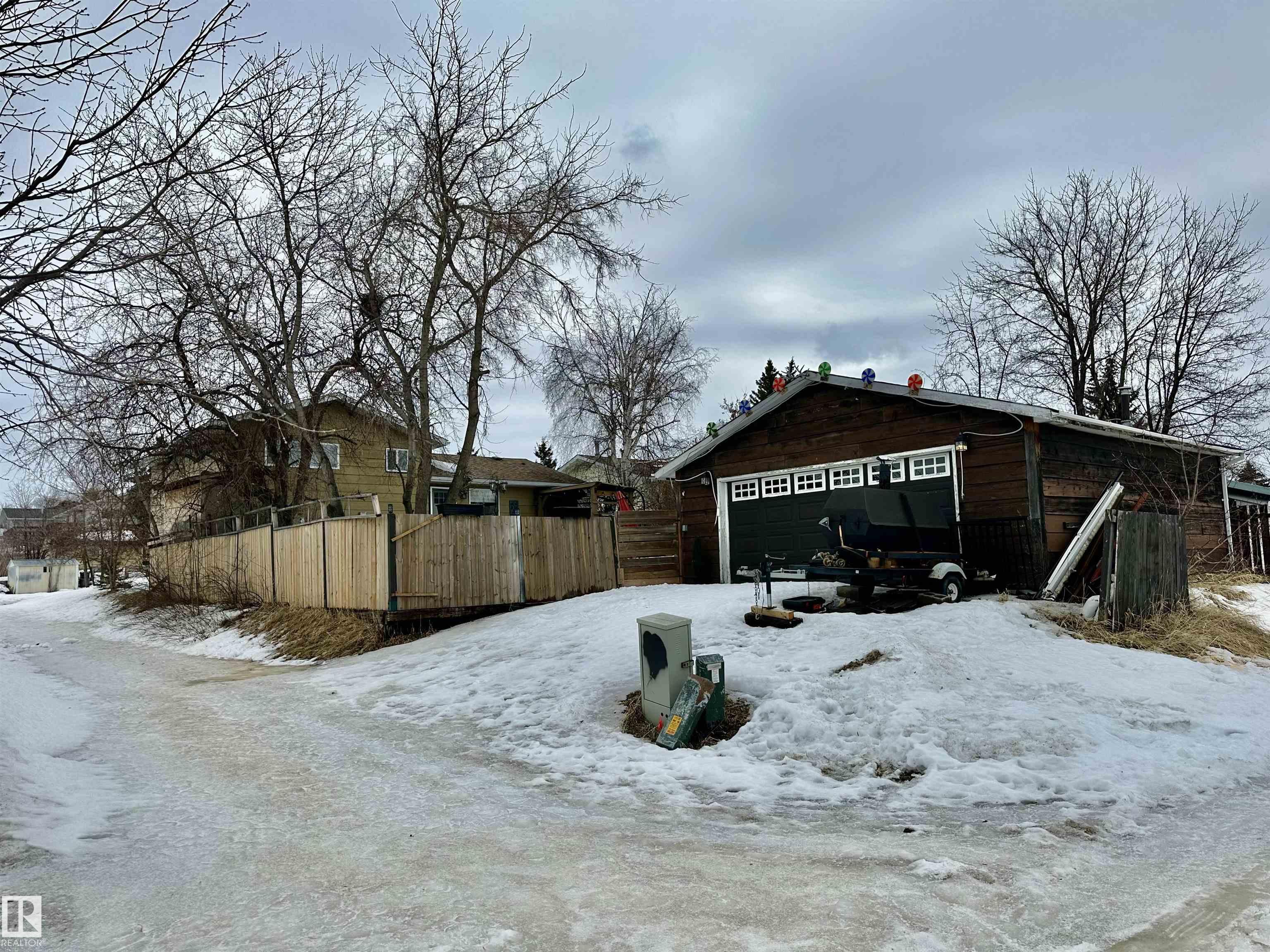 Affordable and adorable in Cold Lake! Floorplan offers easy flow throughout home with no long flights of stairs. Easy to maintain inside with newer flooring-no carpets. Beautiful bright kitchen and living room. Upstairs hosts main bedroom with spacious closet behind pretty glass doors, 4 pc main bath with large vanity and 2 secondary bedrooms. Family room is located down a few steps with tons of room for games or big screen TV for movie nights. Also on this level is laundry room and a SPA like 4 pc bath with jetted tub, corner shower and fireplace. Basement has additional bedroom, den/office area, mechanical room and storage room behind clever rolling door. The fully fenced very private backyard is an oasis with a sensational VIEW overlooking the city! Beautiful trees including cherry, lilacs invite the hummingbirds... Off the back lane is a double detached garage, across the street is Brady Heights Park for the kids and all the amenities of the city of Cold Lake is just a short drive or bus ride away.