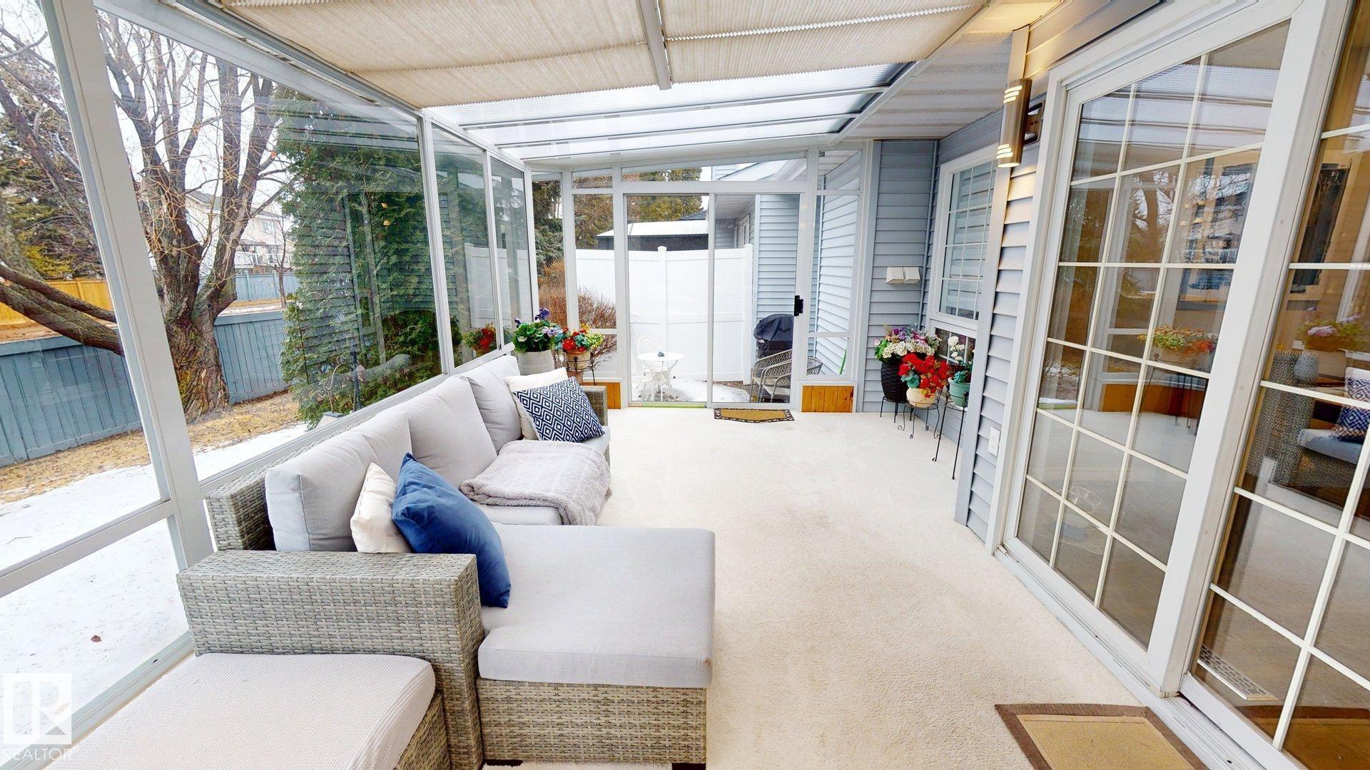 Renovated and move-in ready, gorgeous 1,357 sf bungalow in the adult (18+) Country Club community offers low-maintenance living. Renovated kitchen with updated ceiling-height cabinets, flooring, appliances and granite bull-nose countertop. Bright open living and dining area with hardwood floors, vaulted ceilings and skylight. Spacious primary bedroom with renovated ensuite and walk-in closet, plus large den that can convert to a bedroom. Main floor laundry with updated appliances, a second 3-piece bathroom with laminate flooring, and a beautiful 3-season sunroom. Finished basement includes large bedroom with walk-in closet, 3-piece bath with laminate flooring, large family room, updated carpeting and large utility/workshop area with workbench and new water softener. Other major updates include full interior repaint, toilets, baseboards, doors, light fixtures, epoxy garage floor, leaf-filter gutters and new hose bibbs for underground sprinklers. HOA covers landscaping, snow removal and sprinkler blowout.