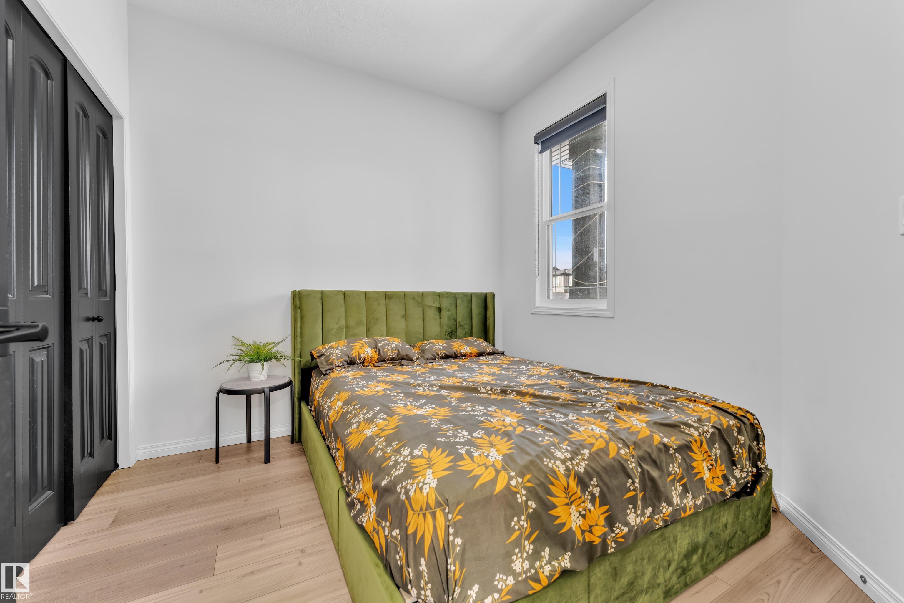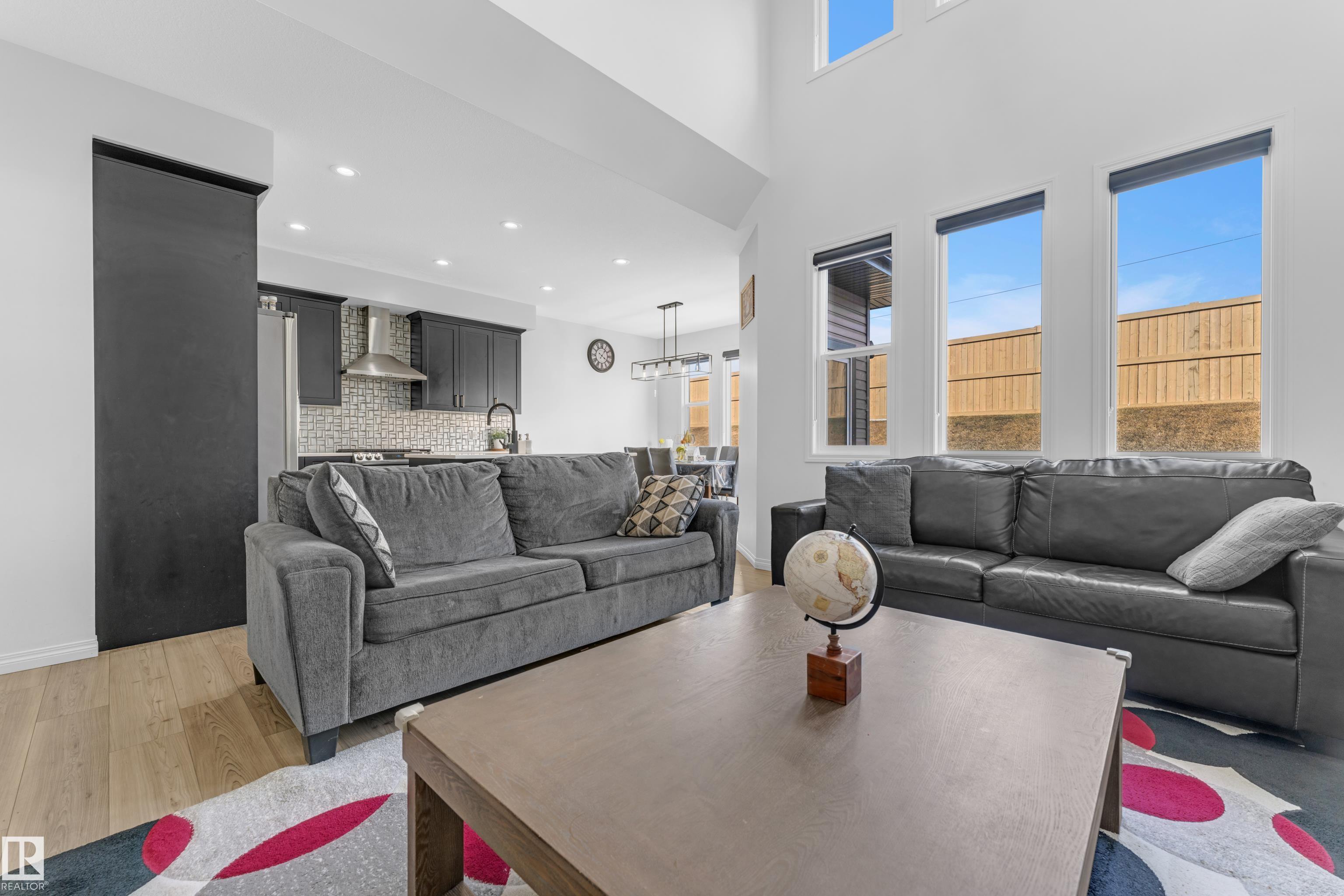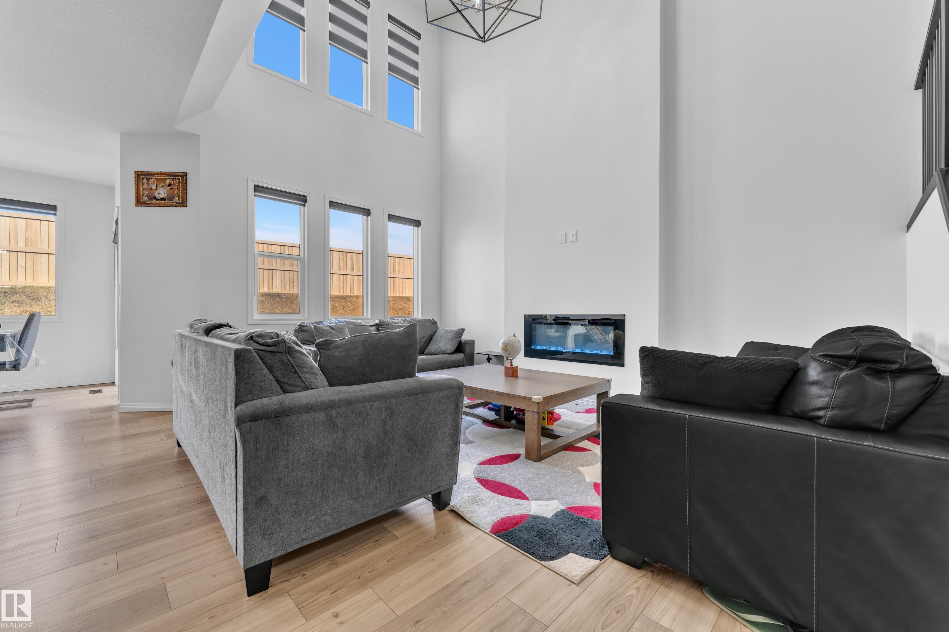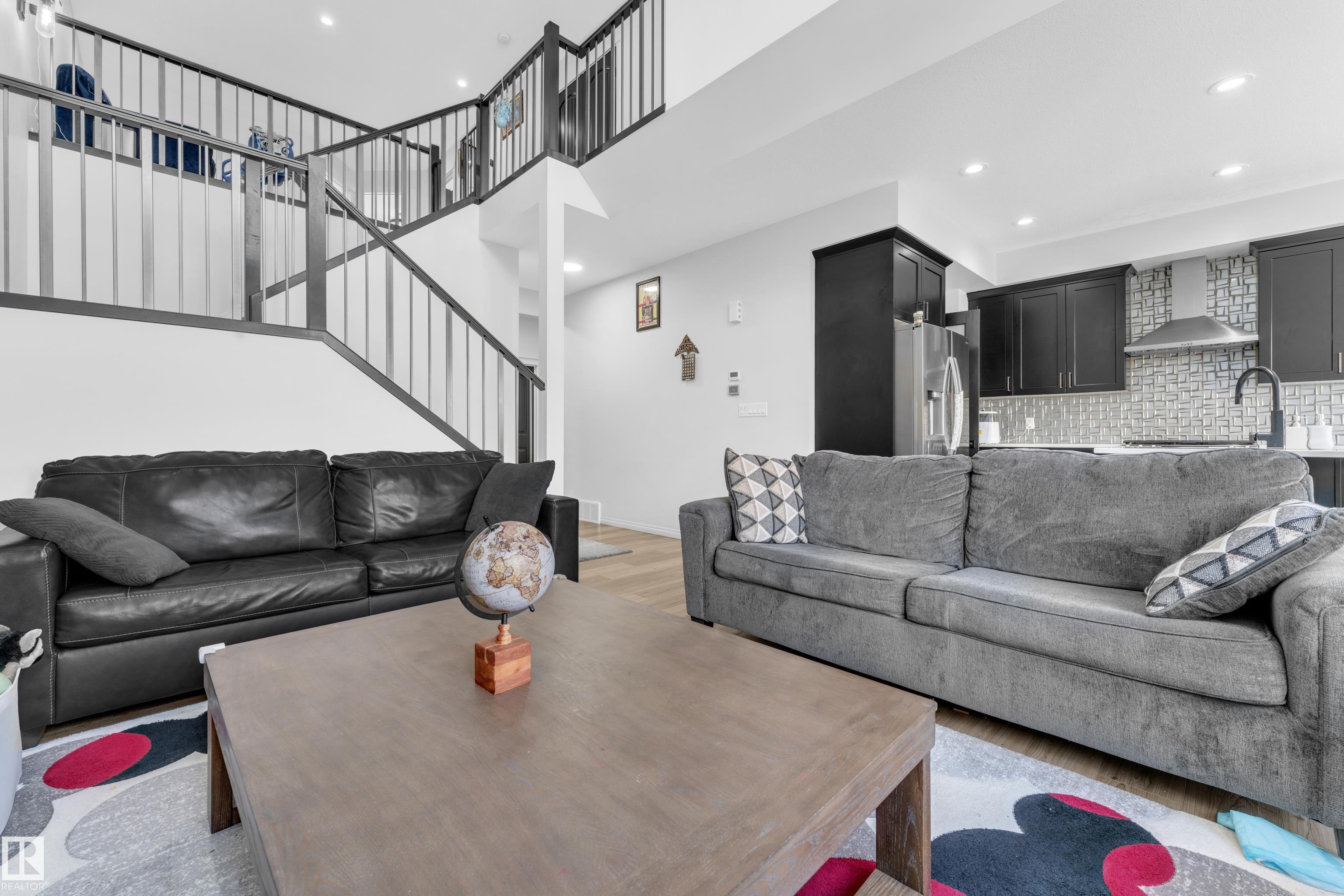 Beautifully maintained 2022-built home in the desirable Walker community of SE Edmonton! Offering close to 2,000 sq ft of bright, open-concept living, this home features a stunning open-to-above living area, vinyl flooring, and a main floor bedroom with a full bath?perfect for guests or extended family. The separate side entrance adds future potential. Upstairs offers a spacious bonus room, 3 bedrooms, 2 full baths. Enjoy privacy with no rear neighbours, plus central A/C and a water purifier system already installed. Ideally located close to schools, shopping, and all amenities including Walker Lake Plaza!