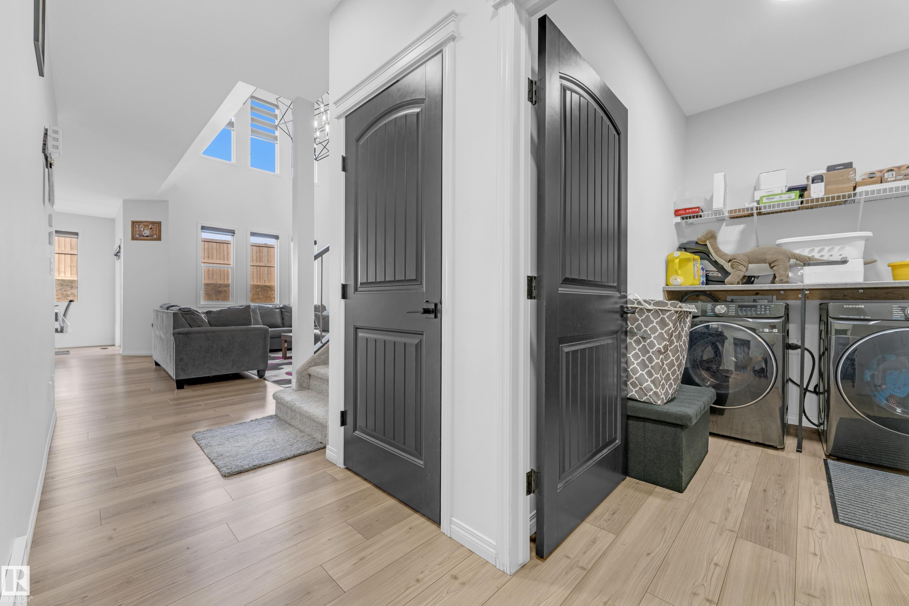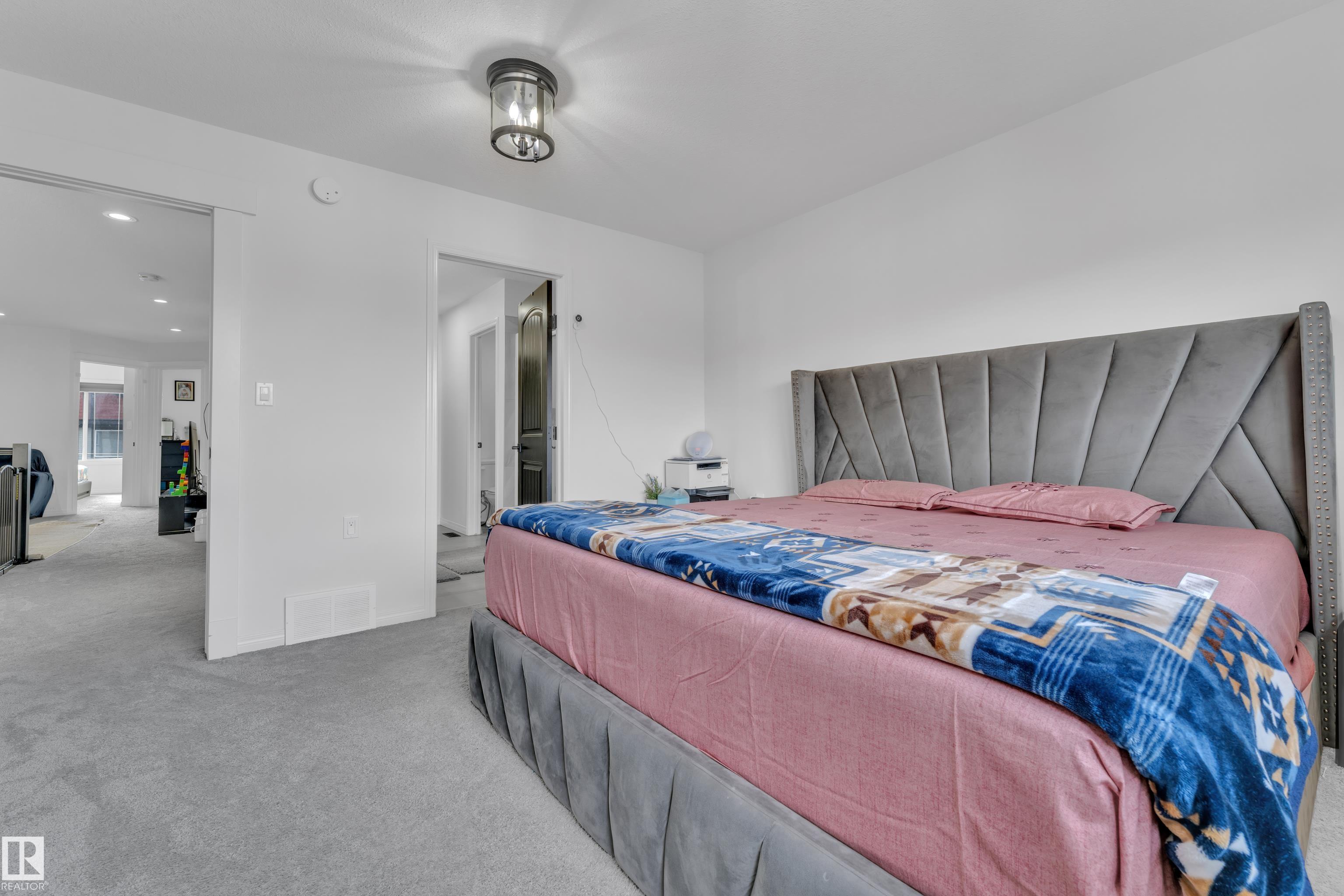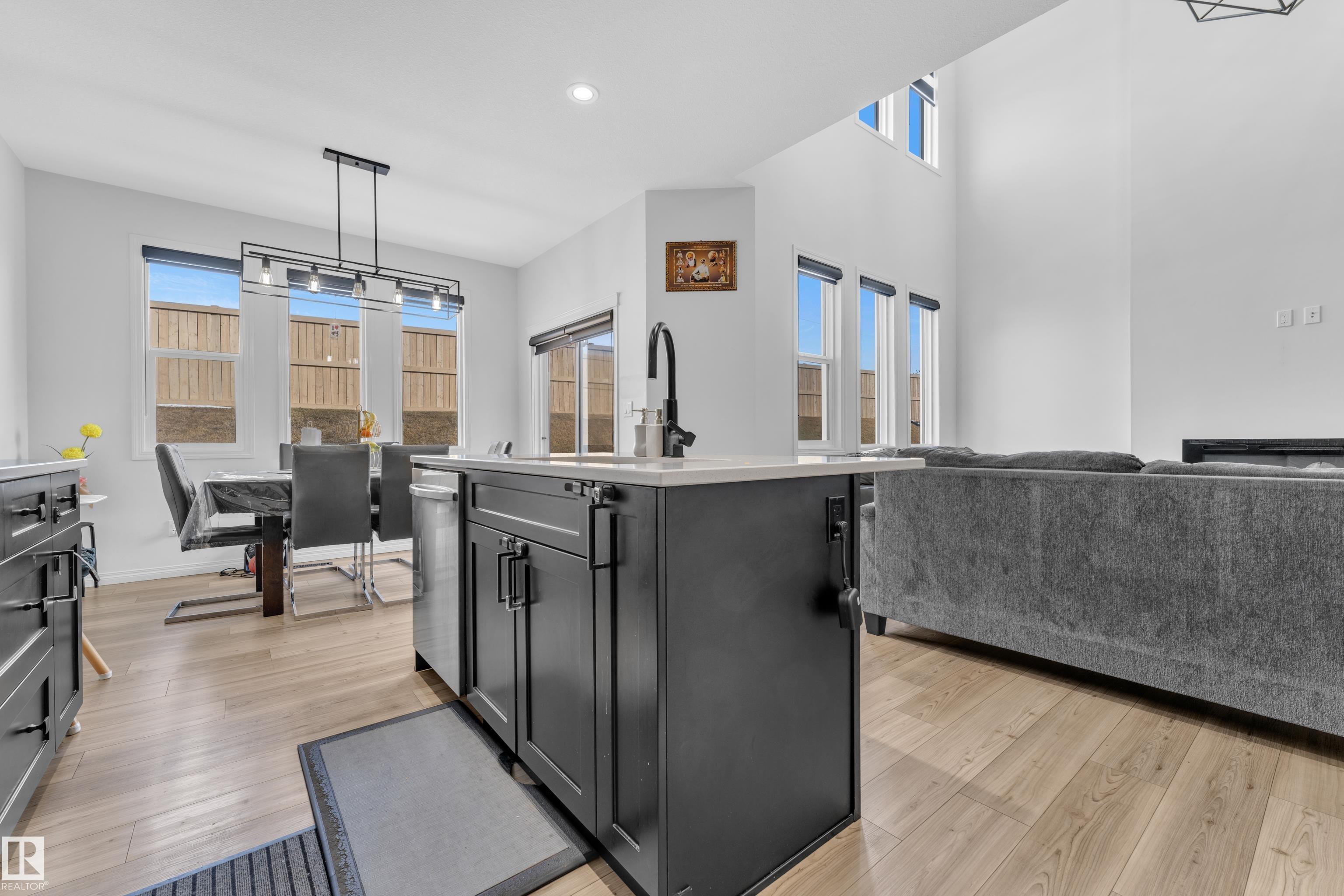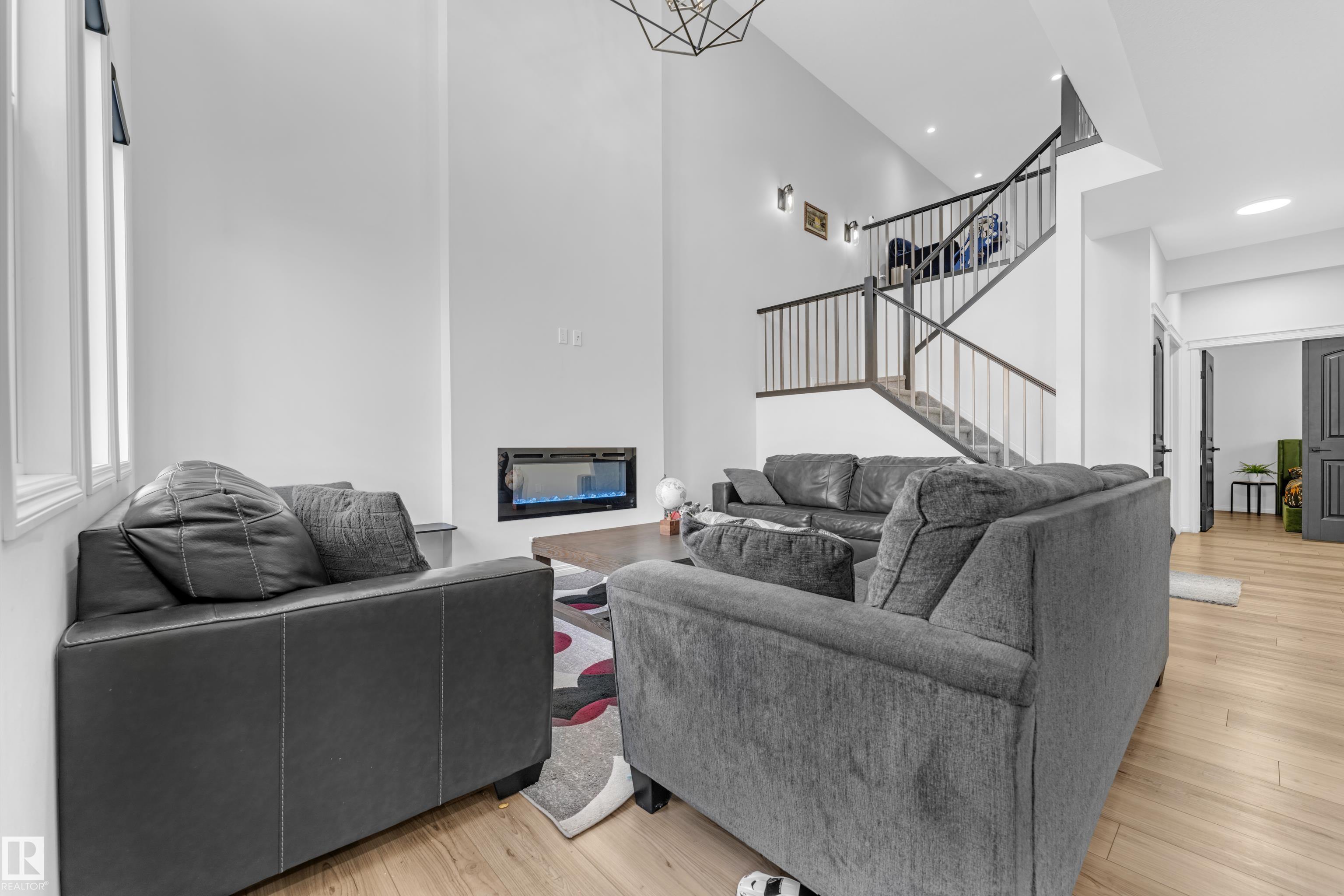 Beautifully maintained 2022-built home in the desirable Walker community of SE Edmonton! Offering close to 2,000 sq ft of bright, open-concept living, this home features a stunning open-to-above living area, vinyl flooring, and a main floor bedroom with a full bath?perfect for guests or extended family. The separate side entrance adds future potential. Upstairs offers a spacious bonus room, 3 bedrooms, 2 full baths. Enjoy privacy with no rear neighbours, plus central A/C and a water purifier system already installed. Ideally located close to schools, shopping, and all amenities including Walker Lake Plaza!