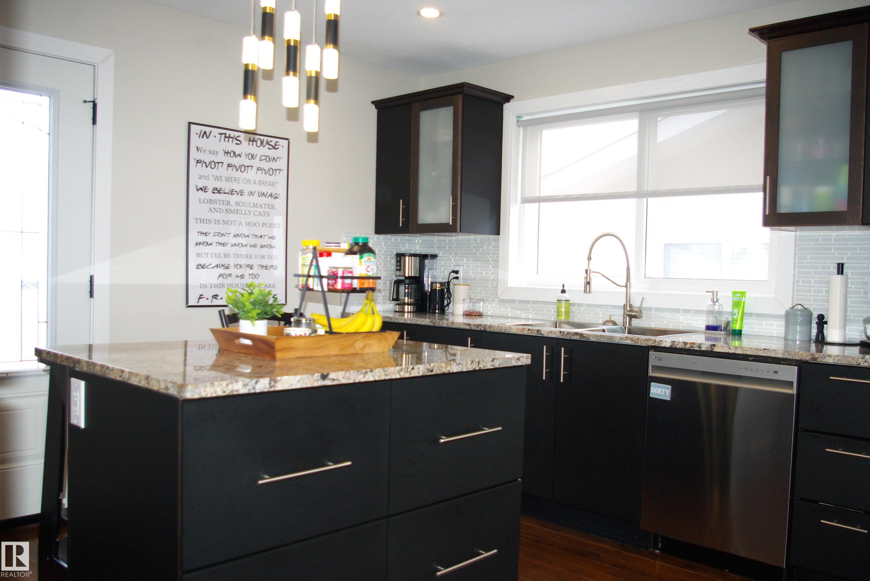 Built for family living, this 1256 sq ft bilevel tucked in a cul-de-sac is perfect for the growing family. Wide open on the living side, this home features a large living room with wood fireplace, an expansive dining area, and a newer island kitchen with darker cabinetry, granite countertops and a French door out to the two-tiered deck. Three bedrooms up, the Primary is a good size and features a walk-in closet and 3-piece ensuite. Main floor is floored in hardwood and tile. The lower level is approximately 70% finished, and features a huge family room with a fireplace and work station, play room and the 4th bedroom. The South-facing backyard is fenced and landscaped, perfect for kids, pets and entertaining, with a fire pit . the oversized 24' x 20' garage has plenty of room for 2 cars and a ton of storage. Come have a look.