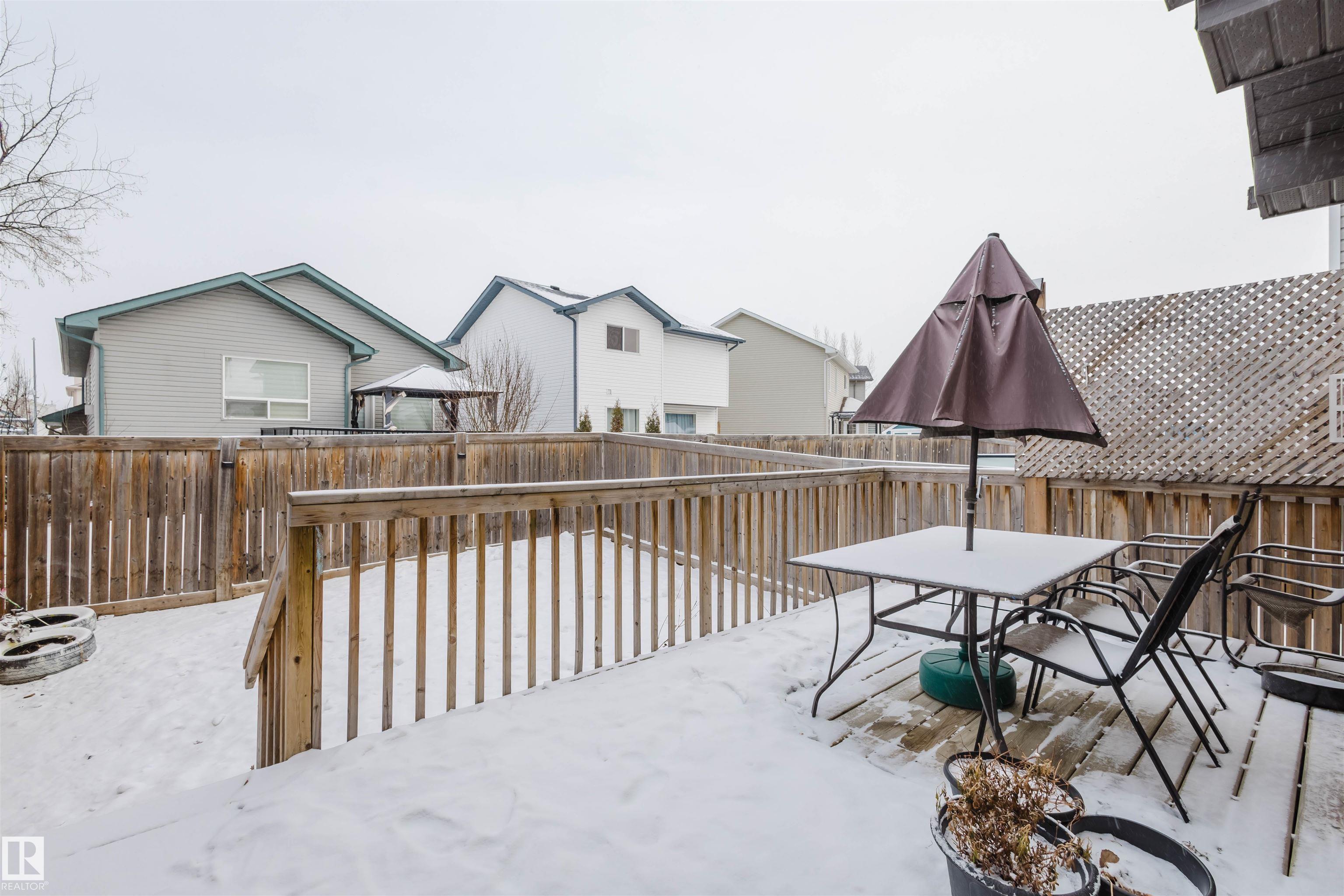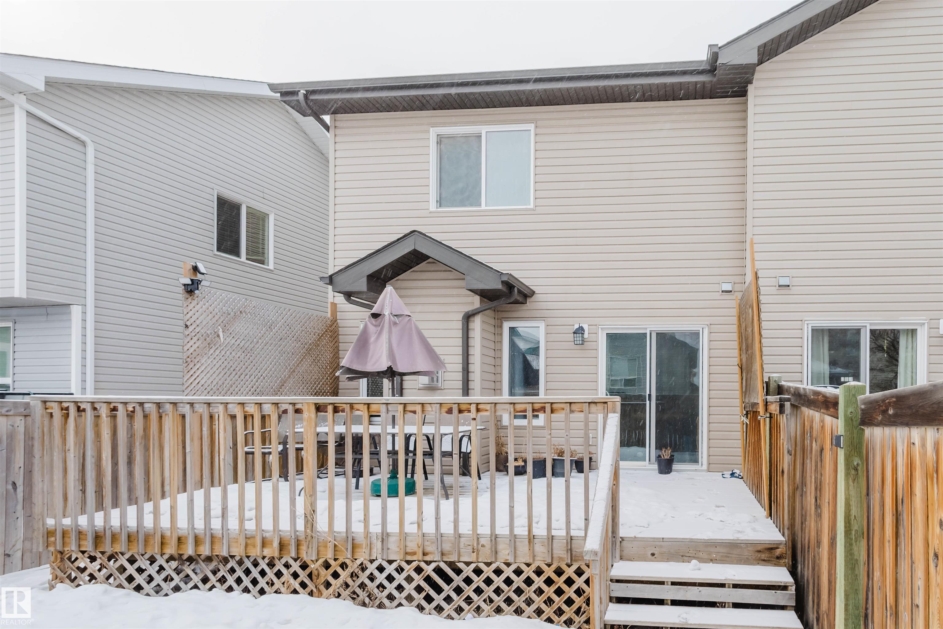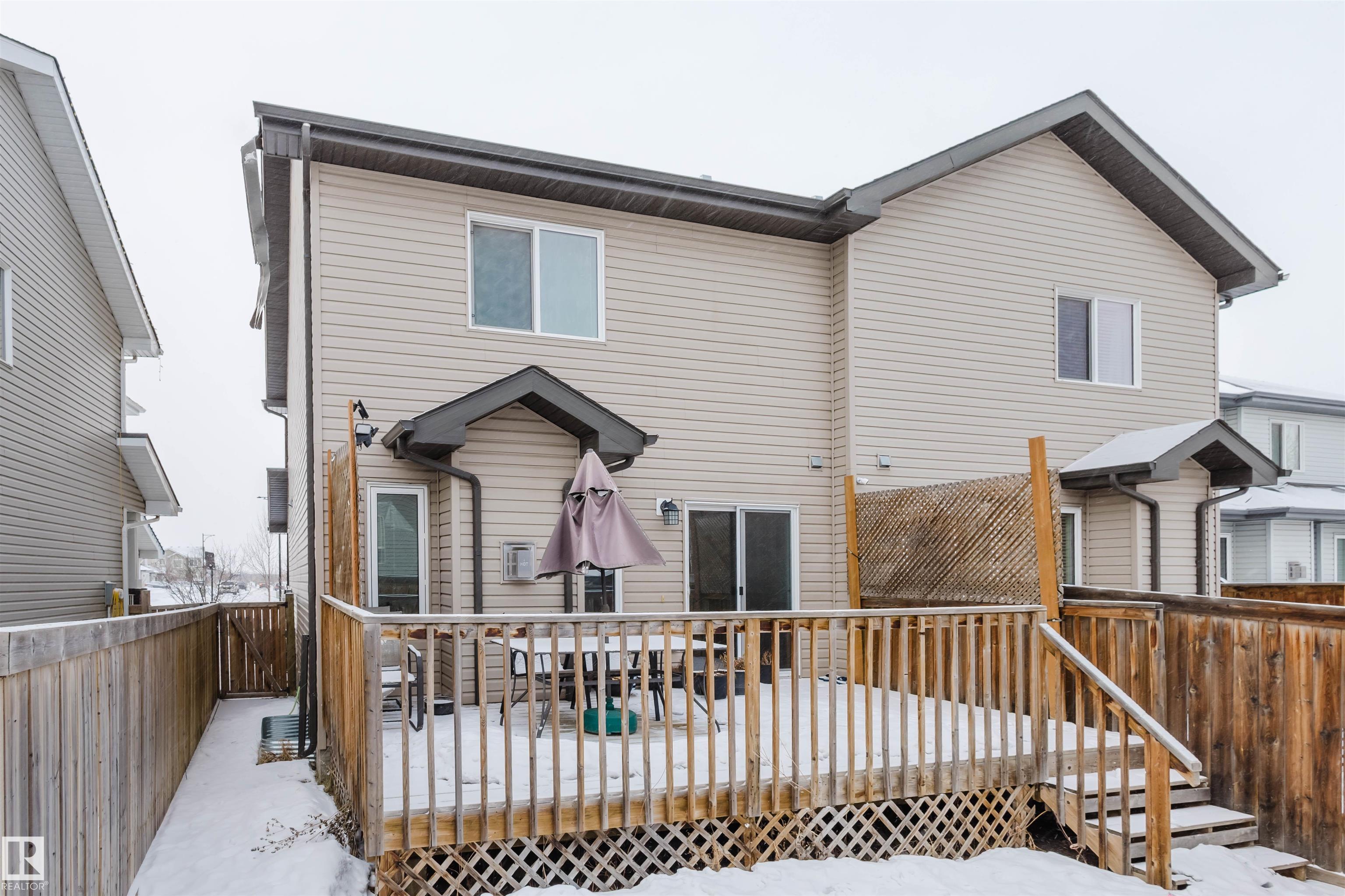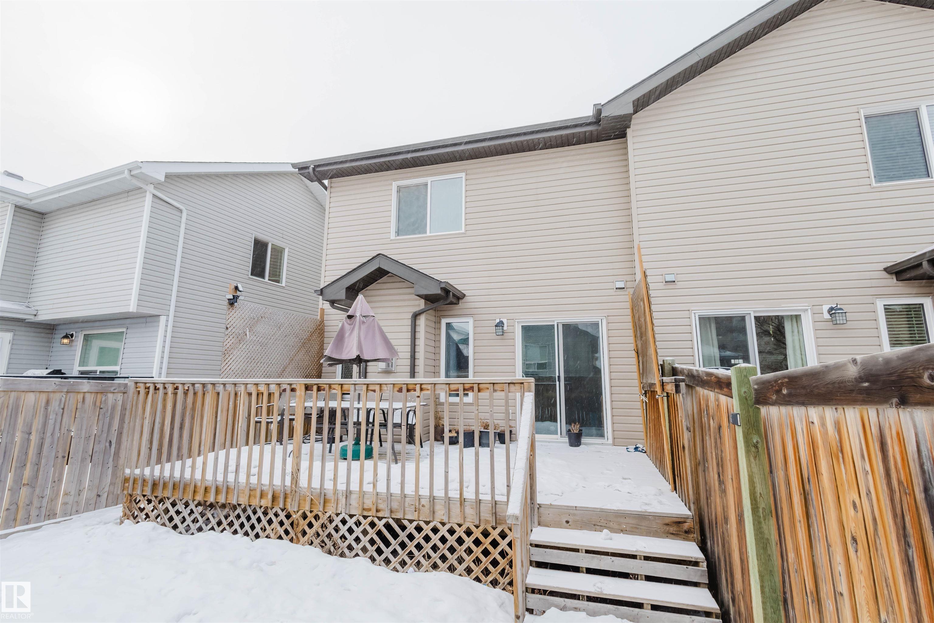 Welcome to this stunning 2-storey half duplex in the heart of Rapperswill! Offering 1,472 sqft of beautifully finished living space and central air conditioning, this home blends comfort, style, and functionality. The bright open-concept main floor features a spacious tiled foyer, inviting living room with gas fireplace and hardwood flooring, and a modern kitchen with granite countertops, stainless steel appliances, ample counter space, and a walk-in pantry. The dining area provides direct access to a newer deck and private backyard?perfect for entertaining. Upstairs boasts a versatile tech space, three generous bedrooms including a primary suite with a 4-piece ensuite, a full main bath, and convenient laundry. The partially finished basement includes a family room and exercise area. Ideally located close to schools, trails, shopping, transit, and with quick access to Anthony Henday.