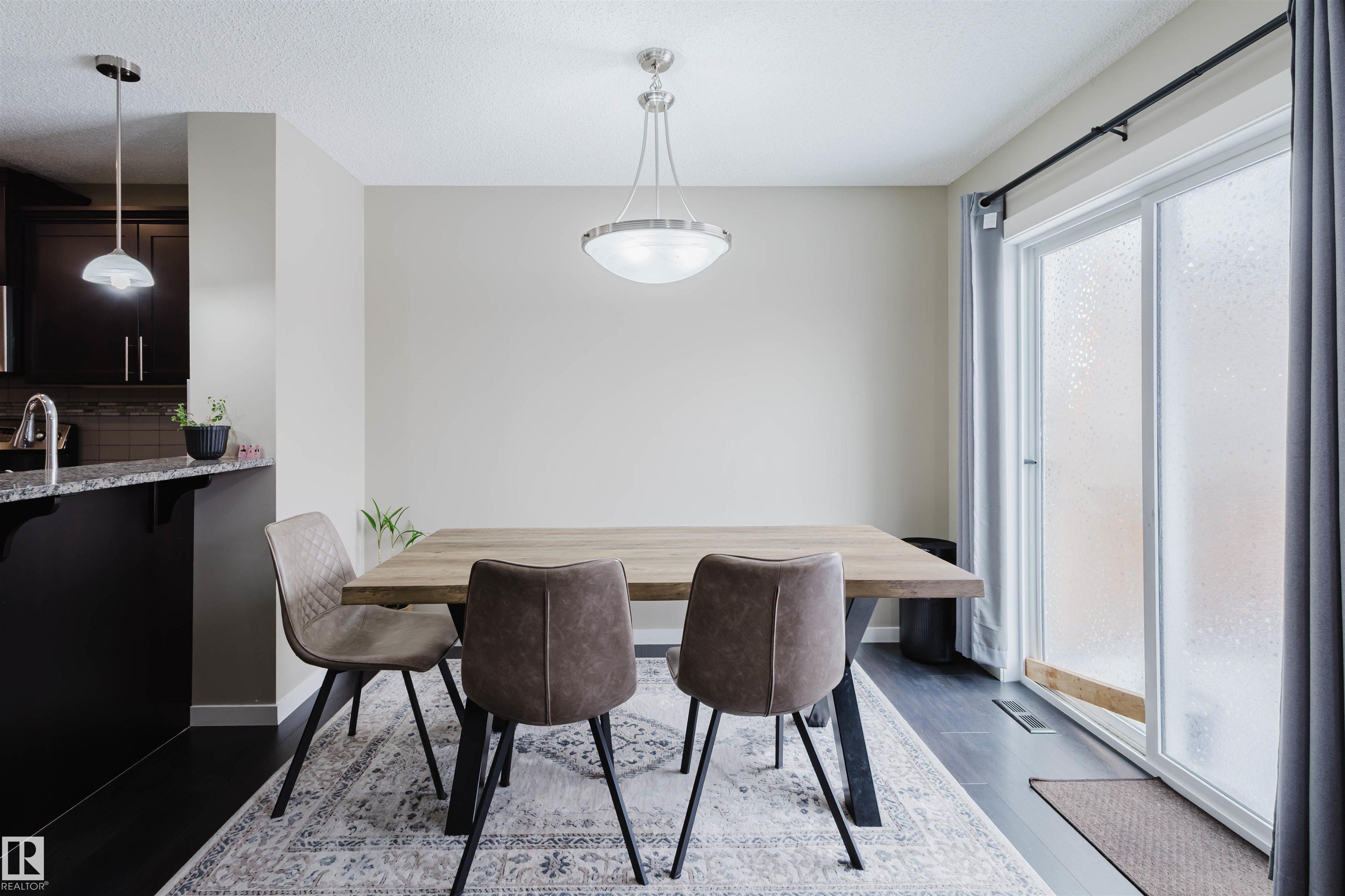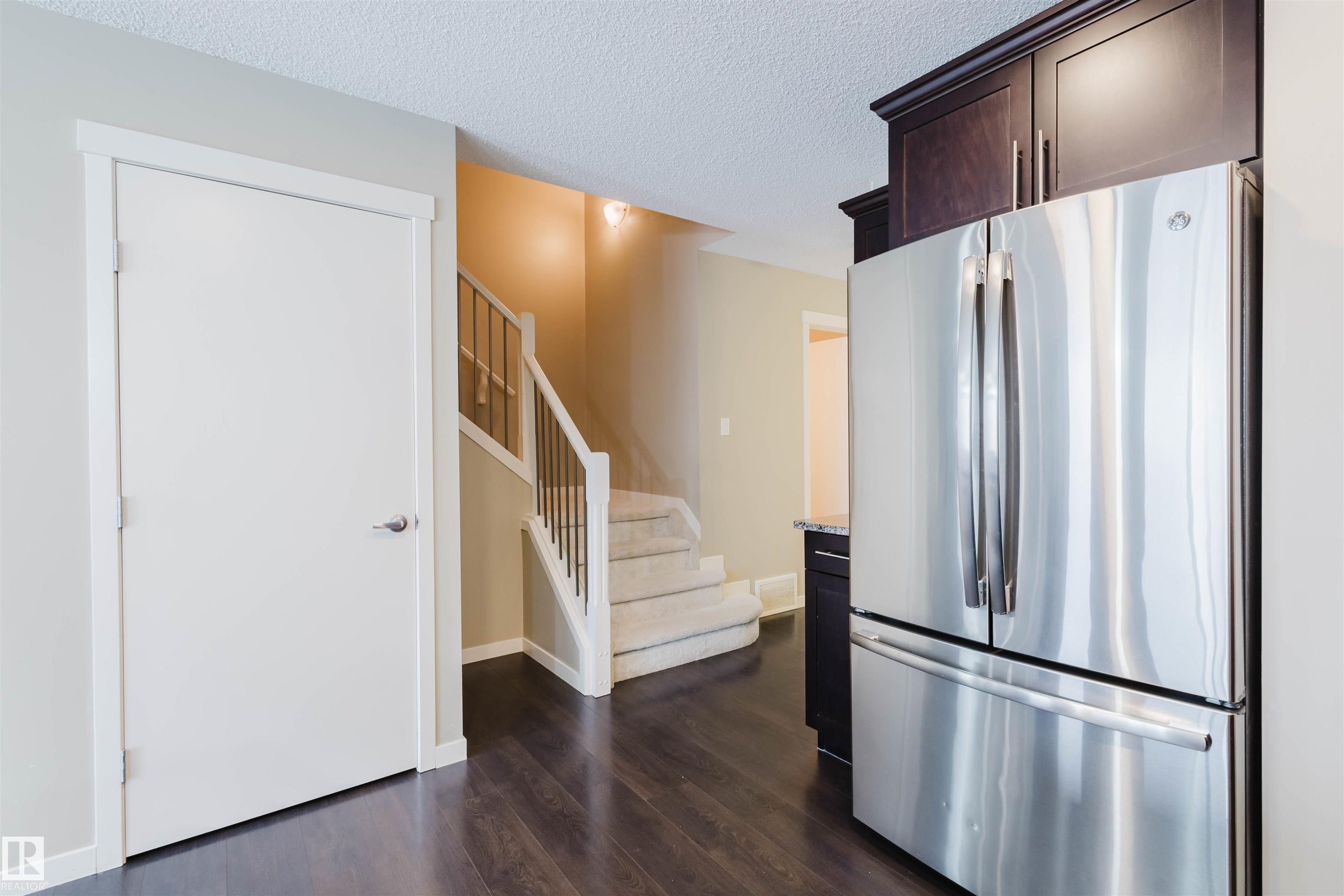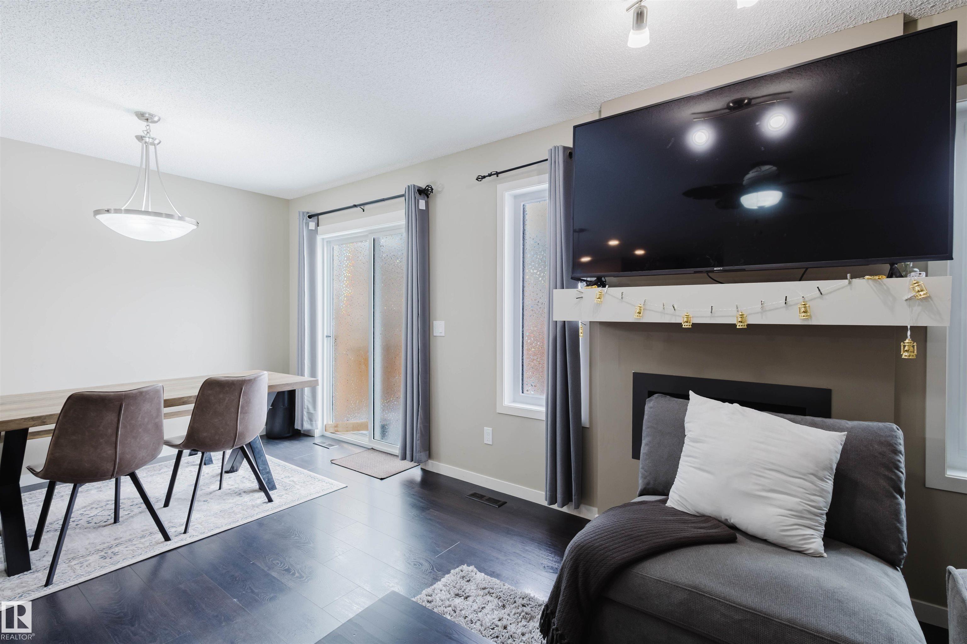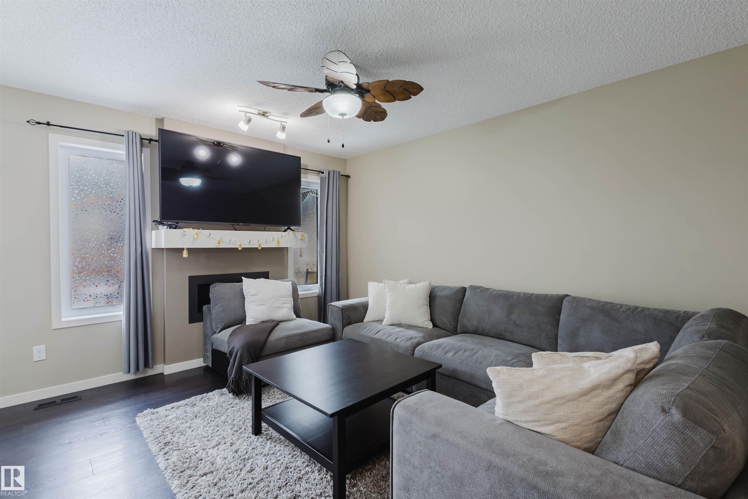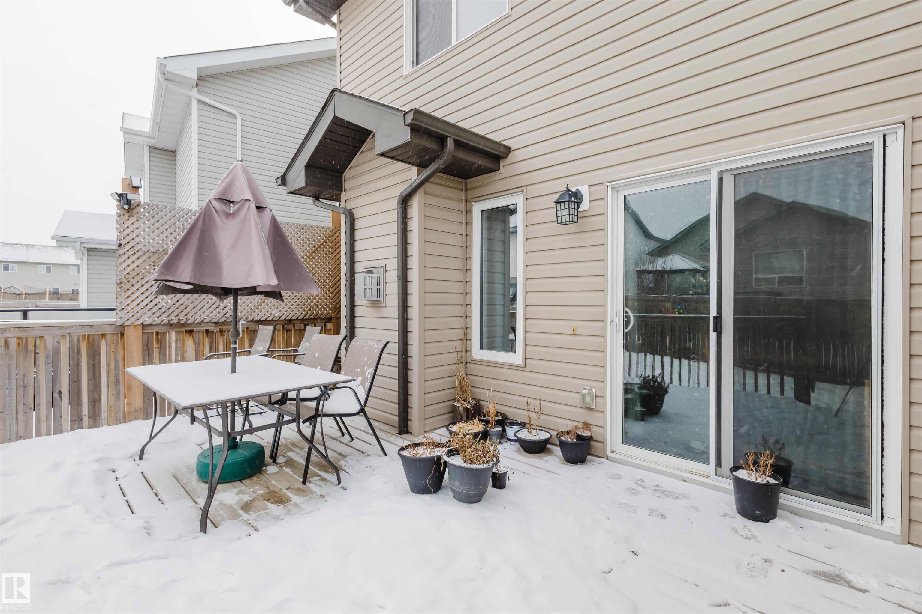 Welcome to this stunning 2-storey half duplex in the heart of Rapperswill! Offering 1,472 sqft of beautifully finished living space and central air conditioning, this home blends comfort, style, and functionality. The bright open-concept main floor features a spacious tiled foyer, inviting living room with gas fireplace and hardwood flooring, and a modern kitchen with granite countertops, stainless steel appliances, ample counter space, and a walk-in pantry. The dining area provides direct access to a newer deck and private backyard?perfect for entertaining. Upstairs boasts a versatile tech space, three generous bedrooms including a primary suite with a 4-piece ensuite, a full main bath, and convenient laundry. The partially finished basement includes a family room and exercise area. Ideally located close to schools, trails, shopping, transit, and with quick access to Anthony Henday.