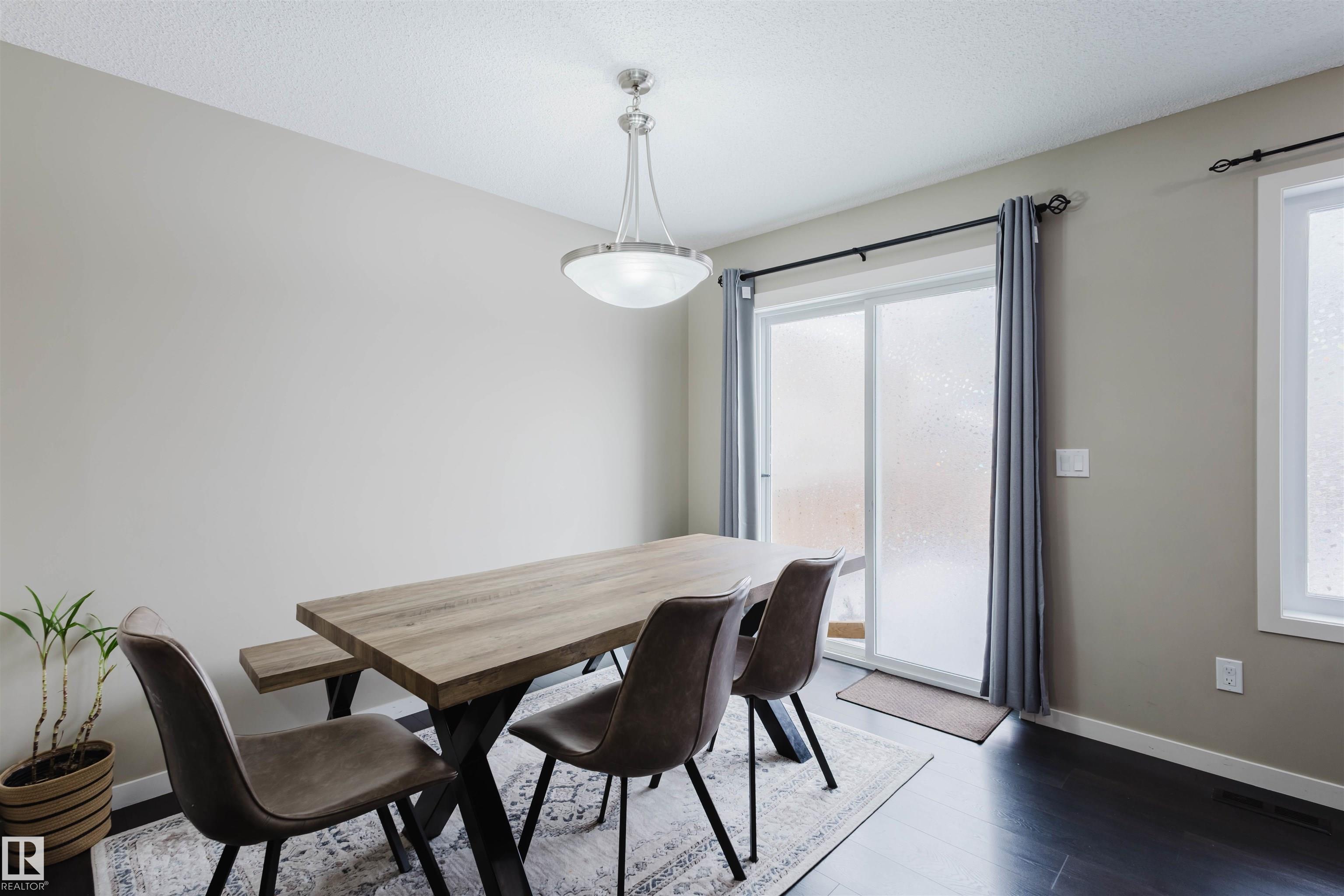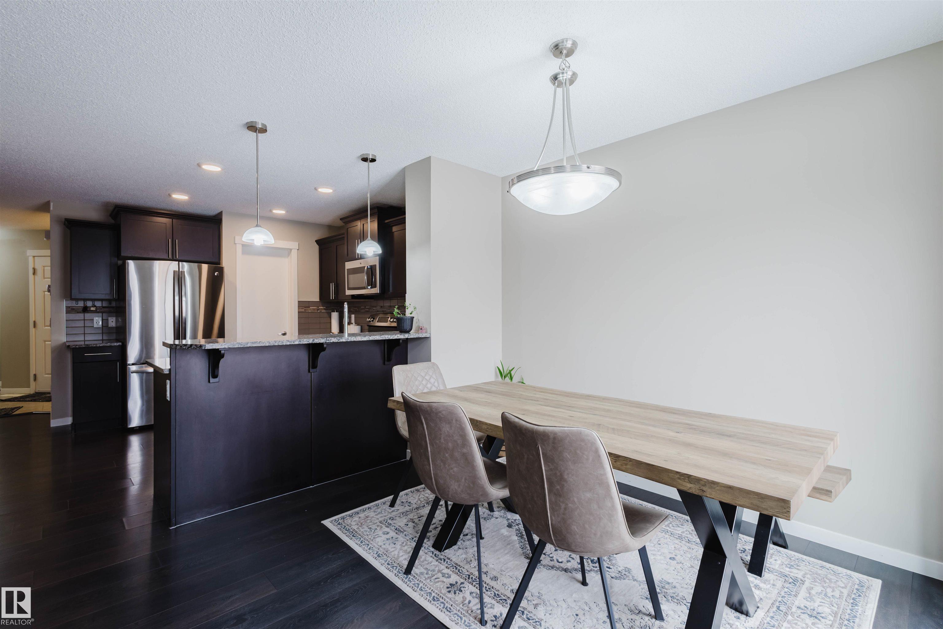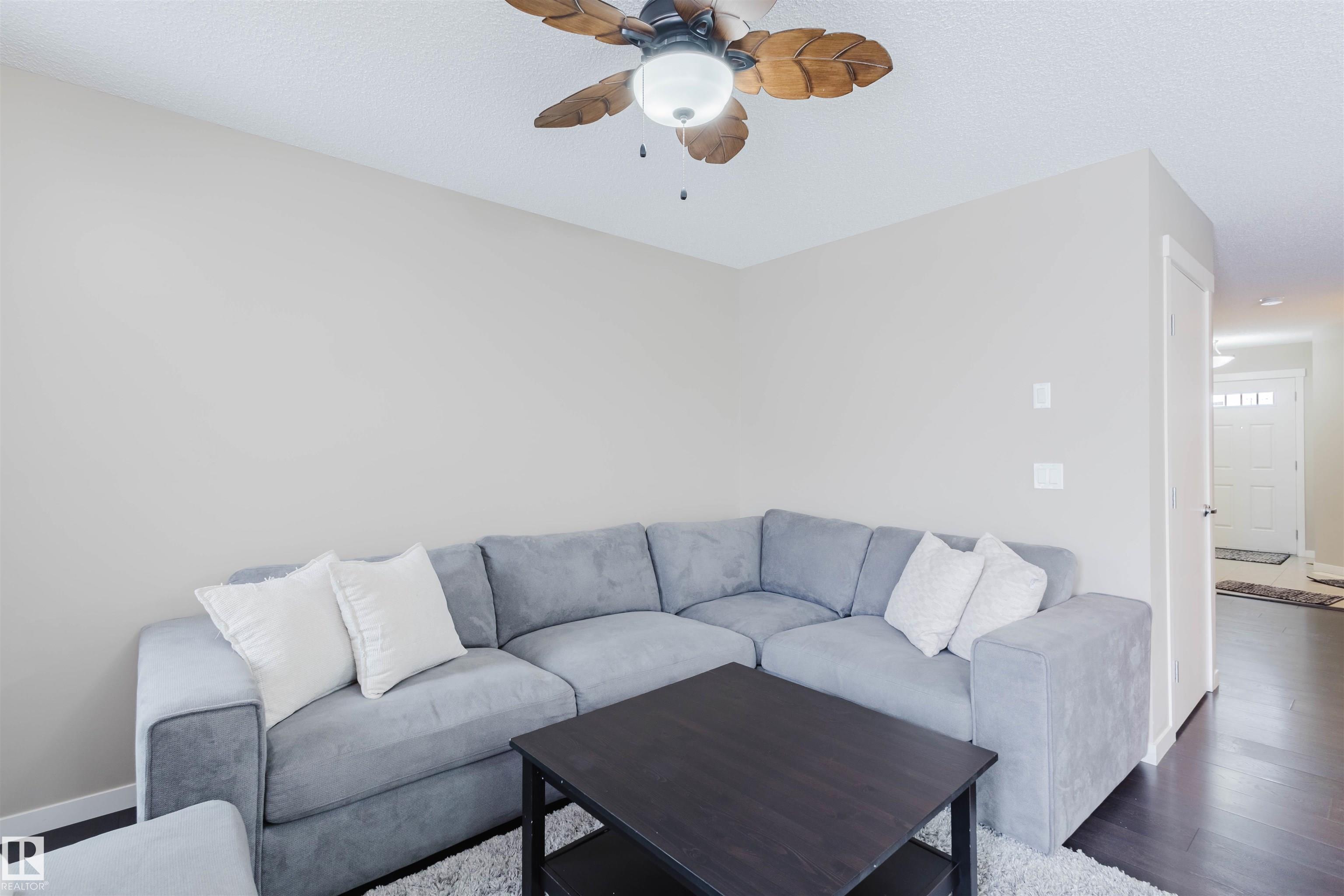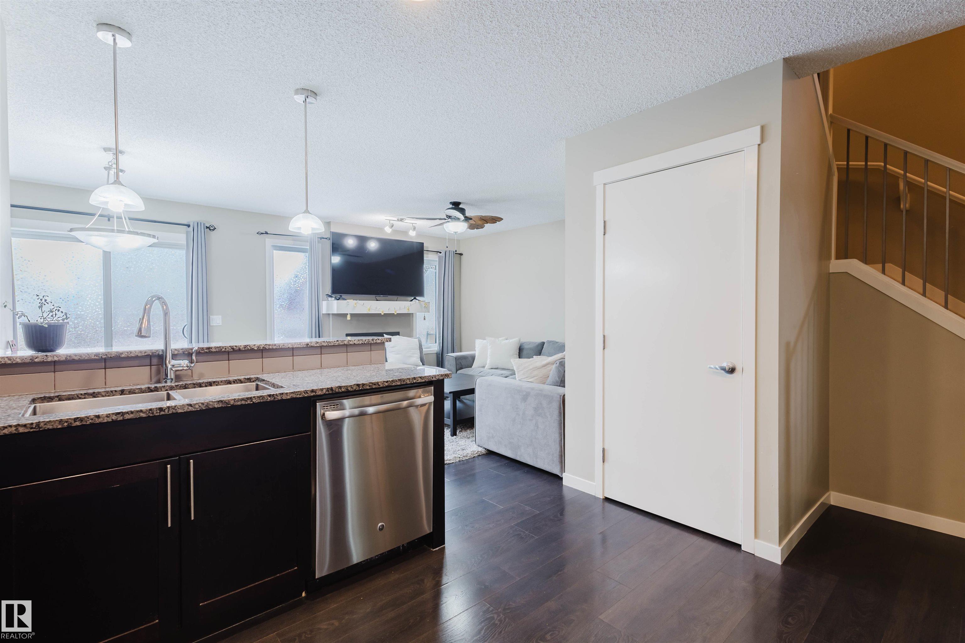 Welcome to this stunning 2-storey half duplex in the heart of Rapperswill! Offering 1,472 sqft of beautifully finished living space and central air conditioning, this home blends comfort, style, and functionality. The bright open-concept main floor features a spacious tiled foyer, inviting living room with gas fireplace and hardwood flooring, and a modern kitchen with granite countertops, stainless steel appliances, ample counter space, and a walk-in pantry. The dining area provides direct access to a newer deck and private backyard?perfect for entertaining. Upstairs boasts a versatile tech space, three generous bedrooms including a primary suite with a 4-piece ensuite, a full main bath, and convenient laundry. The partially finished basement includes a family room and exercise area. Ideally located close to schools, trails, shopping, transit, and with quick access to Anthony Henday.