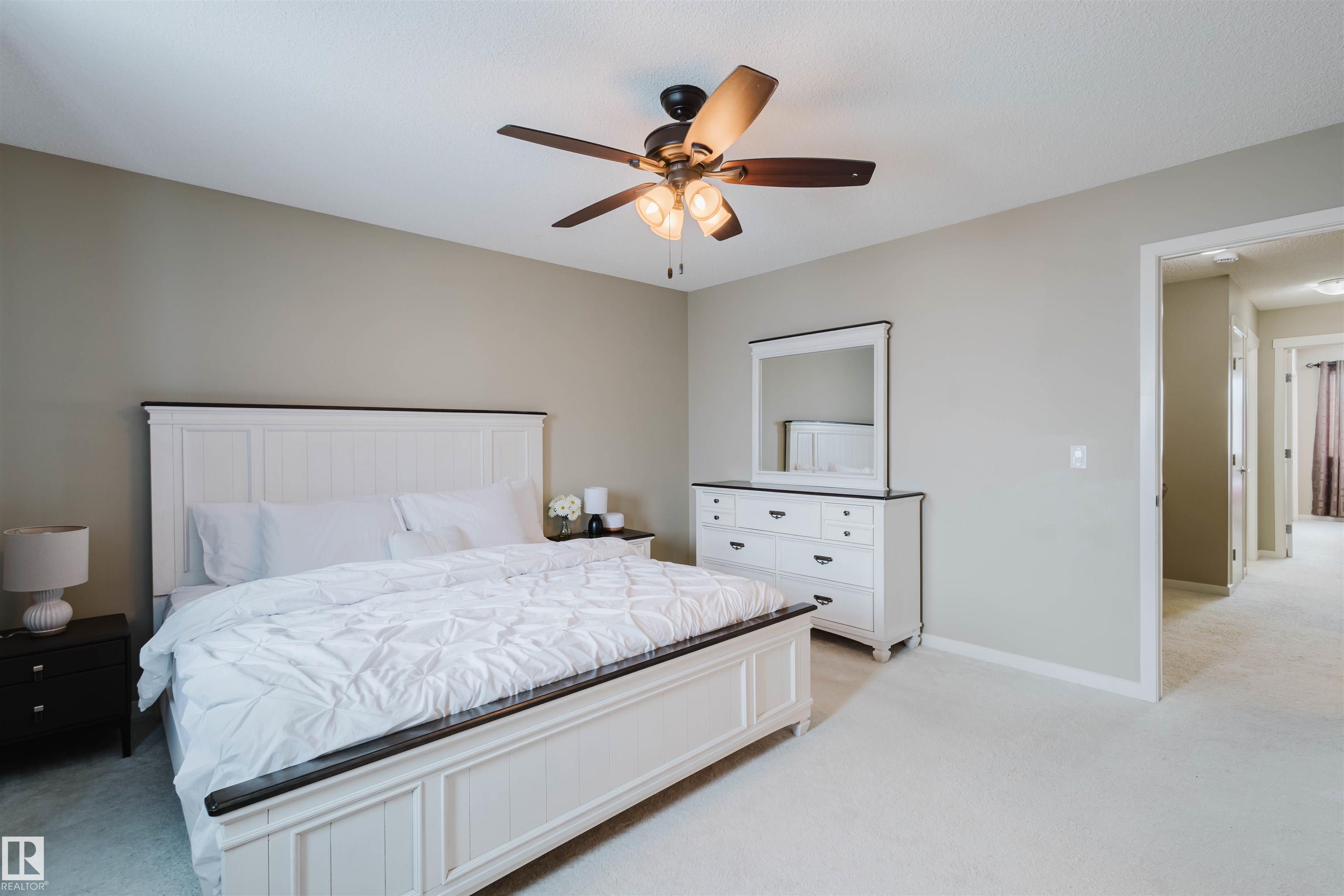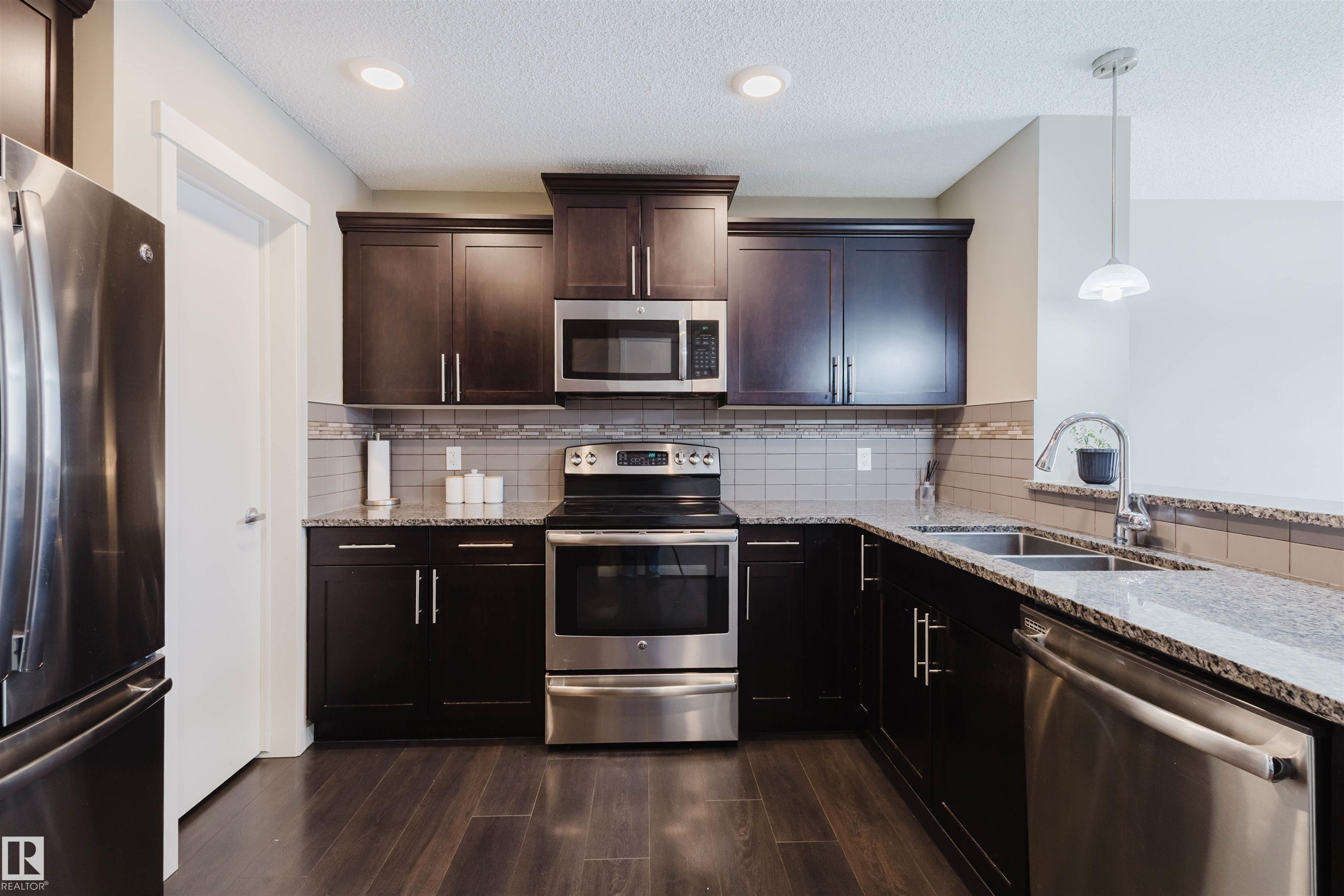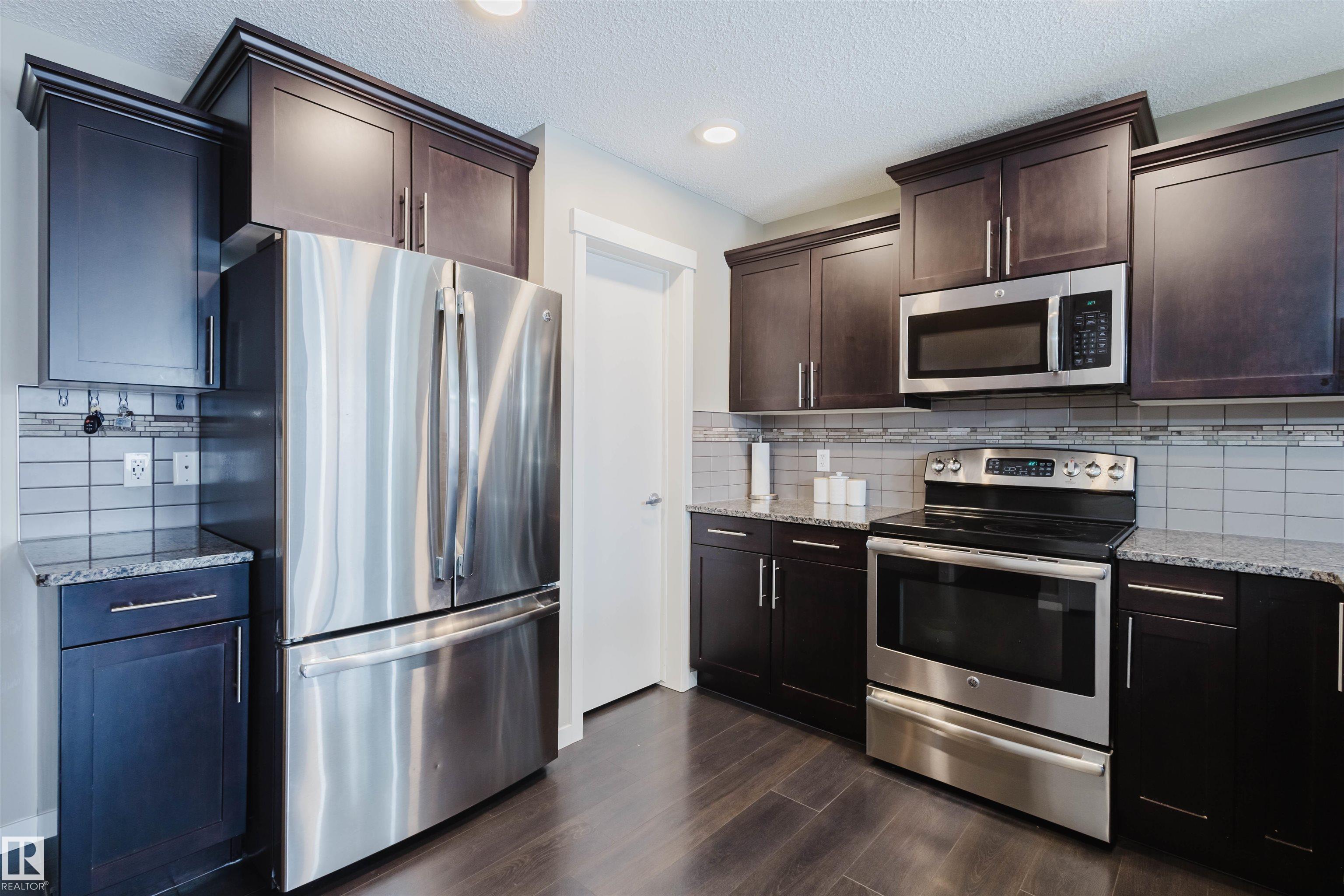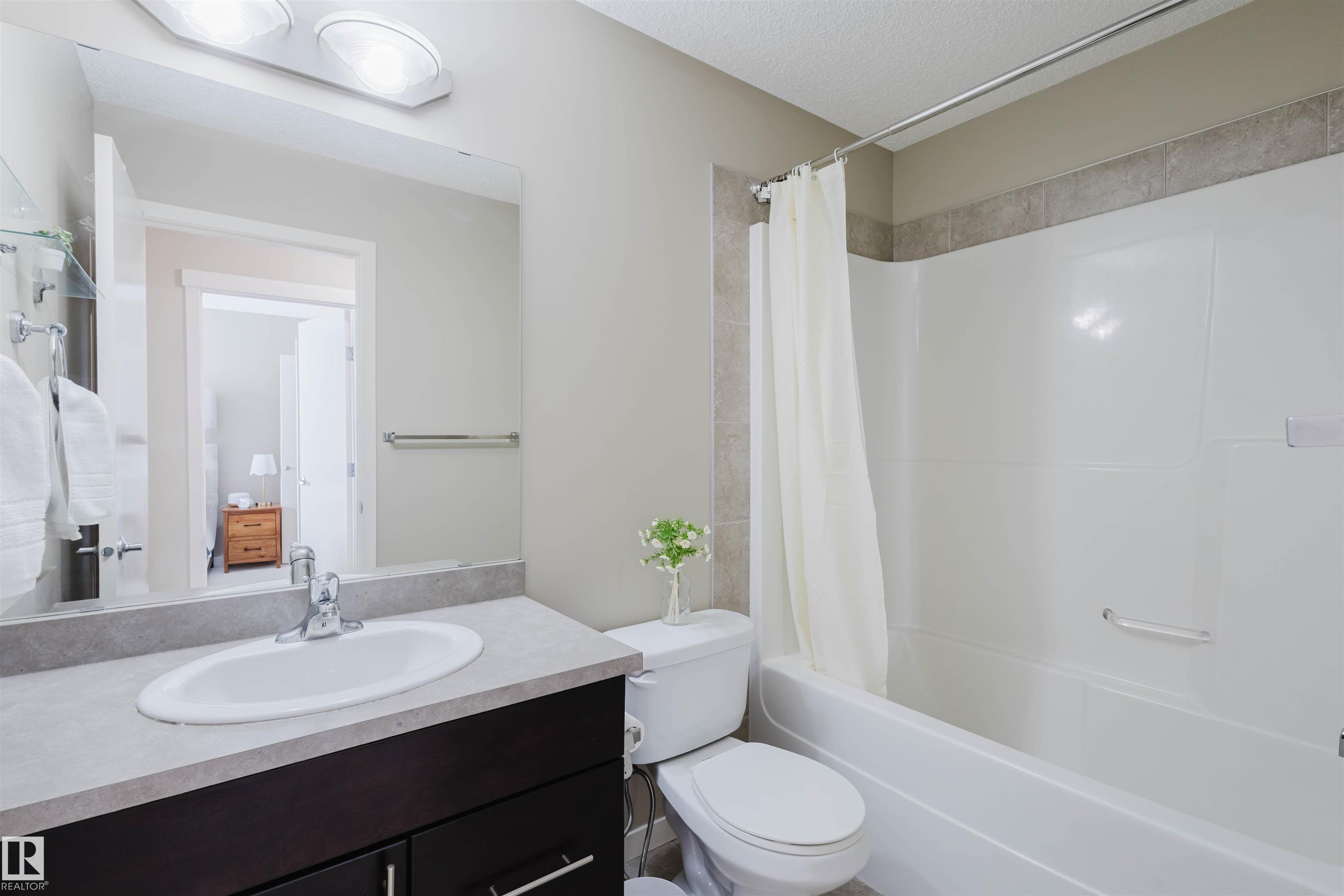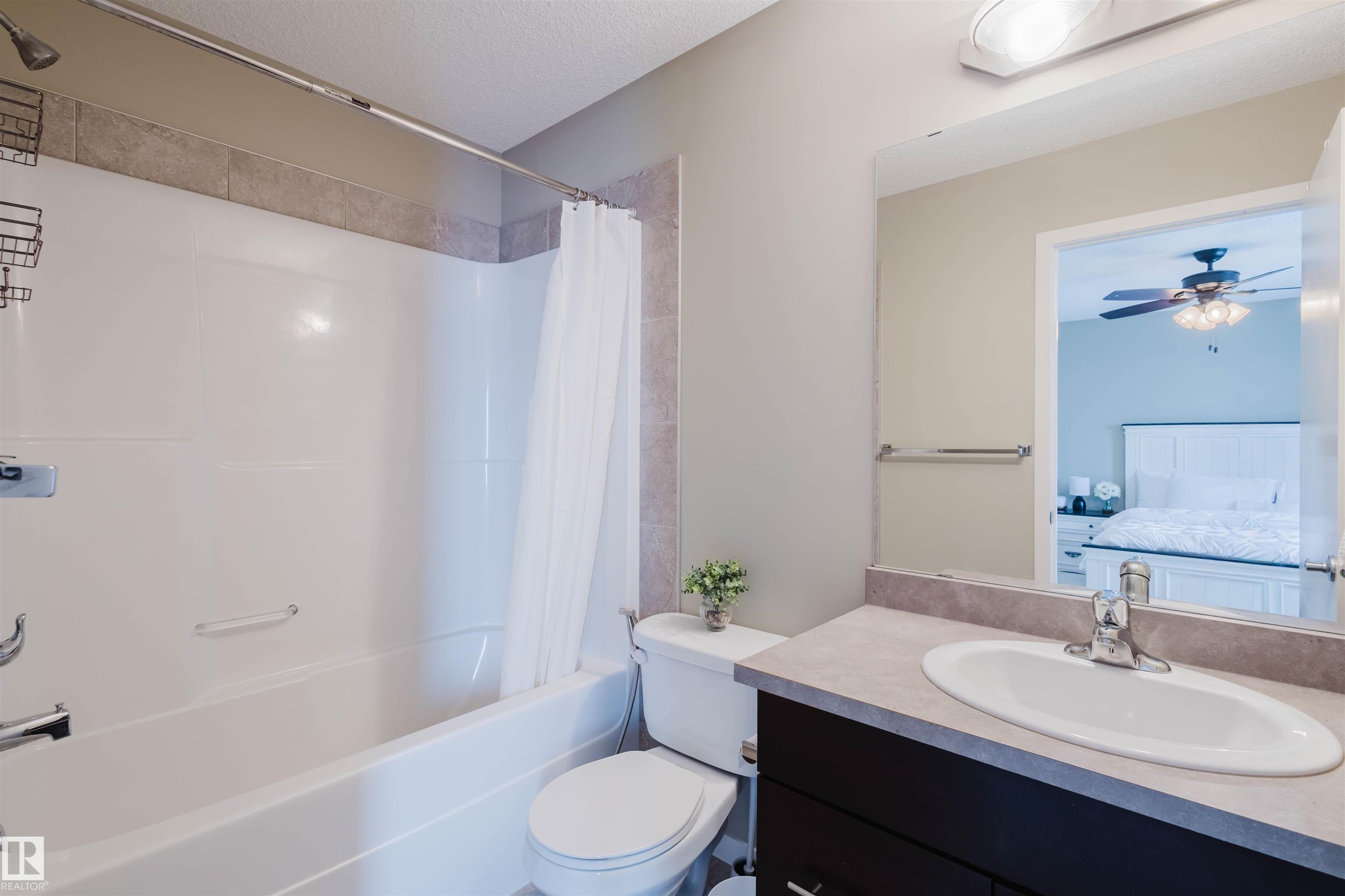 Welcome to this stunning 2-storey half duplex in the heart of Rapperswill! Offering 1,472 sqft of beautifully finished living space and central air conditioning, this home blends comfort, style, and functionality. The bright open-concept main floor features a spacious tiled foyer, inviting living room with gas fireplace and hardwood flooring, and a modern kitchen with granite countertops, stainless steel appliances, ample counter space, and a walk-in pantry. The dining area provides direct access to a newer deck and private backyard?perfect for entertaining. Upstairs boasts a versatile tech space, three generous bedrooms including a primary suite with a 4-piece ensuite, a full main bath, and convenient laundry. The partially finished basement includes a family room and exercise area. Ideally located close to schools, trails, shopping, transit, and with quick access to Anthony Henday.
