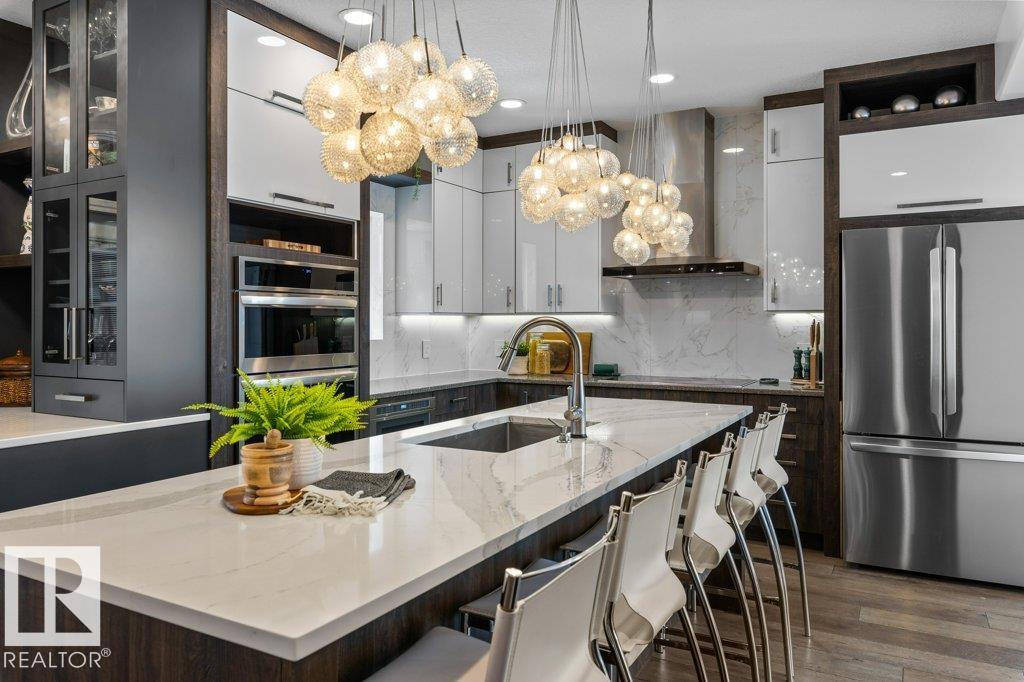 Welcome to Kingswood, where this stunning 2-storey home is designed for effortless, elevated living. Natural light fills the main floor, highlighting a gourmet kitchen with quartz counters, high-end appliances and a custom coffee bar, seamlessly flowing into the formal living and dining areas, cozy family room and main floor den. Step outside to the motorized screened deck, perfect for year-round enjoyment. Start mornings with coffee and unwind with sunset views from one of two decks. An ELEVATOR offers convenient access to every level. Upstairs features 4 spacious bedrooms, including a beautiful primary suite with ensuite, custom walk-in closet and private deck with city views. The fully finished walkout basement is built for entertaining with a rec room, wet bar and steam shower, leading to a covered patio and professionally landscaped yard with irrigation and firepit. Complete with main floor laundry, oversized double attached garage, dog run, new doors and permanent lighting. A rare find in Kingswood!