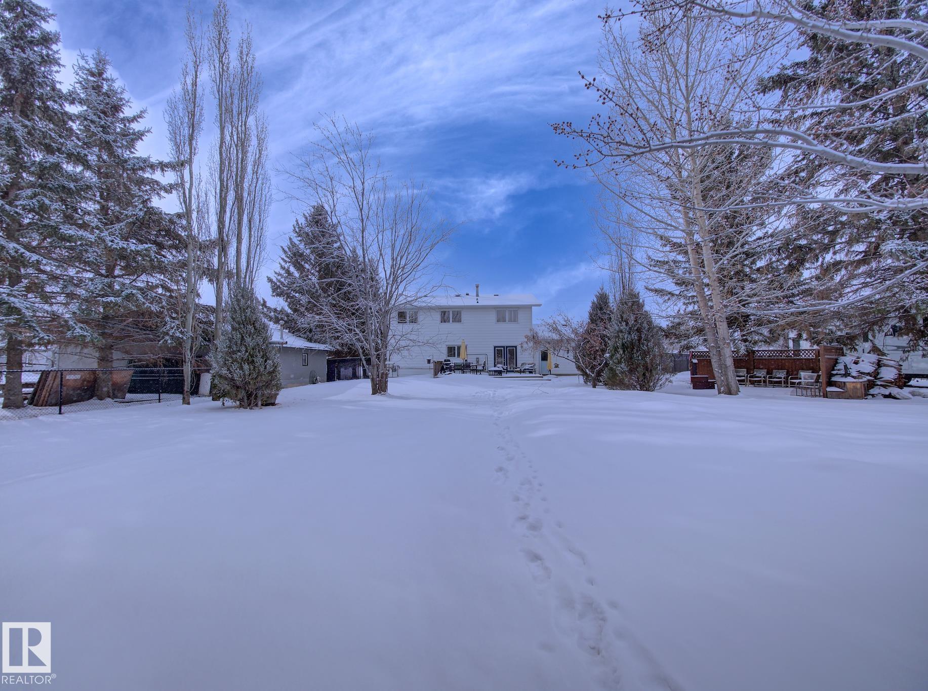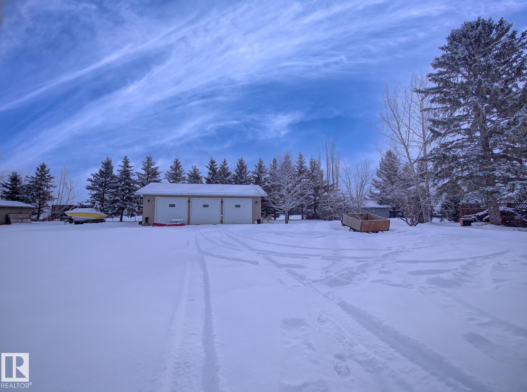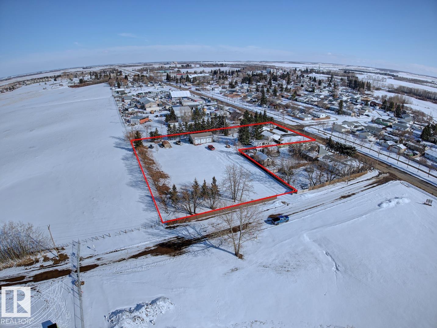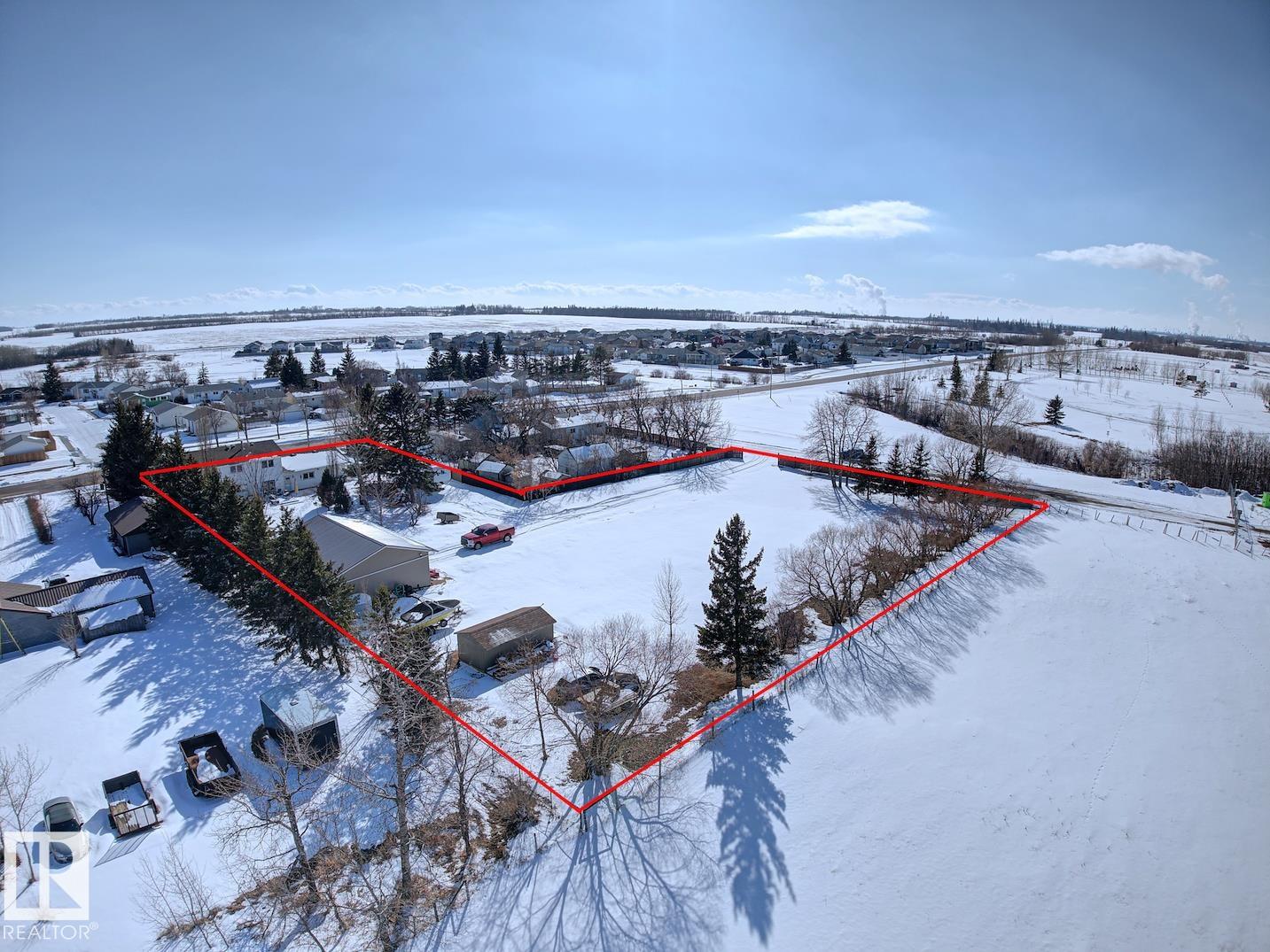Set on 1.45 acres within town limits, this spacious 1,989 sq ft two-storey offers room to live, work, and grow. The property features a heated oversized 2 car attached garage plus a 28? x 40? heated shop?perfect for hobbyists, storing toys, or running a home-based business. The main floor welcomes you with a bright living room highlighted by a cozy wood-burning fireplace, a formal dining area, and a country-style kitchen with ample cabinetry and counter space. Just off the kitchen, the family room provides a comfortable space to relax, with patio doors leading to your expansive backyard. A conveniently tucked-away laundry area, 2PC bath, and direct access to the garage complete the main level.Upstairs, you?ll find five bedrooms?ideal for a growing family, guests, or a home office setup. The primary bedroom features its own 3PC ensuite.The basement is unspoiled and ready for your future development, along with a cold storage area for added functionality. Acreage living with the convenience of town services