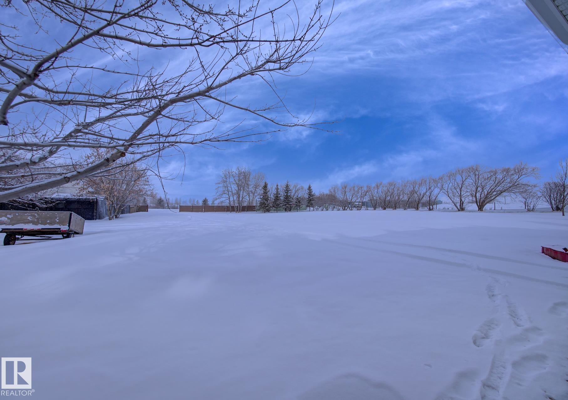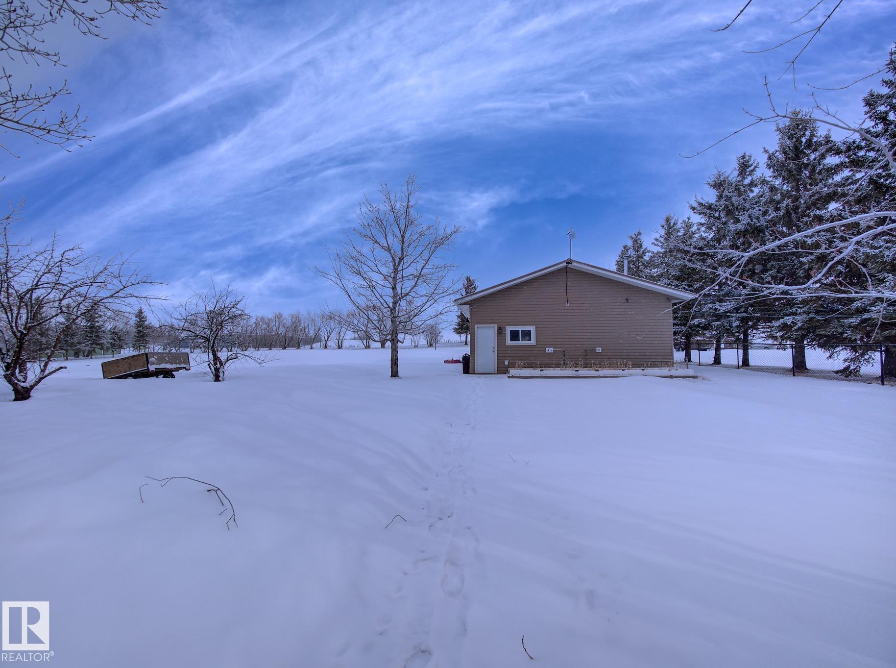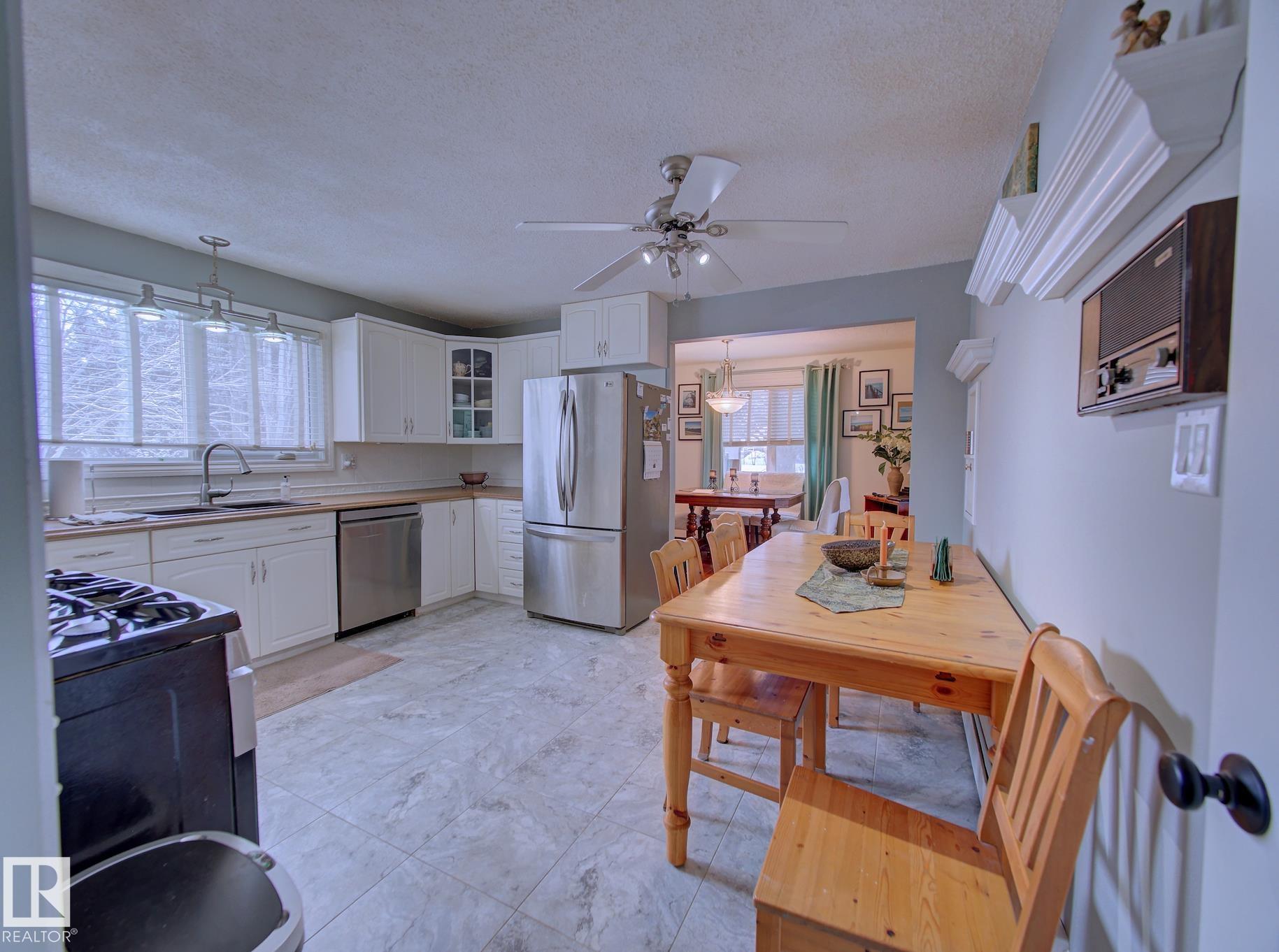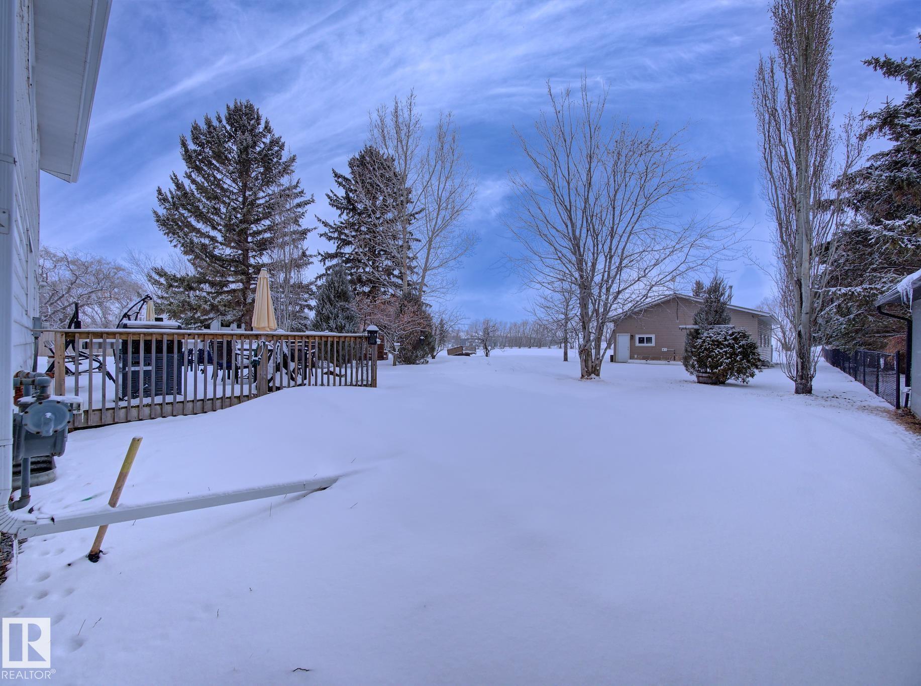 Set on 1.45 acres within town limits, this spacious 1,989 sq ft two-storey offers room to live, work, and grow. The property features a heated oversized 2 car attached garage plus a 28? x 40? heated shop?perfect for hobbyists, storing toys, or running a home-based business. The main floor welcomes you with a bright living room highlighted by a cozy wood-burning fireplace, a formal dining area, and a country-style kitchen with ample cabinetry and counter space. Just off the kitchen, the family room provides a comfortable space to relax, with patio doors leading to your expansive backyard. A conveniently tucked-away laundry area, 2PC bath, and direct access to the garage complete the main level.Upstairs, you?ll find five bedrooms?ideal for a growing family, guests, or a home office setup. The primary bedroom features its own 3PC ensuite.The basement is unspoiled and ready for your future development, along with a cold storage area for added functionality. Acreage living with the convenience of town services